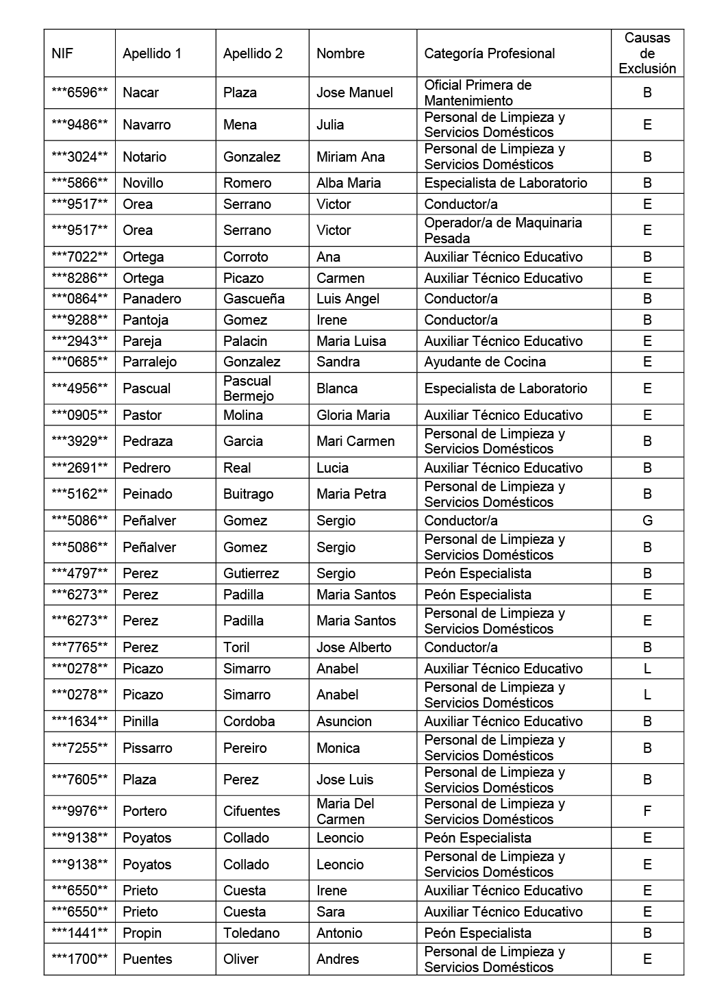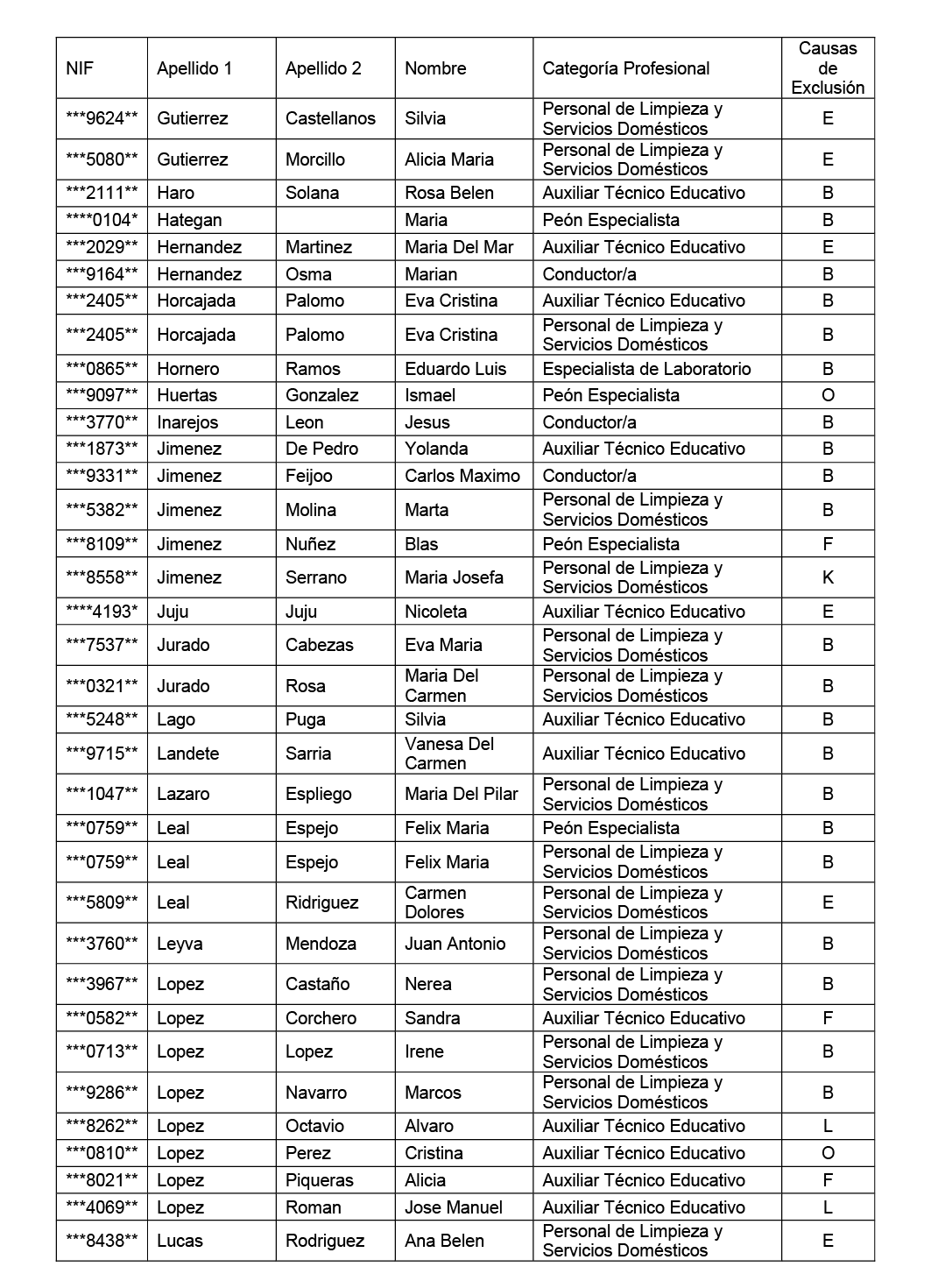 Segundo. - Publicar en el Diario Oficial de Castilla-La Mancha la lista provisional de aspirantes excluidos de los citados procesos selectivos, en los términos que figuran en el anexo I de esta resolución, con expresión de las causas de exclusión.