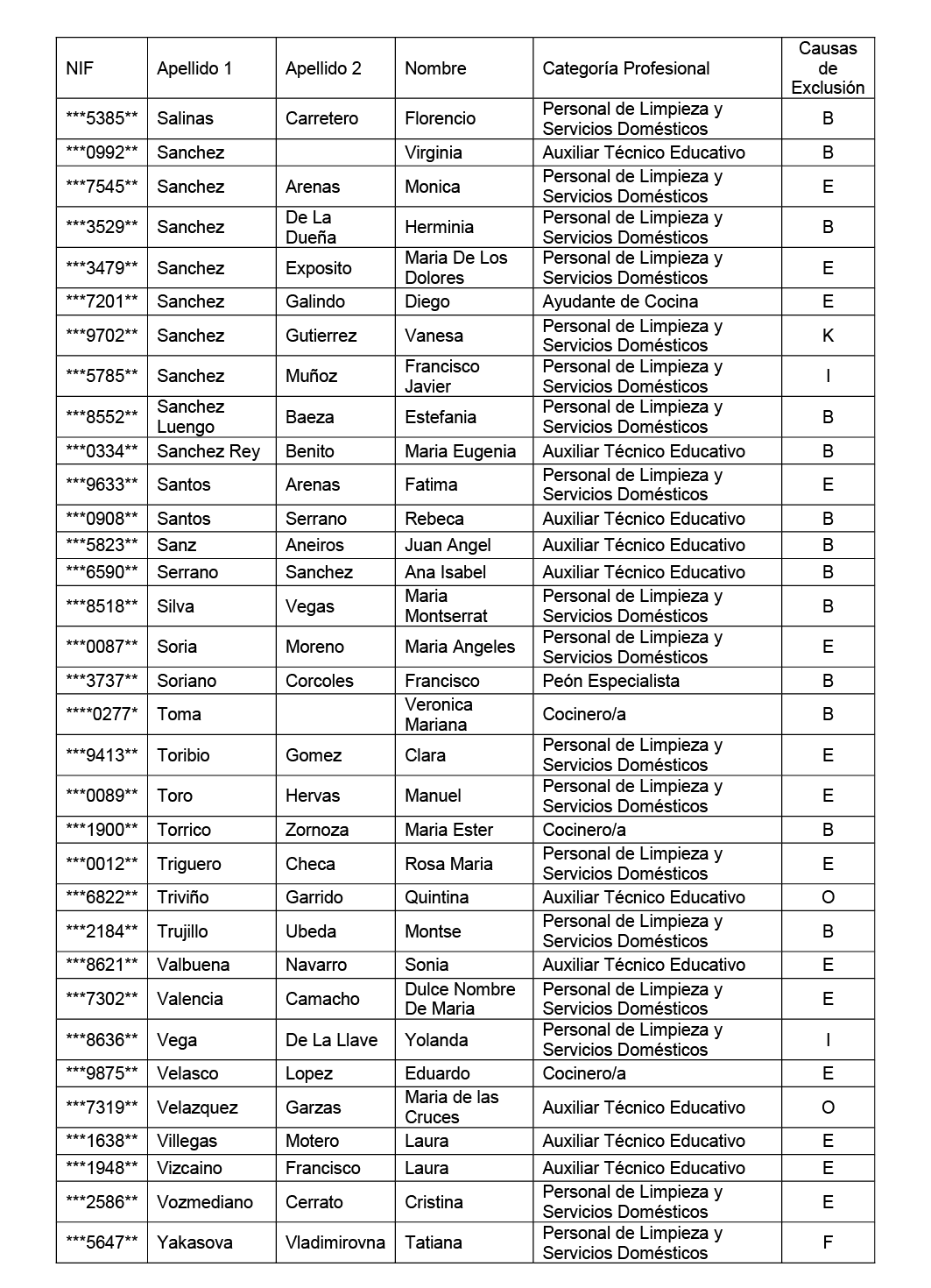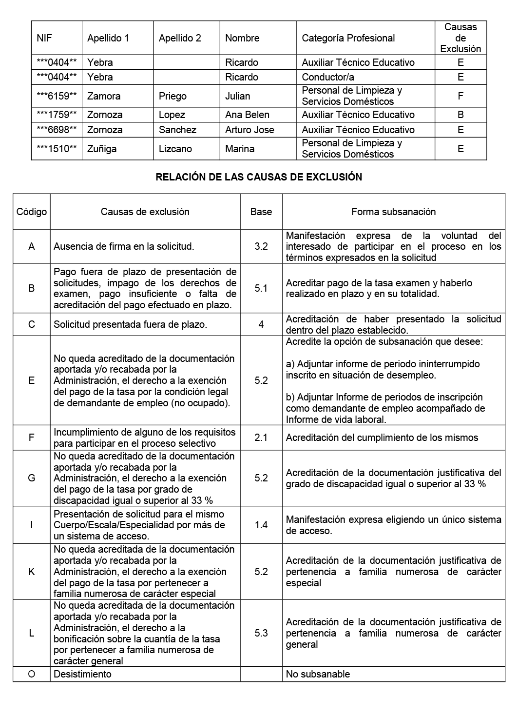 Los aspirantes que, dentro del plazo señalado, no subsanen la exclusión o aleguen la omisión justificando su derecho a ser incluidos en la lista de admitidos, serán definitivamente excluidos del proceso selectivo.