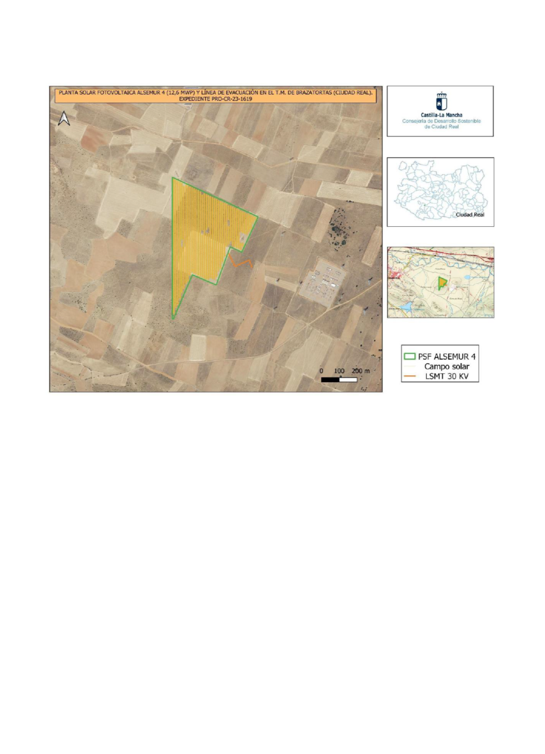 El proyecto denominado “Planta solar FV Alsemur 4 y su línea de evacuación” de 12,6 MWp (T.M. de Brazatortas, Ciudad Real), promovido por la mercantil Alsemur Renovables S.L., se ha sometido a un procedimiento de evaluación de impacto ambiental ordinaria en los términos previstos en la Ley 2/2020, de 7 de febrero, de Evaluación Ambiental de Castilla-La Mancha, ya que según el artículo 6.1.a) de dicha Ley se trata de un proyecto que, en acumulación con otros proyectos similares que se pretenden construir en la misma zona, alcanza el umbral establecido en el Anexo I de la Ley 2/2020, Grupo 3 (Industria energética), apartado m) Instalaciones para la producción de energía eléctrica a partir de la energía solar destinada a su venta a la red, que no se ubiquen en cubiertas o tejados de edificios existentes y que ocupen más de 100 ha de superficie, teniendo en cuenta la acumulación con otros proyectos similares que se pretenden construir en la misma zona y sus efectos sinérgicos. En concreto se trata de un conjunto de 13 plantas solares fotovoltaicas que evacuarán, a través de infraestructuras compartidas (ST Ojailén 30/400 kV) al Nudo Brazatortas 400 KV. Asimismo, dicho proyecto se somete al procedimiento de evaluación de impacto ambiental ordinaria a petición del promotor del mismo acorde lo dispuesto en el artículo 6.1.d) de la ley autonómica.