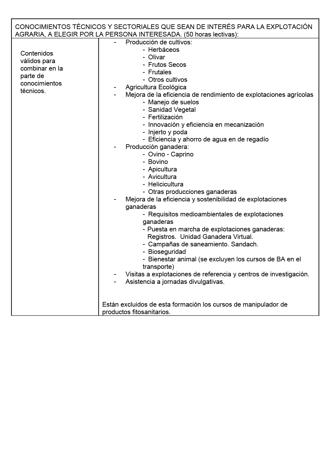 2. Producciones ganaderas: apicultura, avicultura de carne, avicultura de puesta en sistemas alternativos de cría, bovino, caprino, ovino y porcino de cebo.