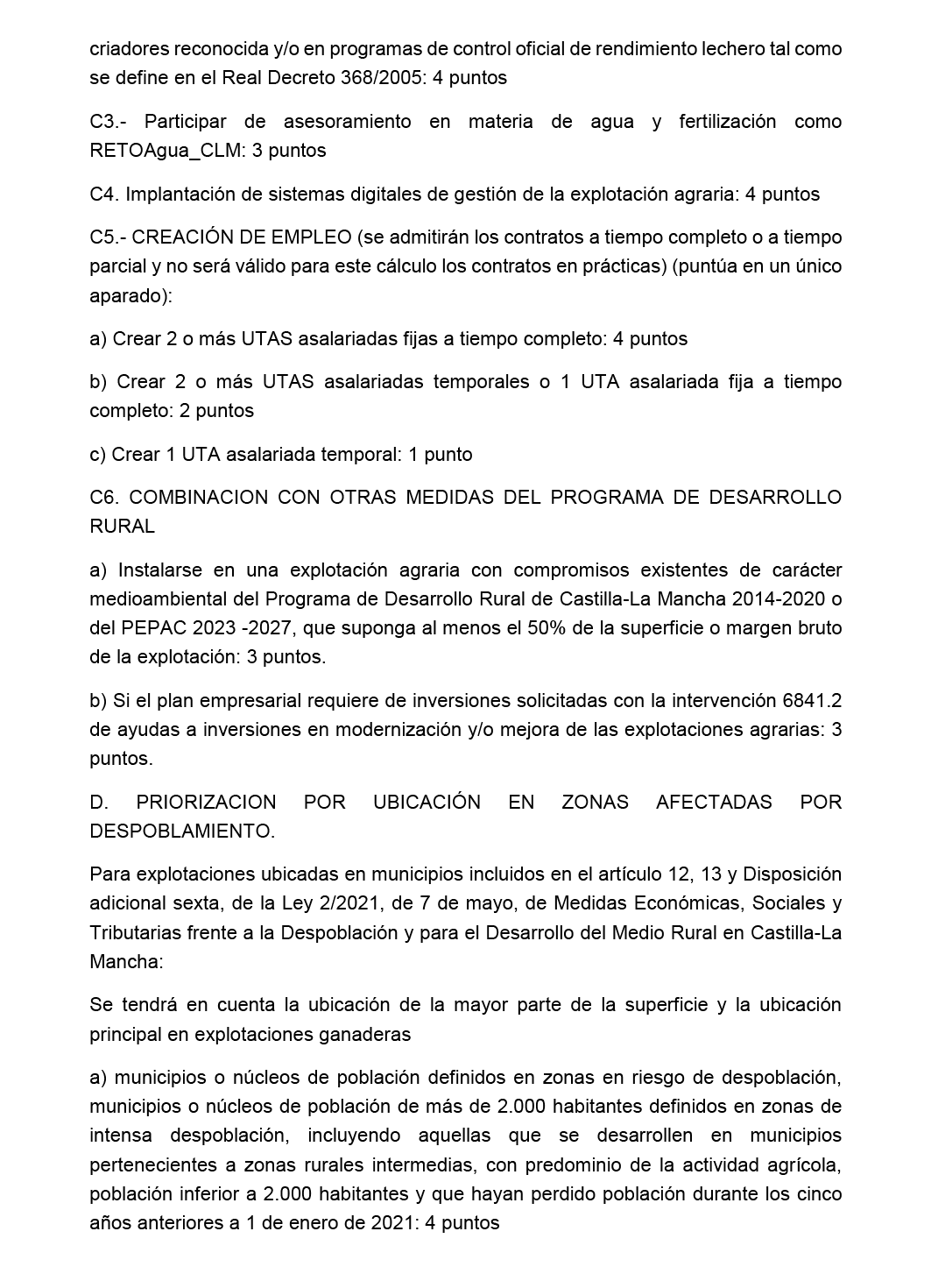 De conformidad con la Ley 2/2021, de 7 de mayo, de Medidas Económicas, Sociales y Tributarias frente a la Despoblación y para el Desarrollo del Medio Rural en Castilla-La Mancha se prevé el incremento de la ayuda en el caso de establecimiento de jóvenes en zonas escasamente pobladas y la priorización cuando se instalen en dichas zonas o en zonas en riesgo de despoblación.