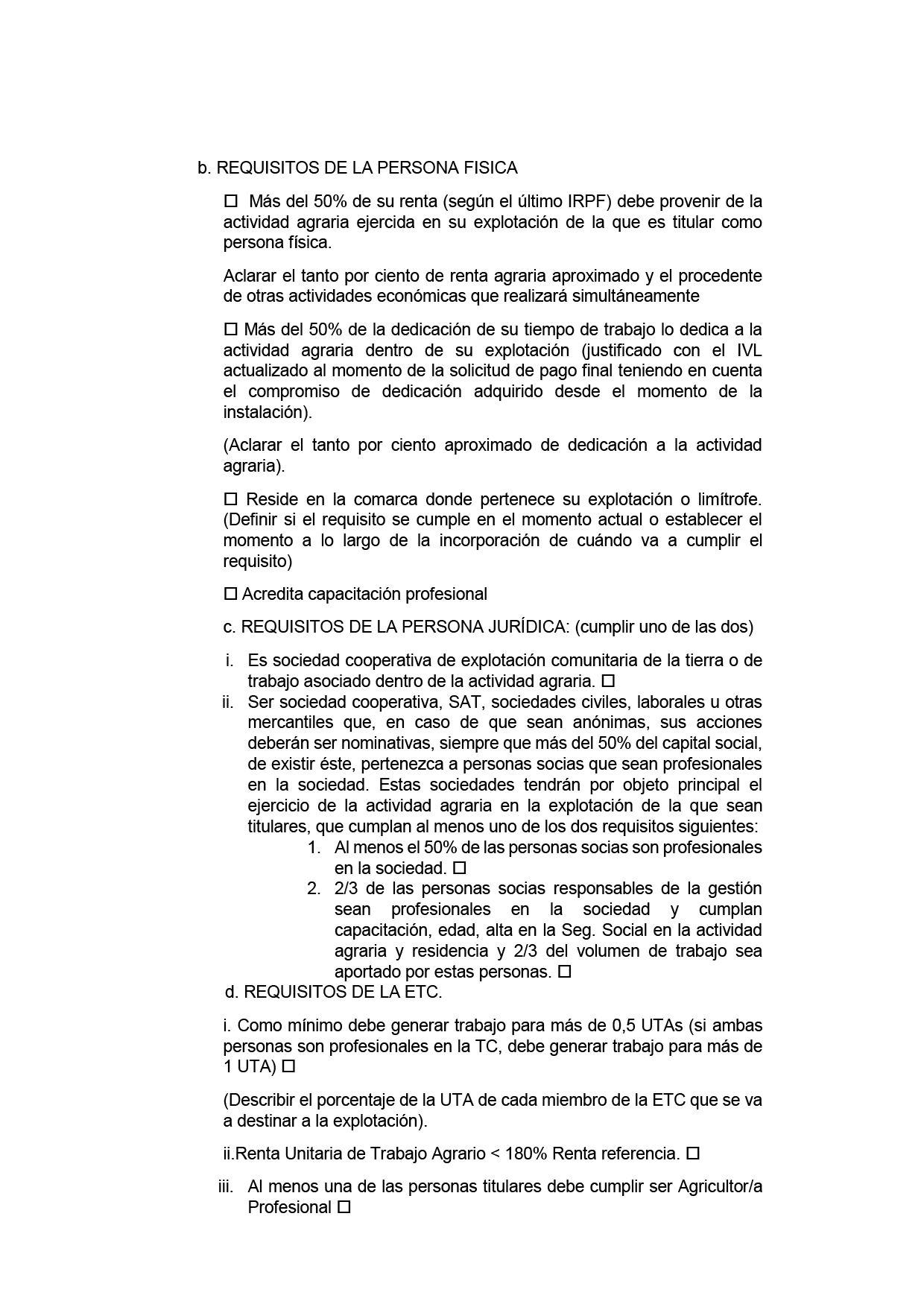 - Ser otro tipo de sociedad: sociedades cooperativas o sociedades agrarias de transformación; sociedades civiles, laborales u otras mercantiles que, en el caso de que sean anónimas, sus acciones deberán ser nominativas, siempre que más del 50 por 100 del capital social, de existir éste, pertenezca a personas socias que sean agricultoras profesionales. Estas sociedades tendrán por objeto principal el ejercicio de la actividad agraria en la explotación de la que sean titulares, y cumplir alguno de los dos requisitos siguientes: