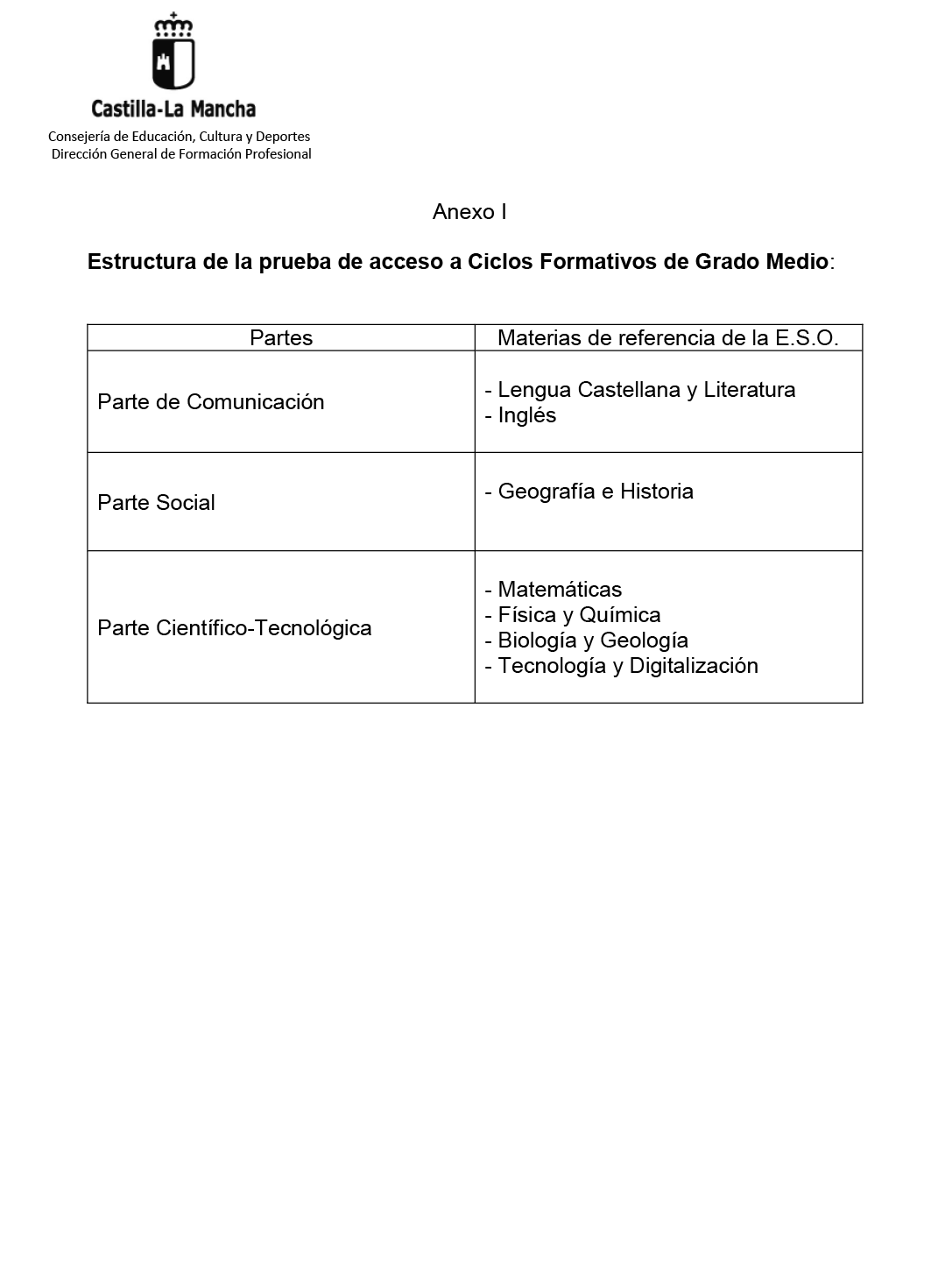 3. Las pruebas de acceso a ciclos formativos de grado medio se ajustarán a la estructura que se establece en el anexo I de esta resolución.