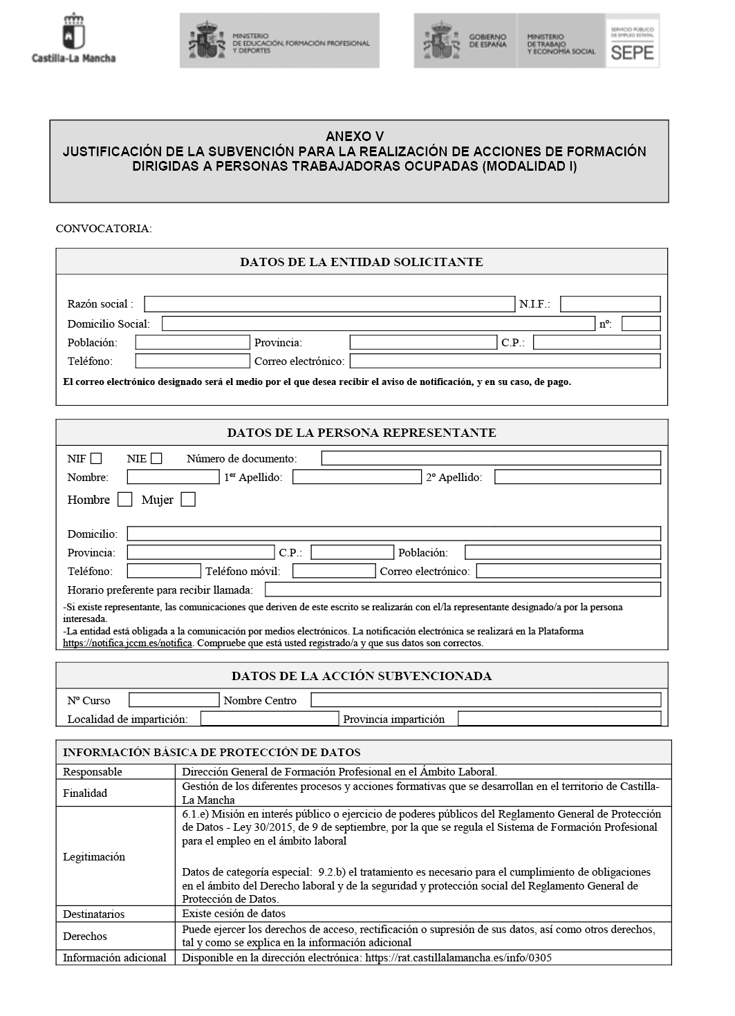 Orden 178/2020, de 19 de noviembre, de la Consejería de Economía, Empresas y Empleo, en materia de programación, gestión y evaluación de la formación profesional para el empleo en el ámbito laboral en Castilla-La Mancha y por la que se establecen las bases reguladoras de concesión de subvenciones públicas para su realización. [2020/9749]. (D.O.C.M. nº 235, de 20 de noviembre de 2020), modificada por Orden102/2021, de 23 de junio, de la Consejería de Economía, Empresas y Empleo ( DOCM, nº 130, de 9 de julio de 2021); por la Orden 106/2022, de 27 de mayo, de la Consejería de Economía, Empresas y Empleo (DOCM, nº 110, de 9 de junio de 2022) y por la Orden 79/2023, de 31 de marzo, de la Consejería de Economía, Empresas y Empleo (DOCM, nº 76, de 20 de abril de 2023).