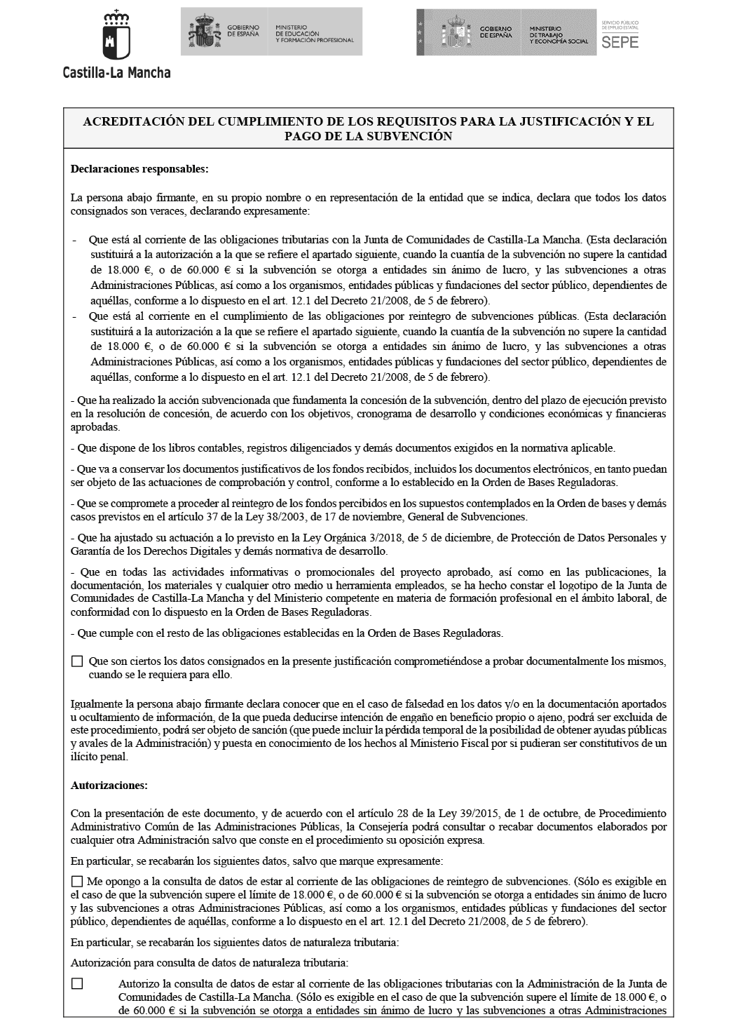 Finalmente, al menos el 40 por ciento restante del importe concedido se hará efectivo una vez finalizada y justificada la formación subvencionada.
