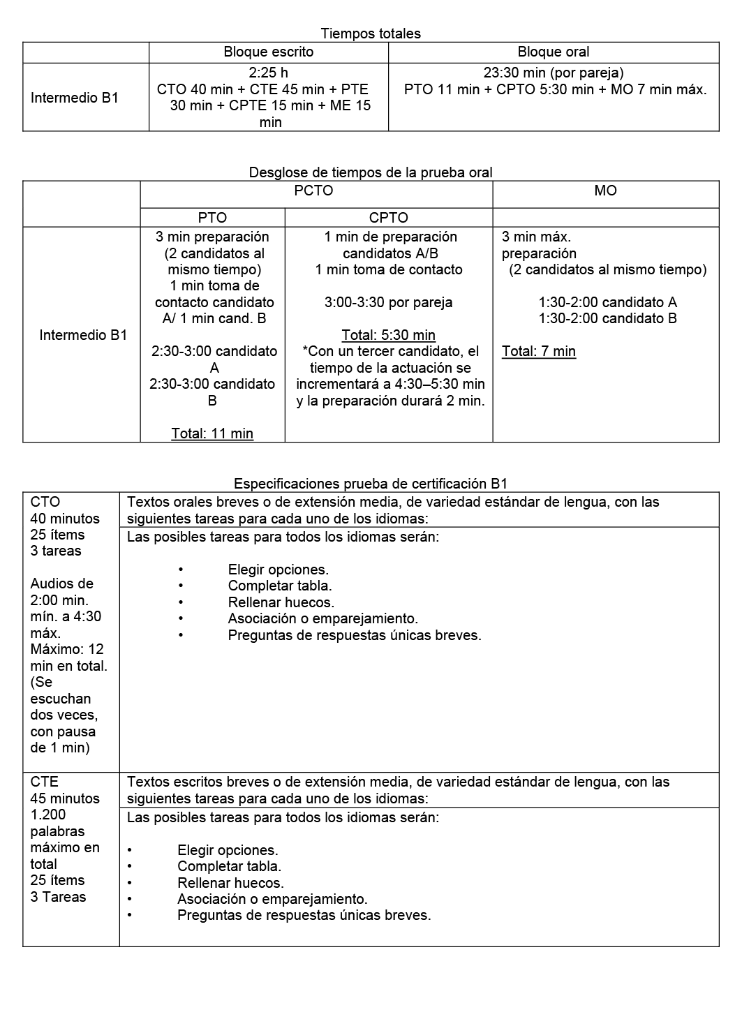 El Decreto 47/2017, de 25 de julio, por el que se regula el plan integral de enseñanza de lenguas extranjeras de la Comunidad Autónoma de Castilla-La Mancha para etapas educativas no universitarias, establece en el artículo 34 que el alumnado matriculado en 4º de Educación Secundaria Obligatoria o en el último curso de un Ciclo Formativo de Grado Medio en el marco de un proyecto bilingüe o plurilingüe podrá acceder a unas pruebas específicas de certificación de nivel Intermedio B1 de enseñanzas de idiomas de régimen especial en las condiciones que determine la consejería competente en materia de educación.