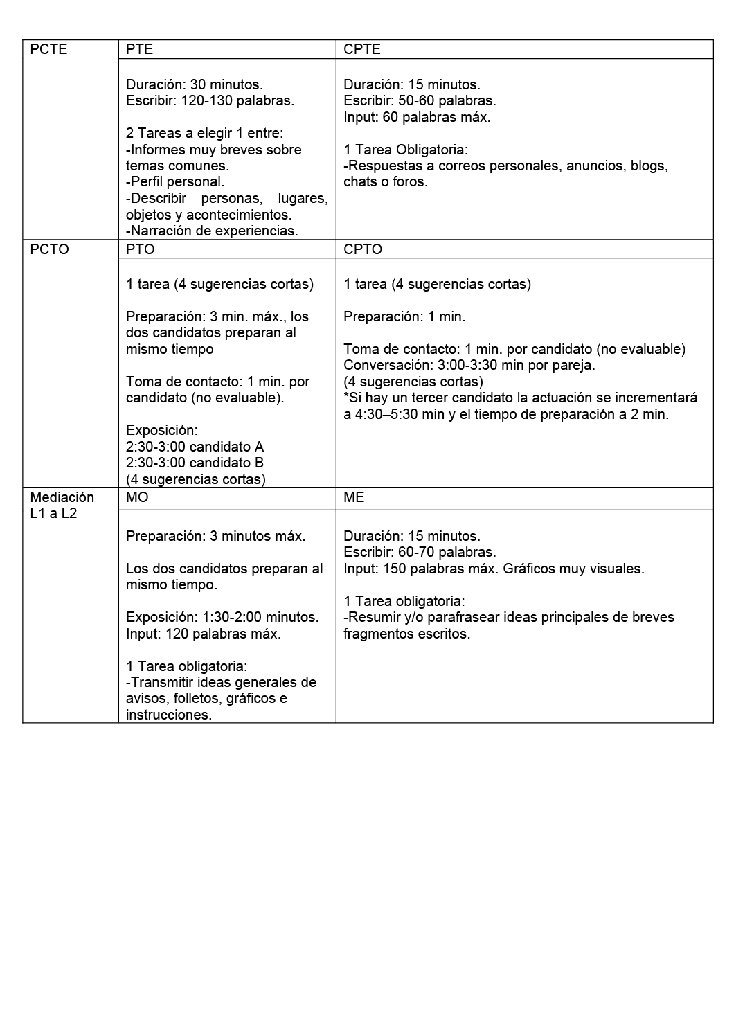 a. Pruebas escritas correspondientes a las siguientes actividades de lengua: Comprensión de textos escritos, comprensión de textos orales, producción y coproducción de textos escritos y mediación escrita.
