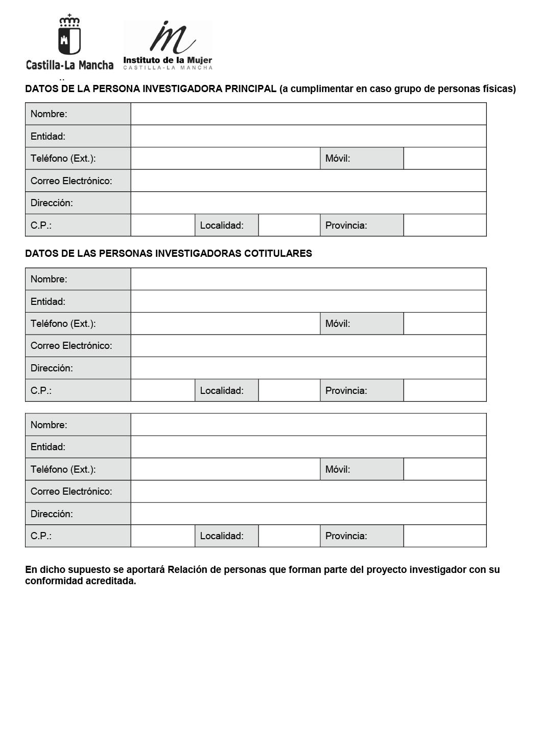 En el caso de que la solicitud la haga un grupo de personas físicas, deberán presentar la relación de las personas que integran el grupo de investigación, con su conformidad, acreditada mediante su firma.