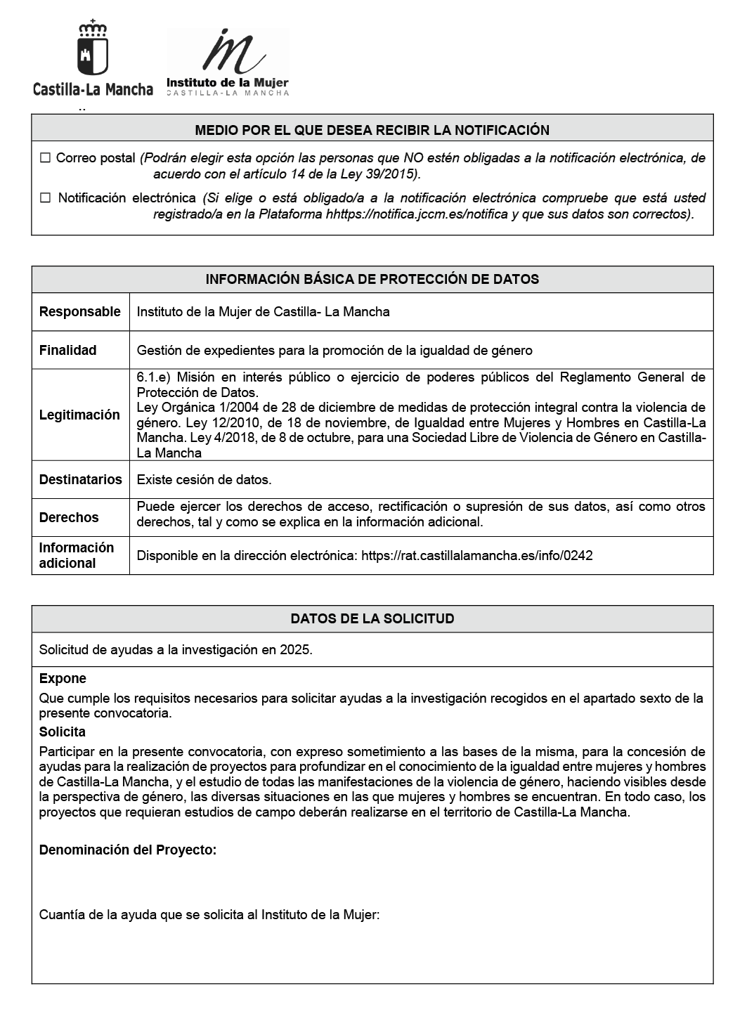 Resolución de 10/06/2025, del Instituto de la Mujer de Castilla-La Mancha, por la que se convocan ayudas a la investigación en el año 2025. Extracto BDNS (Identif.): 840355. [2025/5251]