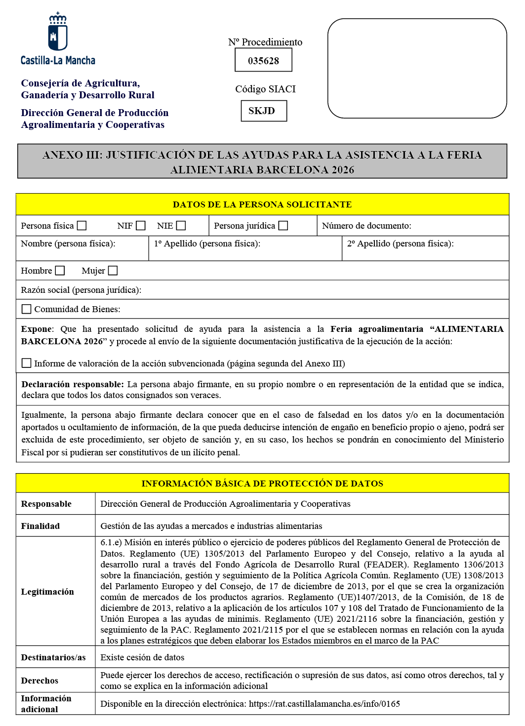 Convocar, por el procedimiento de tramitación anticipada, para el año 2026, las ayudas en especie para la asistencia a la feria agro alimentaria Alimentaria Barcelona 2026, de conformidad con la Orden 79/2022, de 22 de abril, de la Consejería de Agricultura, Ganadería y Desarrollo Rural por la que se establecen las bases reguladoras para la concesión, en régimen de minimis, de ayudas en especie para la participación agrupada en el stand que contratará la Consejería de Agricultura, Ganadería y Desarrollo Rural para la asistencia a las ferias del sector agroalimentario