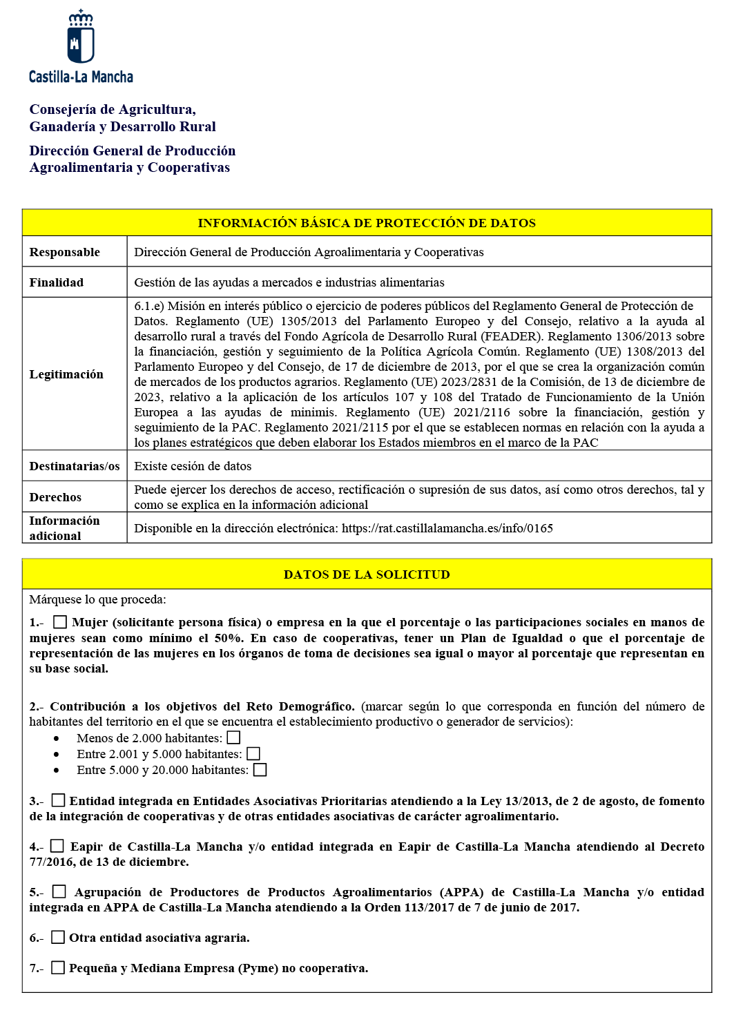 a) Las persona físicas, en el Registro de los Servicios Centrales, las Delegaciones Provinciales y las Oficinas Comarcales Agrarias de la Consejería de Agricultura, Ganadería y Desarrollo Rural o en cualquiera de los lugares previstos en el artículo 16.4 de la Ley 39/2015, de 1 de octubre, del Procedimiento Administrativo Común de las Administraciones Públicas y opcionalmente de forma telemática a través de la sede electrónica de la Junta de Comunidades de Castilla-La Mancha (www.jccm.es), en este caso, la persona solicitante o la que lo represente deberá darse de alta en la Plataforma de Notificaciones Telemáticas en la sede electrónica de la Junta de Comunidades de Castilla-La Mancha. (https://notifica.jccm.es/notifica/).