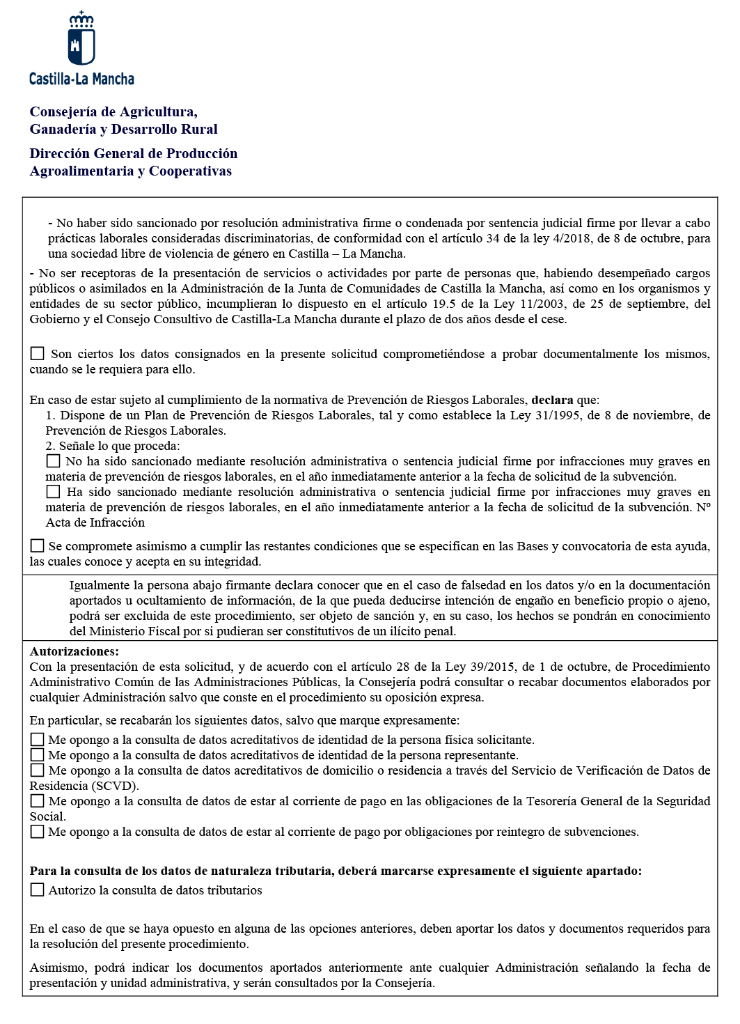 4. En el supuesto de estar sujeto a la normativa de prevención de riesgos laborales, se debe disponer de un plan de prevención de riesgos laborales, así como no haber sido sancionados, en virtud de resolución administrativa o sentencia judicial firme, por falta muy grave, en materia de prevención de riesgos laborales, durante el año inmediatamente anterior a la fecha de solicitud de la subvención.