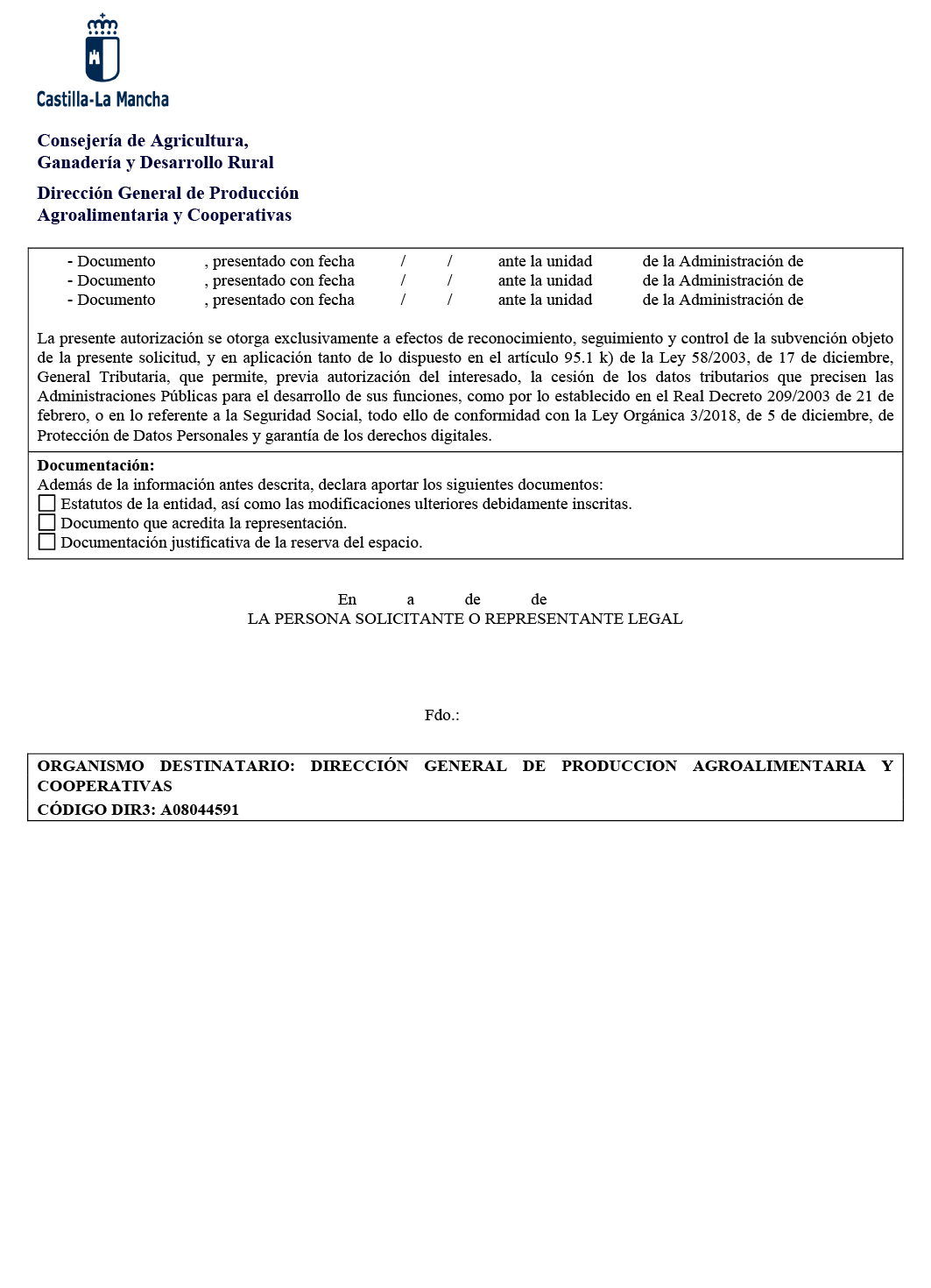 1. Las solicitudes de ayuda estarán dirigidas a la Dirección General de Producción Agroalimentaria y Cooperativas y podrán ser presentadas: