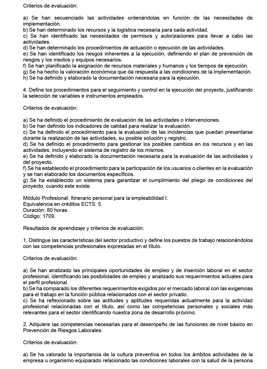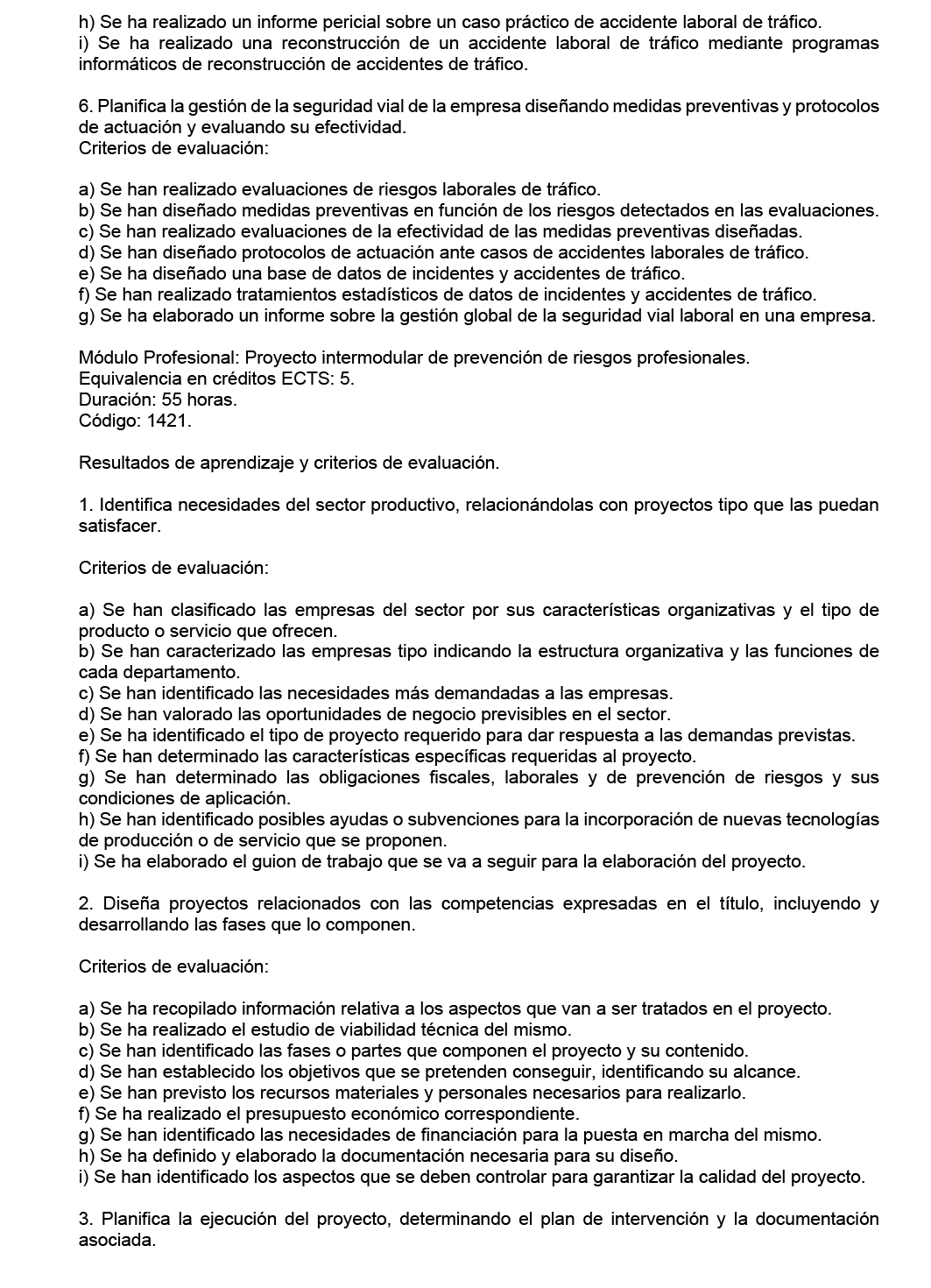 2. El módulo 1421. Proyecto intermodular de prevención de riesgos profesionales, se desarrollará a lo largo de los dos cursos académicos de duración del ciclo formativo, debiéndose establecer en la programación didáctica los resultados de aprendizaje y criterios de evaluación que se trabajen en cada curso.
