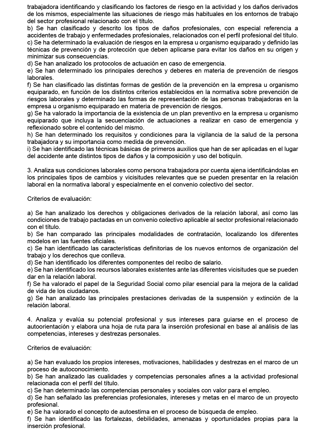2. La formación establecida en el módulo profesional de Itinerario personal para la empleabilidad I, que incluye el contenido mínimo del programa de formación para el desempeño de las funciones de nivel básico del anexo IV del Reglamento de los Servicios de Prevención, aprobado por Real Decreto 39/1997, de 17 de enero, capacita para llevar a cabo responsabilidades profesionales equivalentes a las que precisan las actividades de nivel básico en prevención de riesgos laborales establecidas en el artículo 35 del citado real decreto, siempre que tenga, al menos 45 horas lectivas.