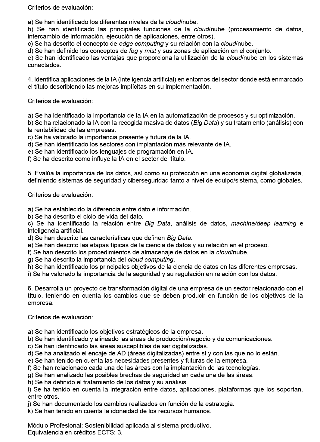 3) Para el caso excepcional de la oferta del ciclo formativo en tres cursos académicos, en el curso 2027/2028 se implantará el currículo de los módulos profesionales del tercer curso.