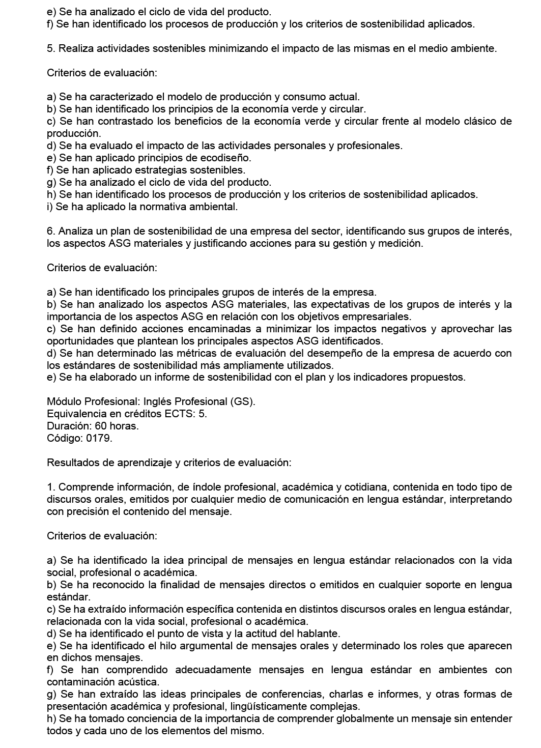 1) En el curso 2025/2026, se implantará el currículo de los módulos profesionales del primer curso del ciclo formativo.