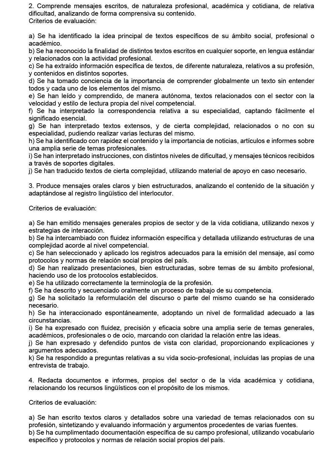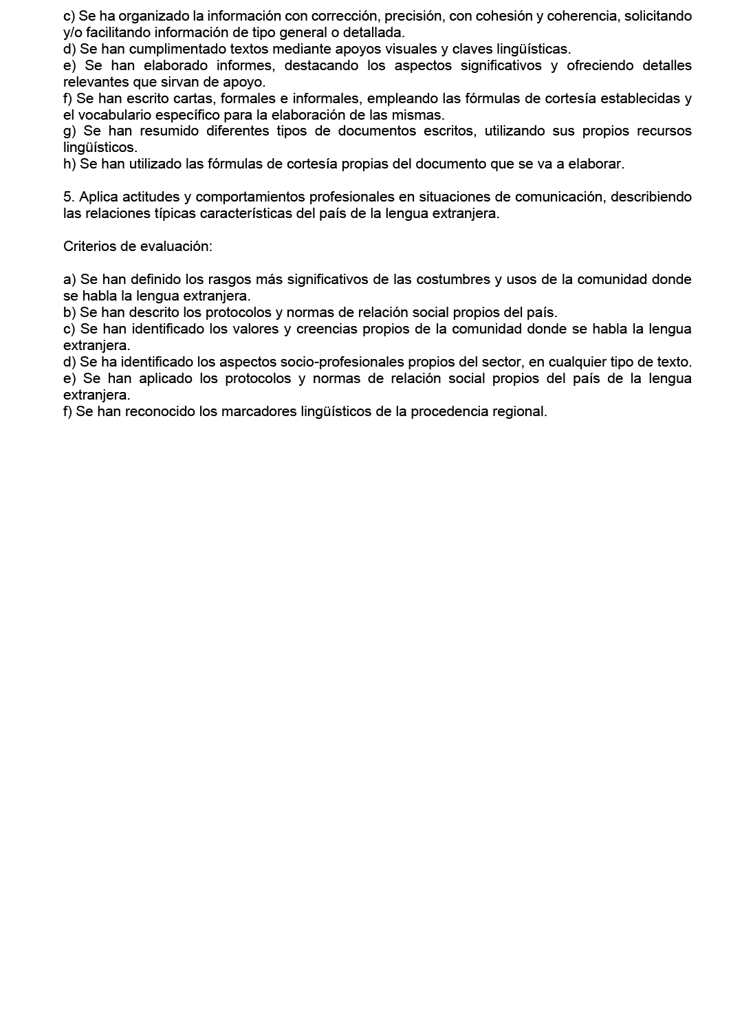 a) Incluir un módulo profesional de idioma extranjero en segundo curso. La duración mínima del módulo será de 3 horas semanales, impartiéndose fuera del horario lectivo ordinario. Además, se deberán impartir en idioma extranjero dos módulos profesionales no lingüísticos, con carácter preferente uno en primer curso y otro en segundo curso.