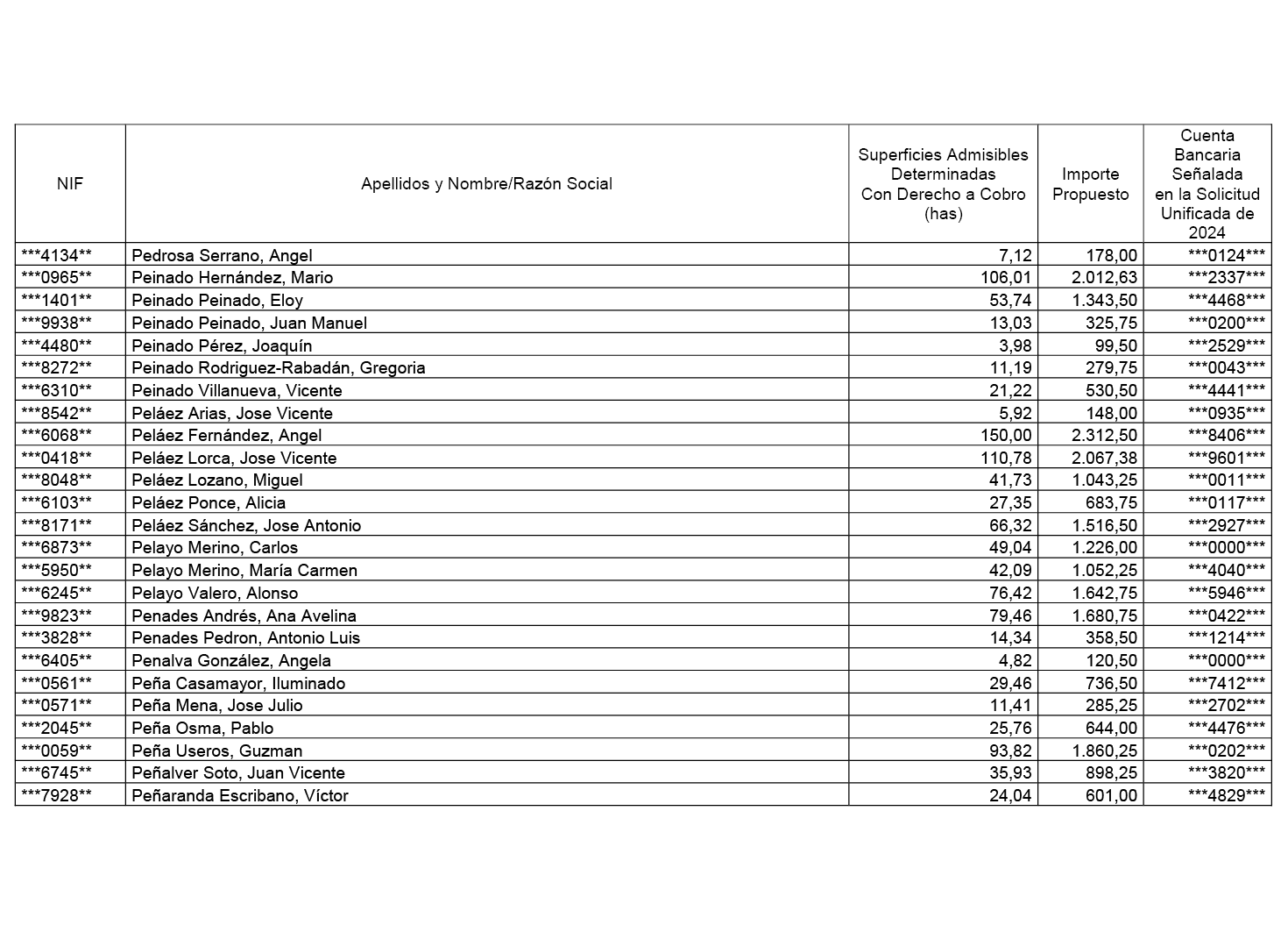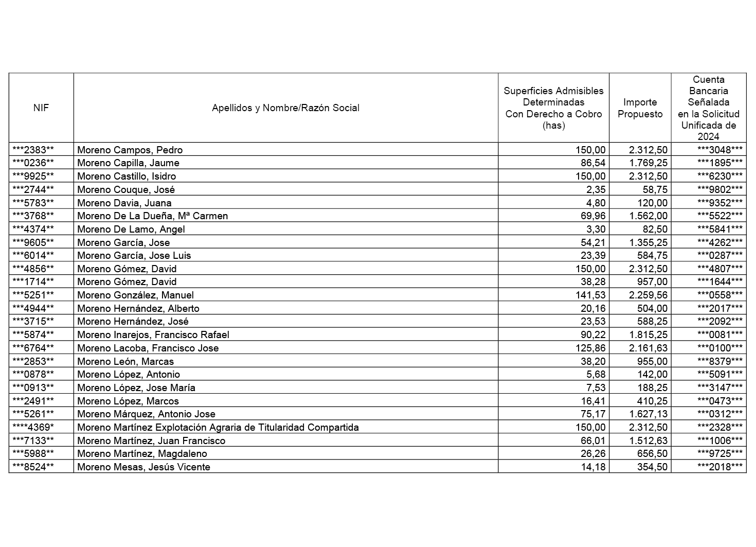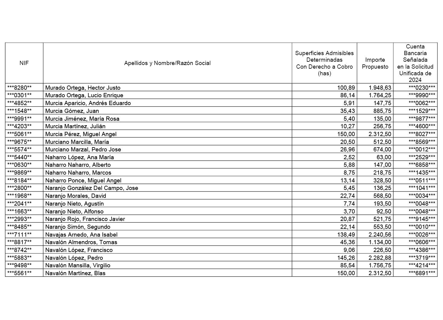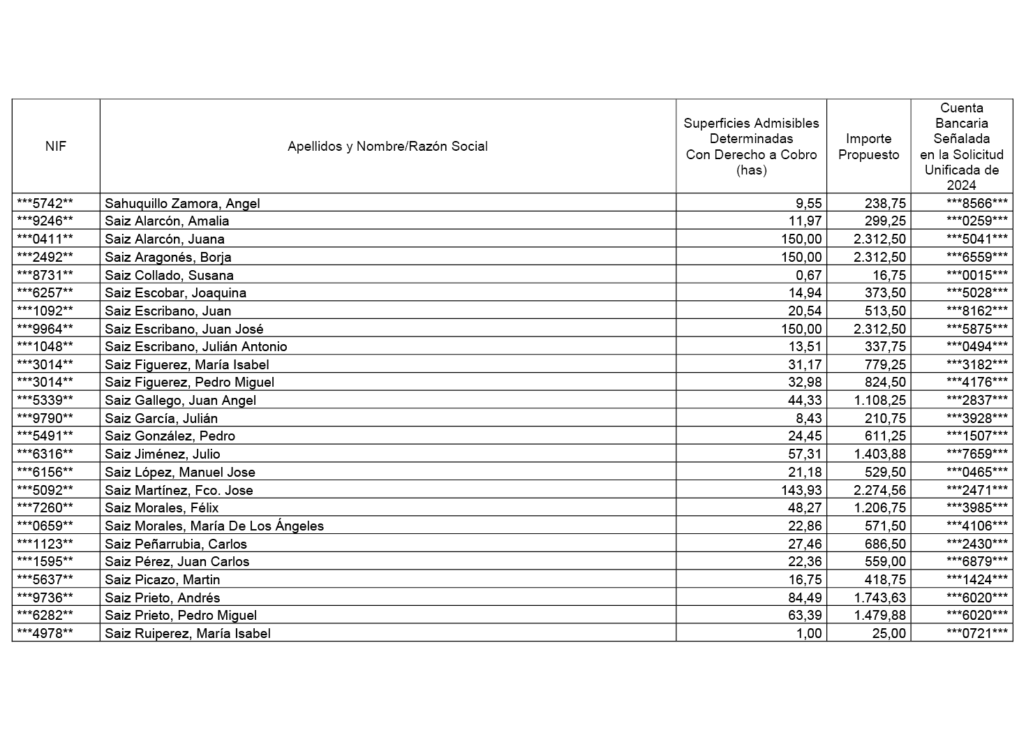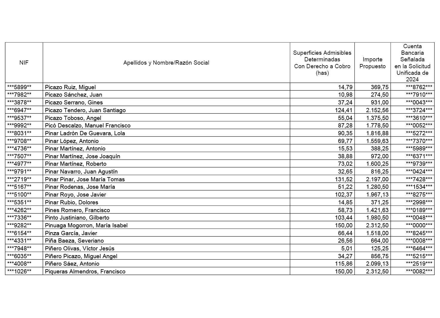 Vista la Propuesta de Resolución Definitiva de las ayudas previstas en el Decreto 59/2025, de 29 de julio, por el que se establecen las bases reguladoras, con carácter excepcional, en régimen de minimis, de ayudas dirigidas a personas titulares de explotaciones agrícolas de determinados sectores ubicadas en municipios de Castilla-La Mancha especialmente afectados por la sequía, durante el año hidrológico 2023-2024 y de conformidad con lo dispuesto en el artículo 6.3 del decreto referido que exige su publicación en el Diario Oficial de Castilla-La Mancha, con indicación, para cada una de las personas propuestas, de las superficies admisibles que motivan la concesión de la ayuda, los importes propuestos, así como los últimos dígitos de la cuenta bancaria señalada en la solicitud unificada de 2024, resuelvo: