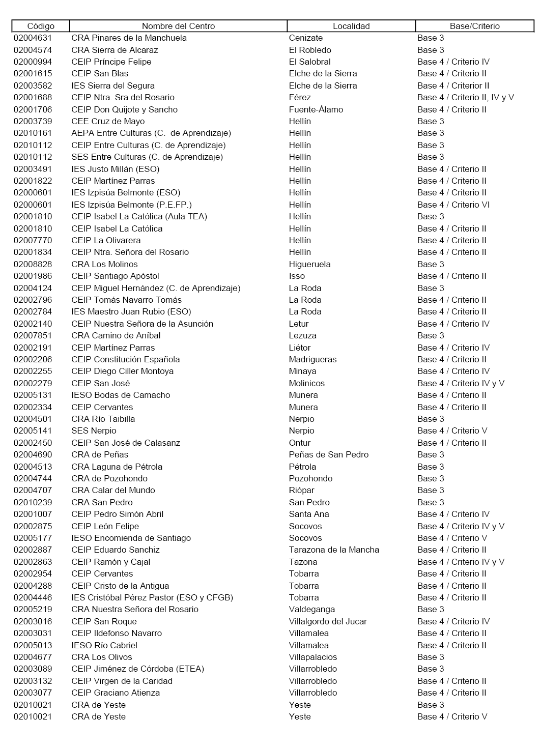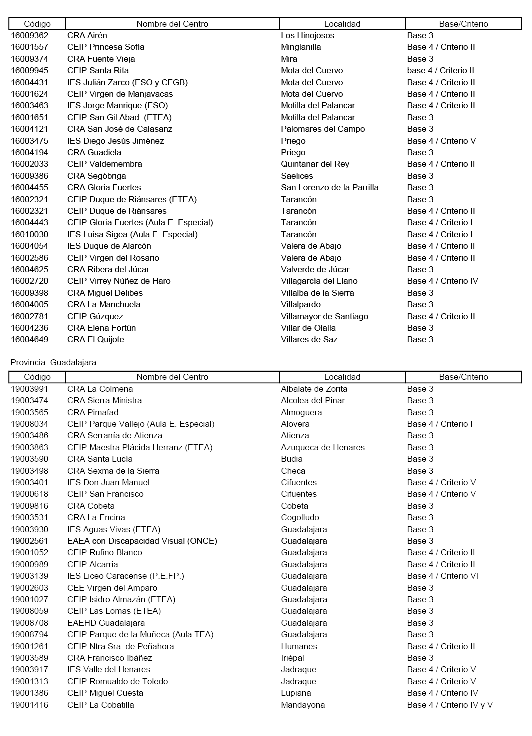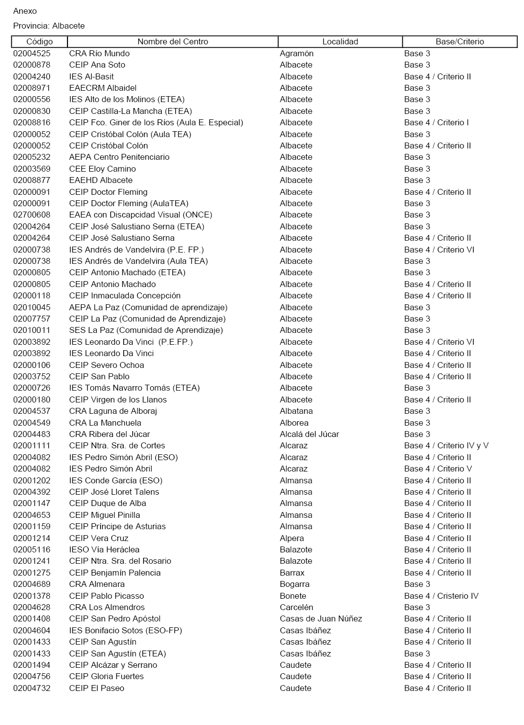 Primero. Clasificar como de especial dificultad, por tratarse de difícil desempeño, los centros y puestos de trabajo docente que aparecen reflejados en el Anexo de esta Resolución con indicación de la base o criterios por el o los que cataloga cada centro, de acuerdo con lo estipulado en la Base Tercera y Cuarta de la Orden de 07/06/2016, modificada por la Orden 97/2019 de 19/06/2019.