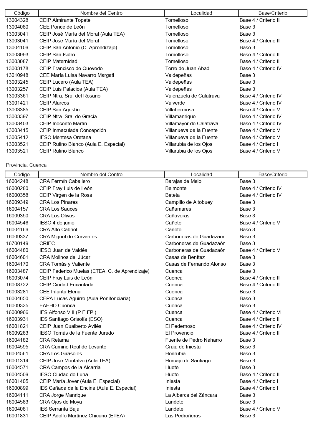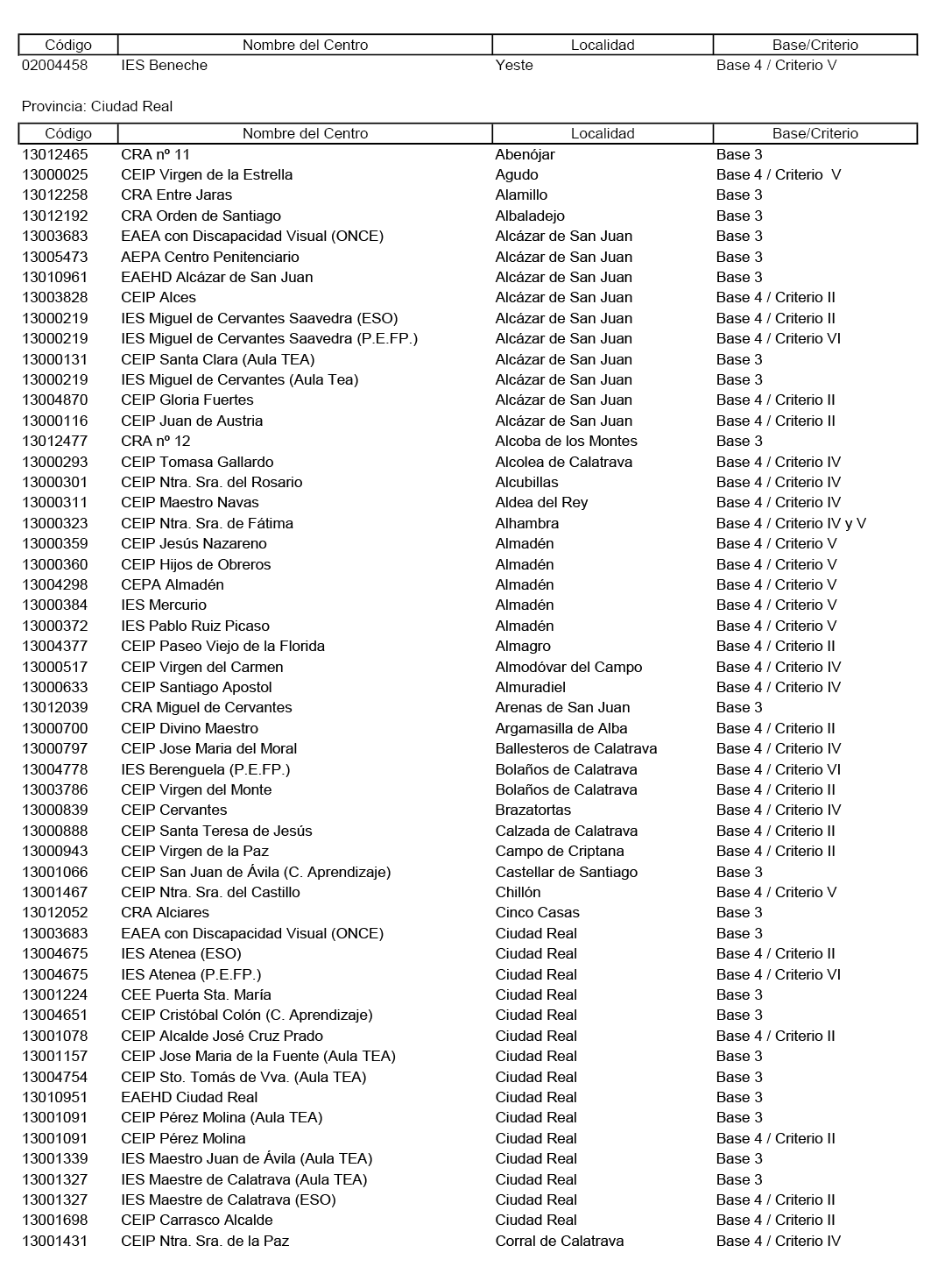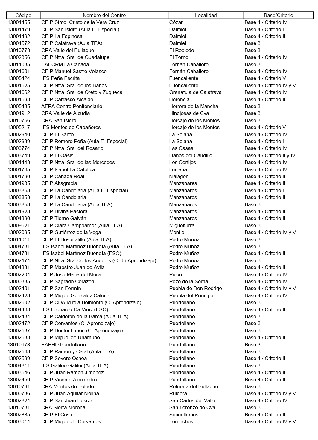 Primero. Clasificar como de especial dificultad, por tratarse de difícil desempeño, los centros y puestos de trabajo docente que aparecen reflejados en el Anexo de esta Resolución con indicación de la base o criterios por el o los que cataloga cada centro, de acuerdo con lo estipulado en la Base Tercera y Cuarta de la Orden de 07/06/2016, modificada por la Orden 97/2019 de 19/06/2019.