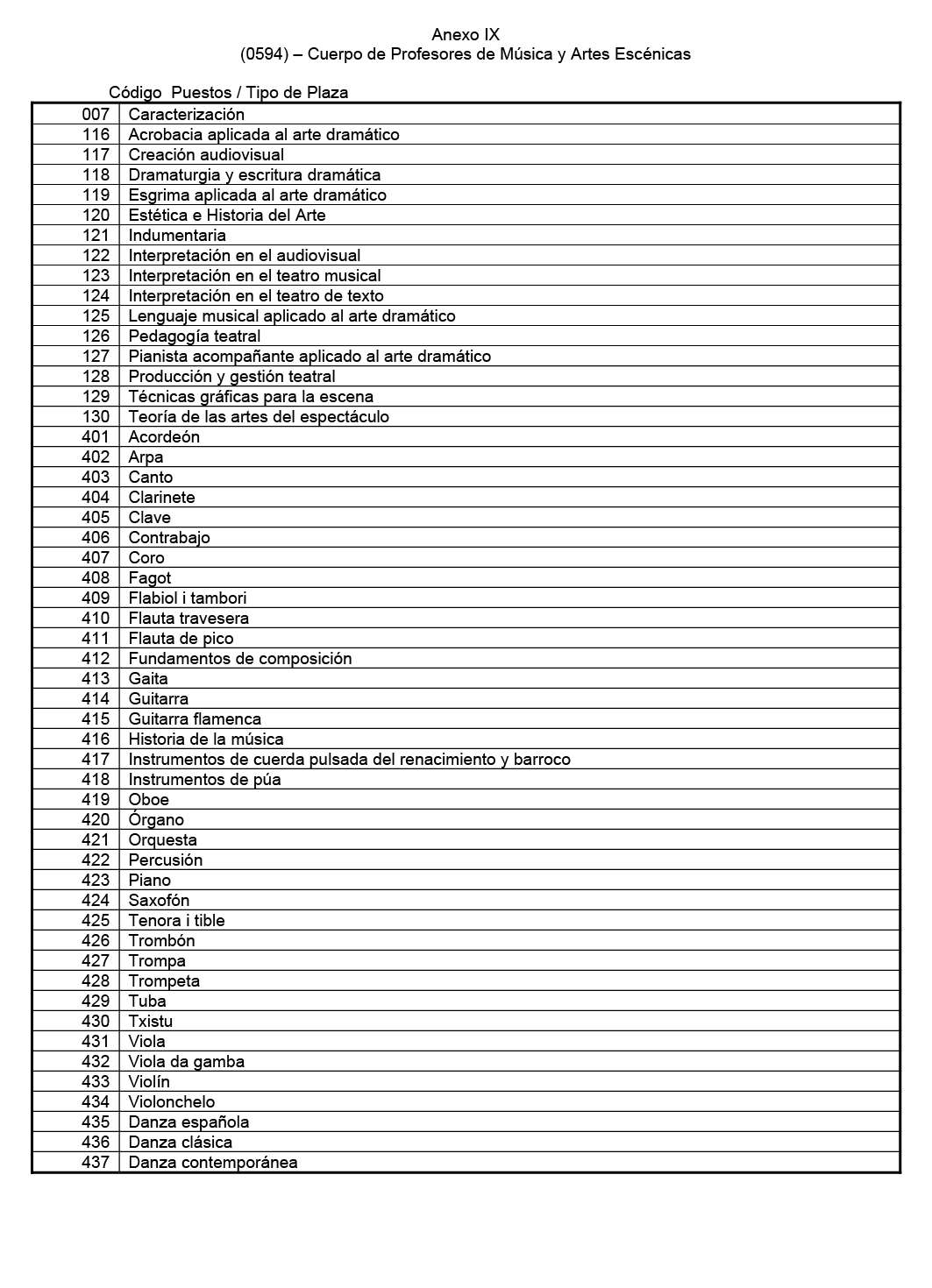 - Cuerpo de Profesores de Música y Artes Escénicas.