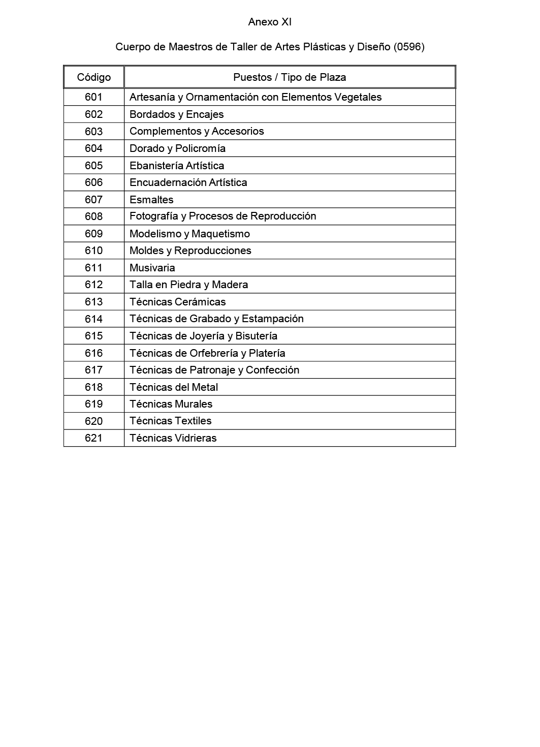- Cuerpo de Maestros de Taller de Artes Plásticas y Diseño.