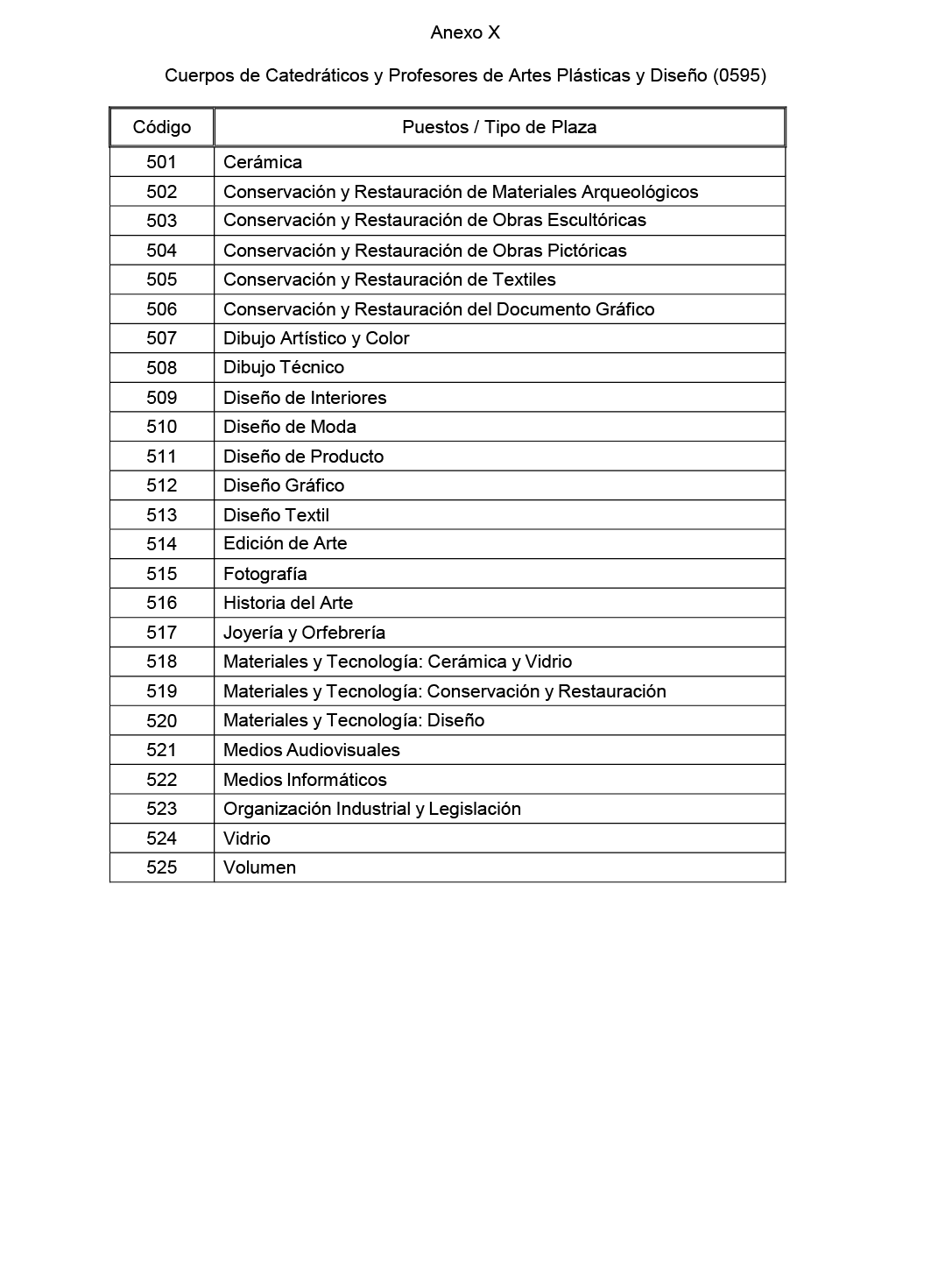 - Cuerpo de Catedráticos de Artes Plásticas y Diseño.