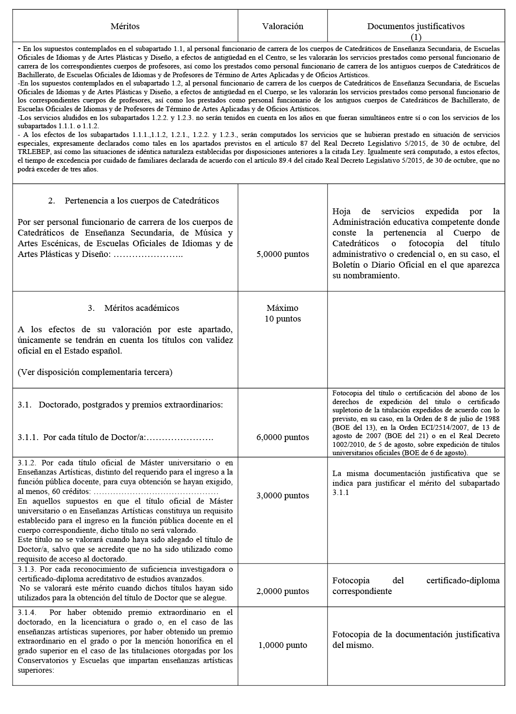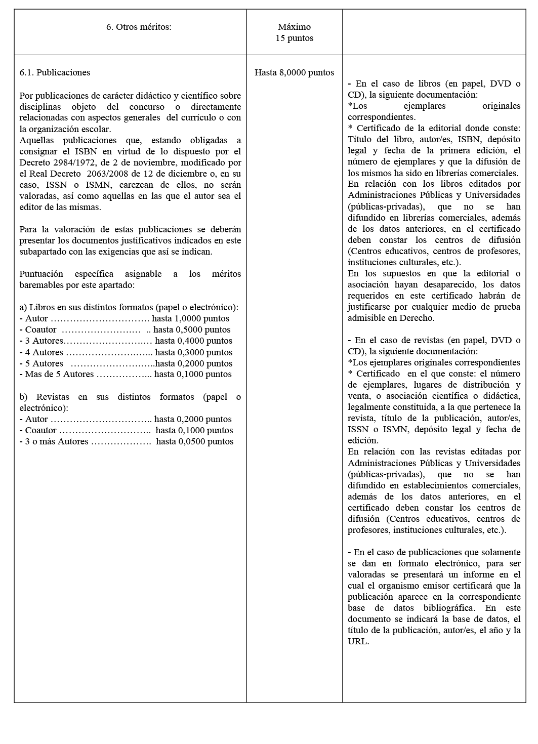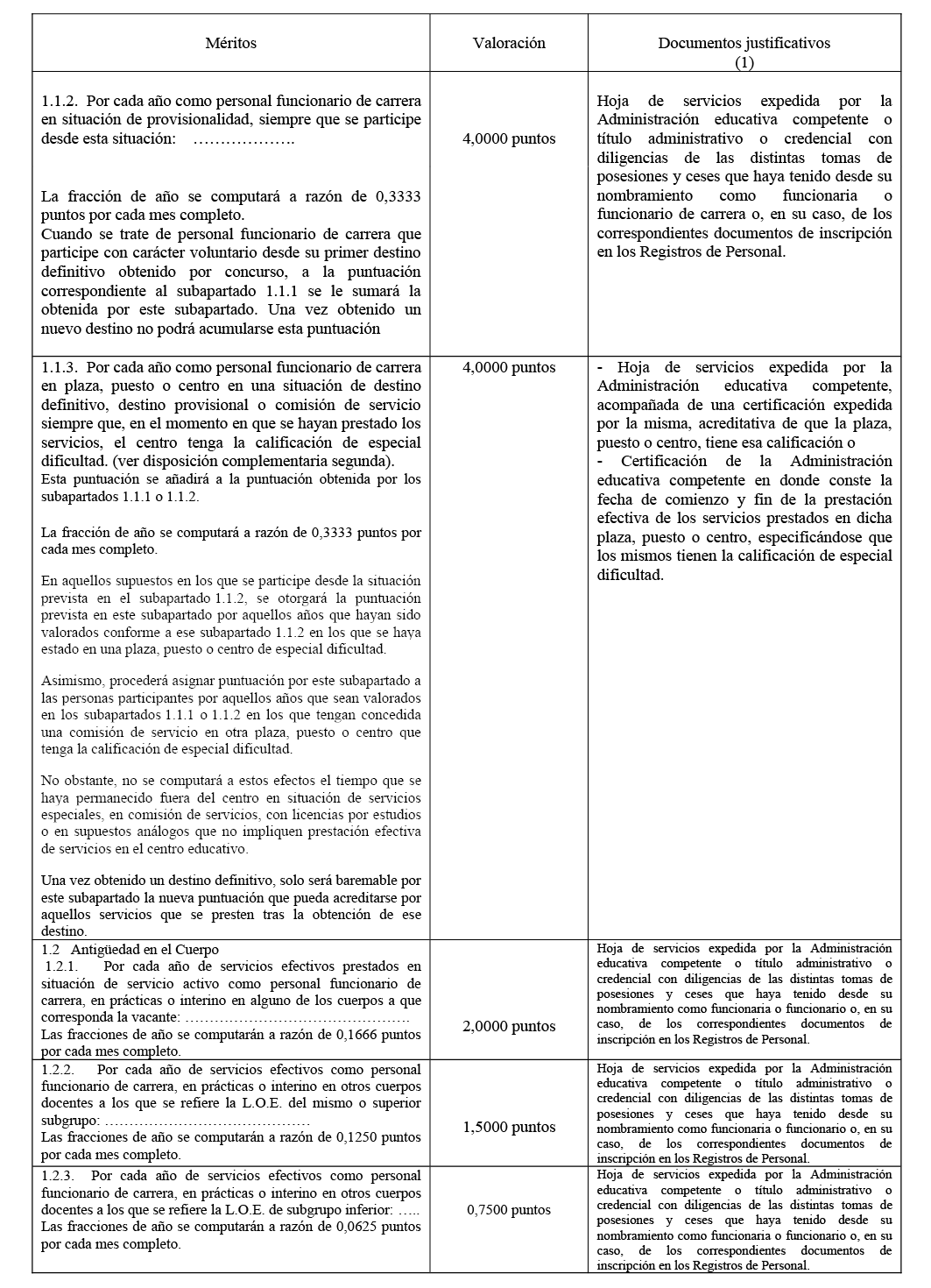 La prioridad en la adjudicación vendrá dada por la puntuación definitiva obtenida como suma de los apartados 1, 5.1 y 5.2 del baremo de méritos del concurso general de traslados que se convoca mediante la presente resolución, por lo que los participantes que lo sean solo en este procedimiento (concursillo) no deberán presentar documentación relativa a méritos. Sí deberán presentar la documentación referida a aquellos méritos incluidos en estos apartados (y cuya valoración se pretenda) que no figuren en su hoja de servicios o en el extracto de formación.