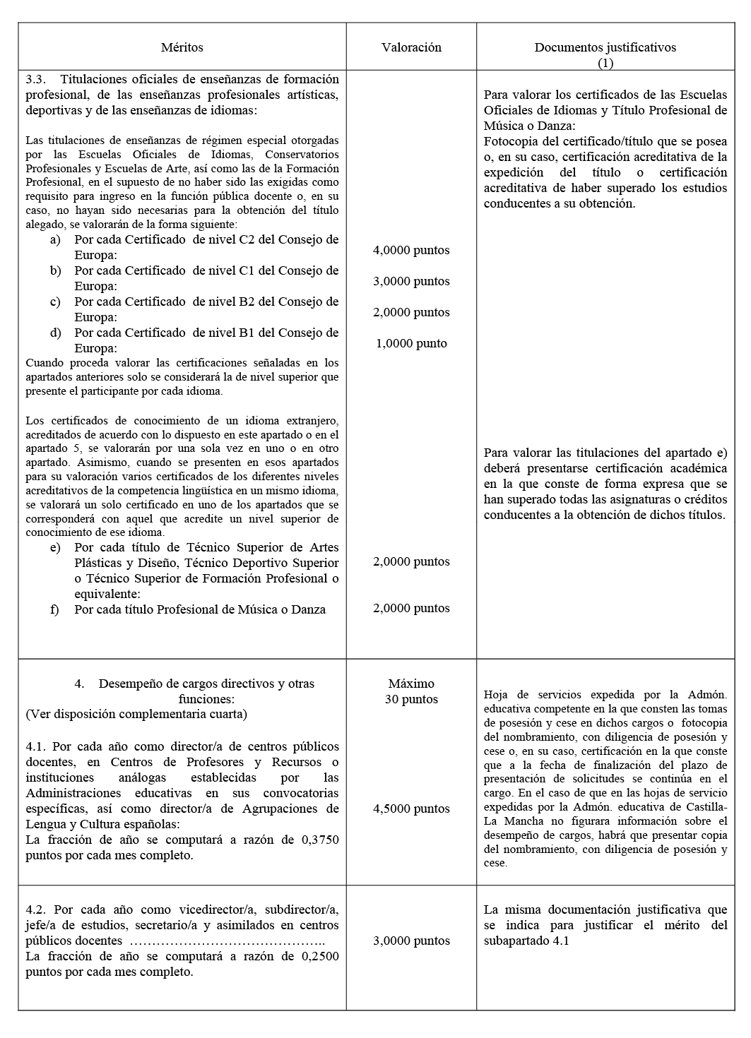 1) Aquellos profesores y profesoras que participaron en la convocatoria para la provisión de puestos de trabajo efectuada por Resolución de la Consejería de Educación, Cultura y Deportes de 24/10/2024 (DOCM nº 210, de 29 de octubre), podrán optar por que se valoren los méritos de los apartados 3, 4, 5 y 6 del baremo de acuerdo con la documentación presentada en la anterior convocatoria marcando en la instancia, para cada uno de los apartados mencionados, la opción “opta por que se valoren los méritos alegados en este apartado en el concurso de traslados 2024-2025”, no debiendo aportar la documentación de dichos apartados.