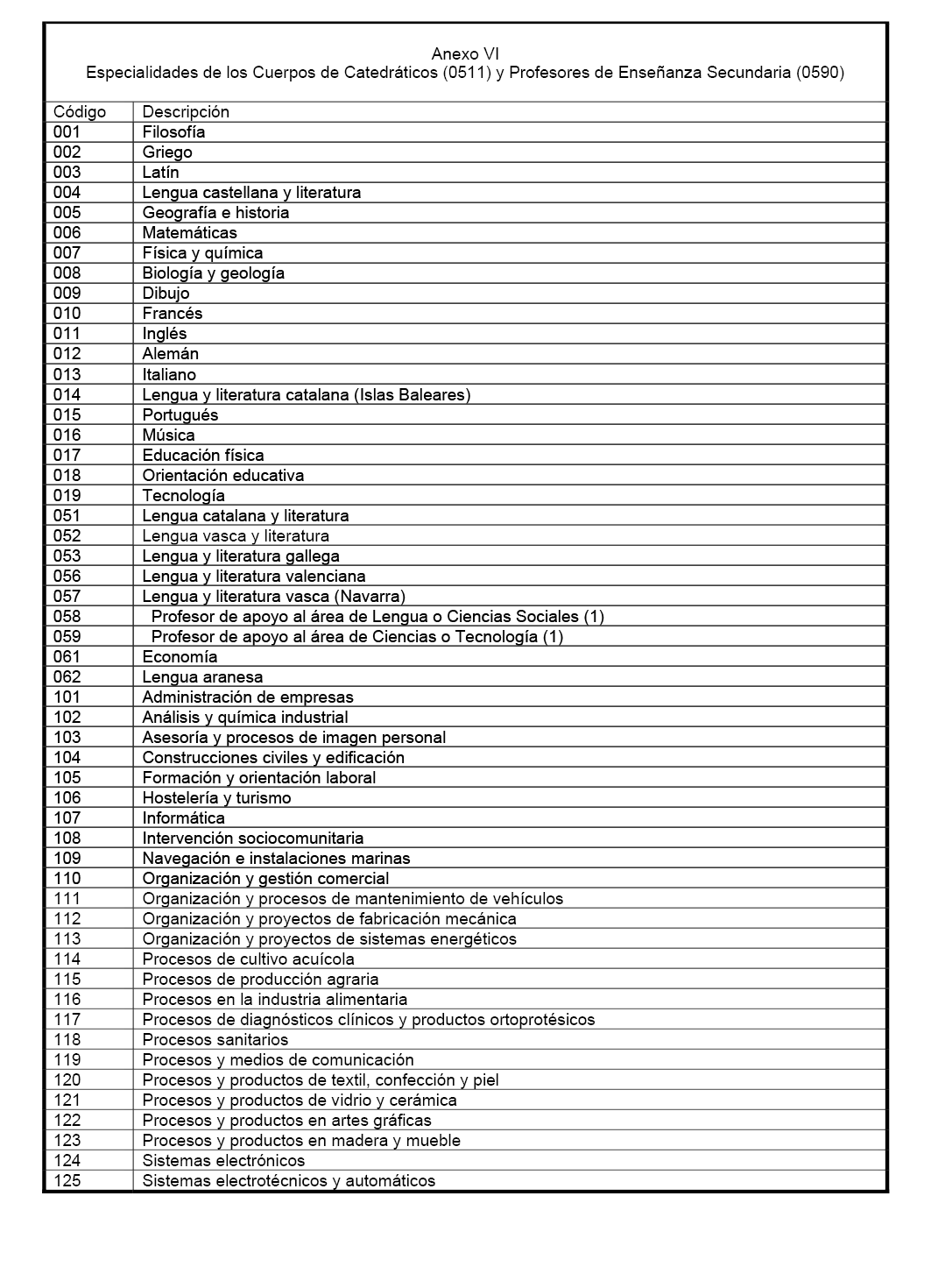 - Cuerpo de Catedráticos de Enseñanza Secundaria.