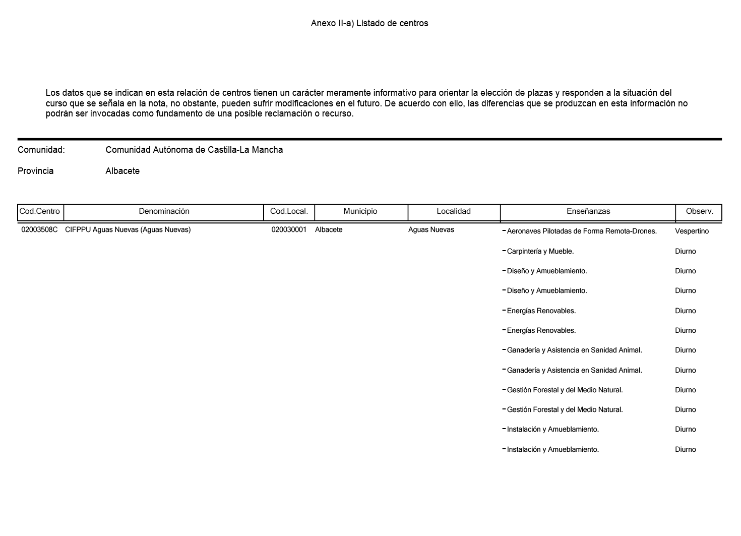 1. Plazas correspondientes a las especialidades de las que sean titulares, según los tipos que se indican en el anexo VI, existentes en los centros, unidades de orientación, centros y aulas de Educación de Personas Adultas, centros de educación especial y Escuelas de Arte que figuran en los anexos II a), II b), II c), II d) y V que acompañan a la presente resolución. Igualmente los Catedráticos de Enseñanza Secundaria y los Profesores de Enseñanza Secundaria de la especialidad de Orientación Educativa podrán solicitar plazas en los colegios públicos de Educación Infantil y Primaria que figuran en el anexo II b.1), en los centros de Educación Especial que figuran en el anexo II d), así como las plazas de los centros de Educación de Personas Adultas que figuran en el anexo II c), en los que desempeñarán las funciones específicas de la orientación en la educación de personas adultas, pudiendo ser estas plazas en centros de Educación de Personas Adultas de carácter itinerante (no obstante, estas plazas en centros de Adultos se ofertan como ordinarias y deben solicitarse como ordinarias, es decir, en ningún caso al solicitarlas debe rellenarse la marca de itinerancia que figura en la solicitud) y el ámbito de itinerancia de estas plazas se corresponderá con el ámbito territorial que constituye cada zona de Educación de Personas Adultas, determinado en el anexo I de la Orden de 30/01/2006 (DOCM de 9 de febrero), de la Consejería de Educación y Ciencia, por la que se establece la Red de Centros Educativos de Personas Adultas de titularidad de la Junta de Comunidades de Castilla-La Mancha (modificada por Orden de la Consejería de Educación y Ciencia de 19/01/2010), así como en las actualizaciones que con posterioridad se han ido realizando al mencionado anexo I de la Orden de 30/01/2006.