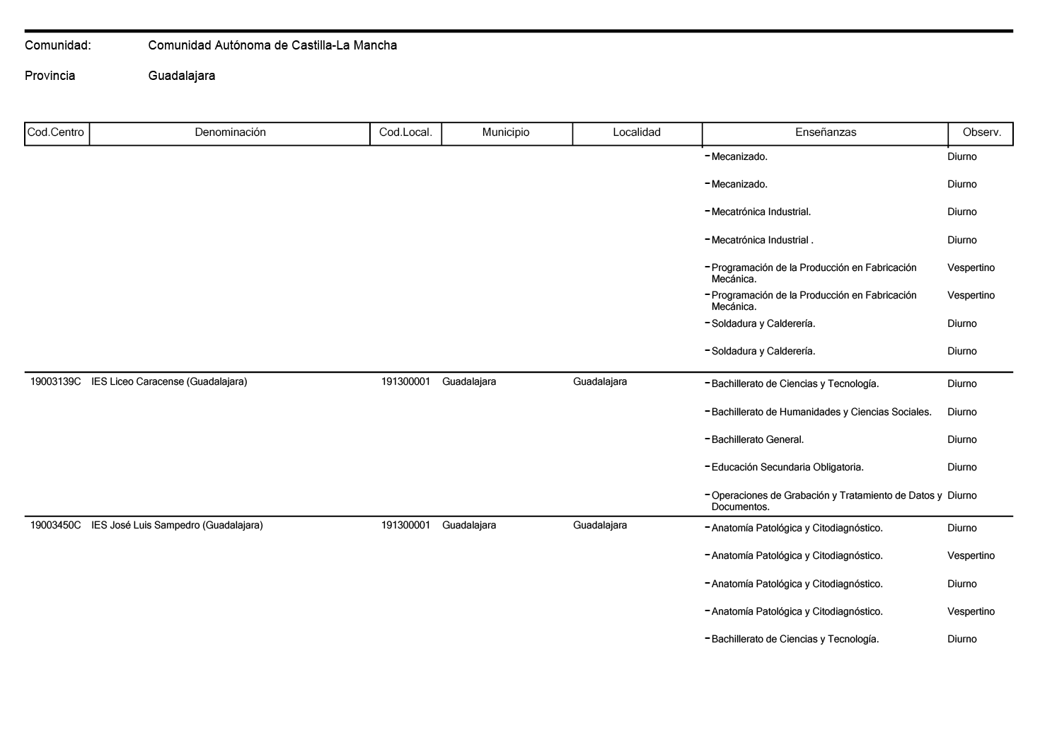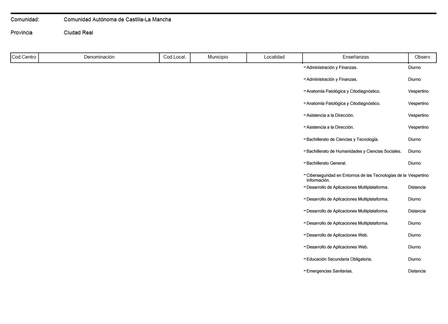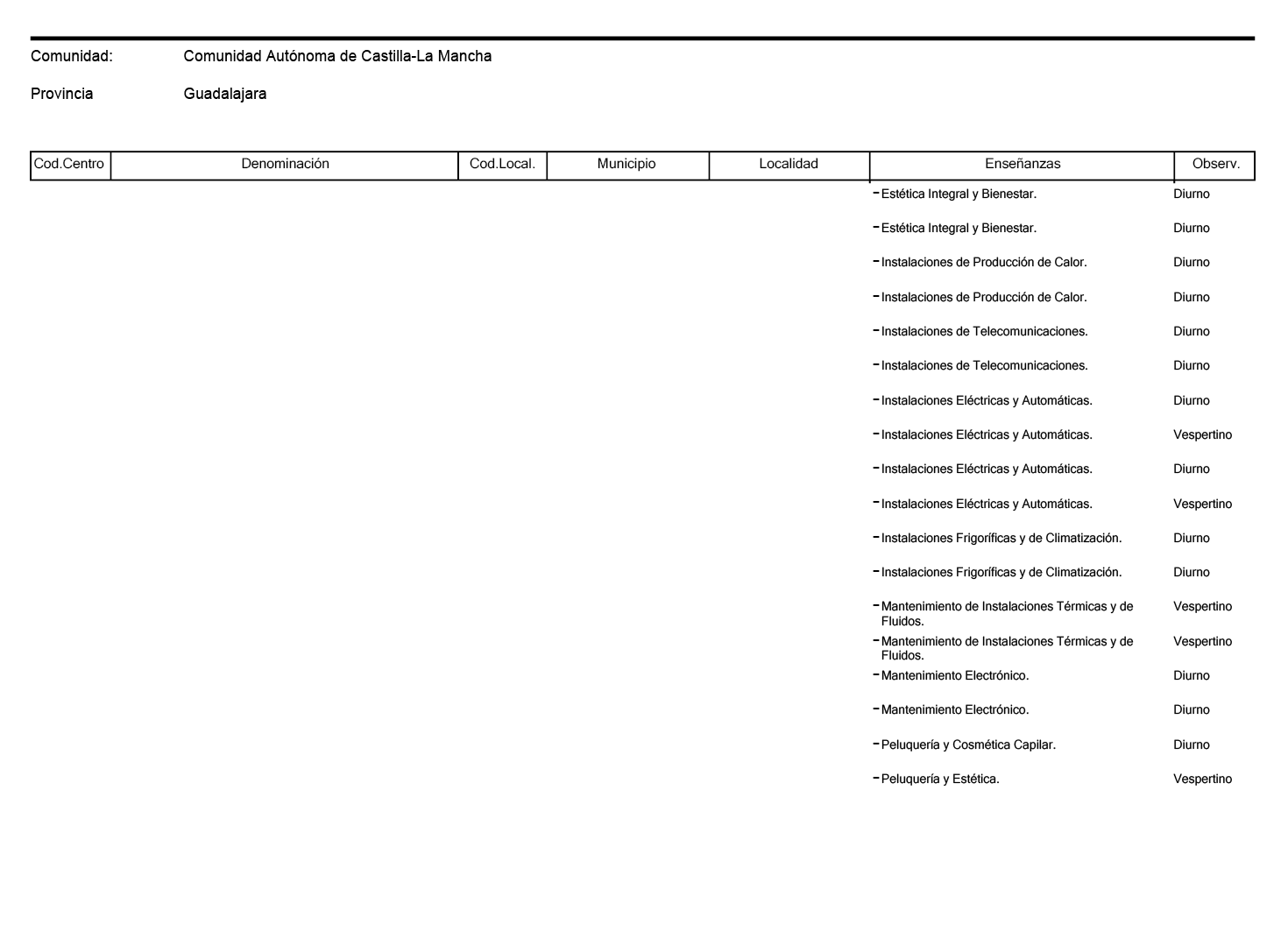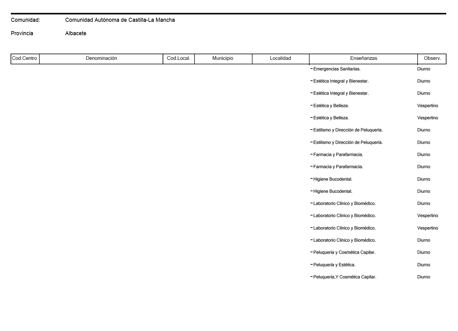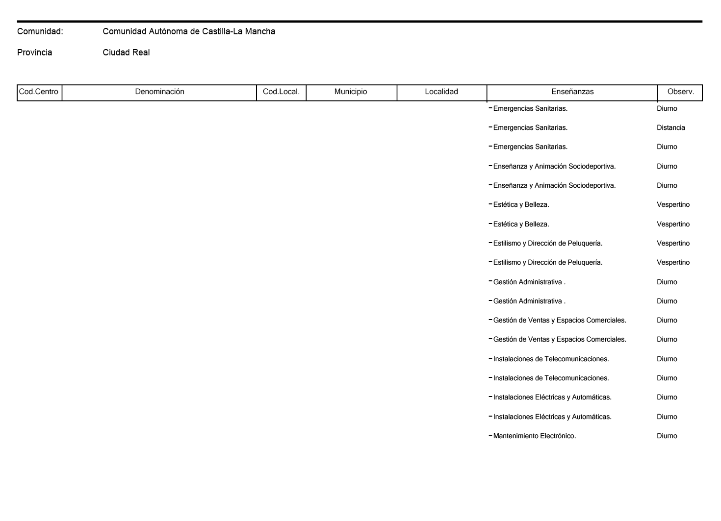 Si se pide más de una plaza-especialidad de un mismo centro o localidad es necesario repetir el centro o localidad tantas veces como puestos solicitados.