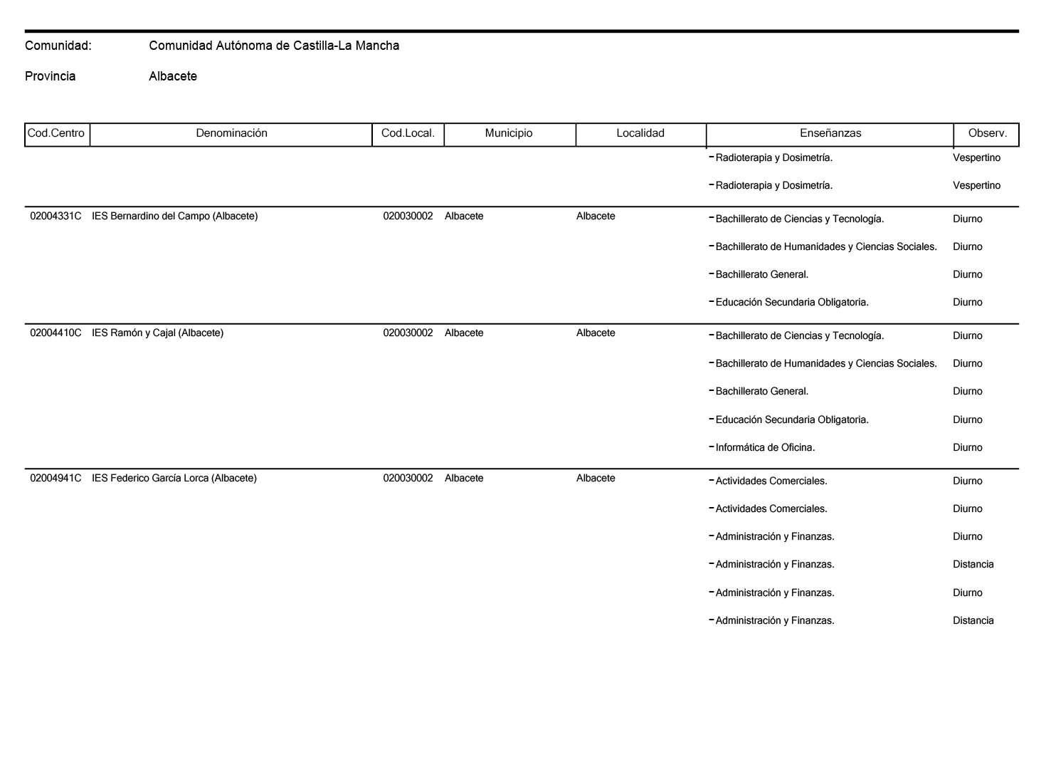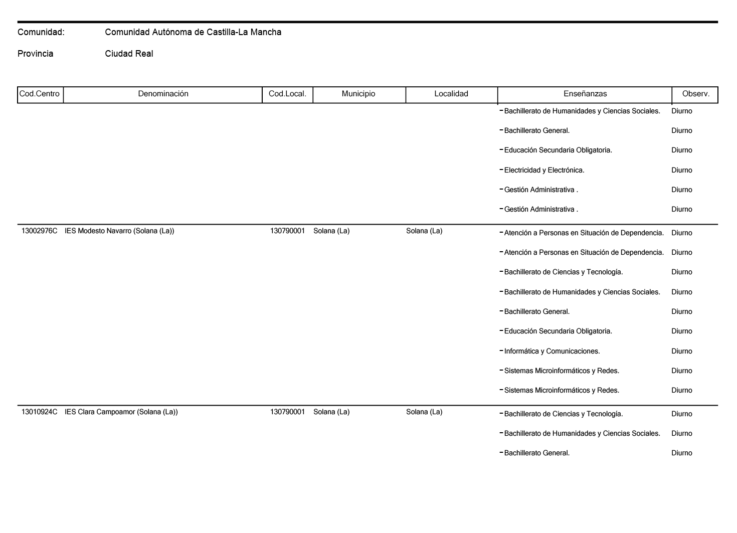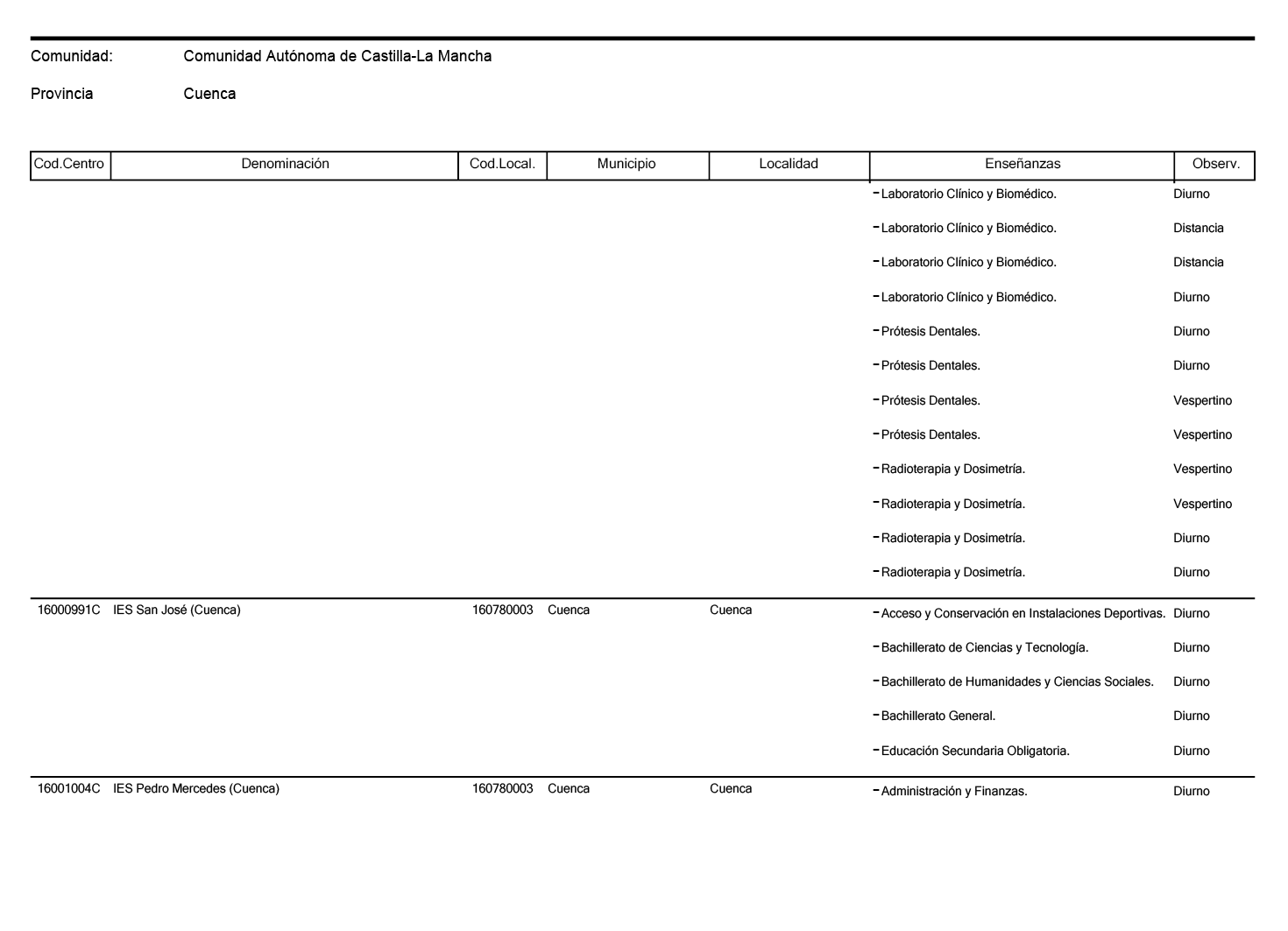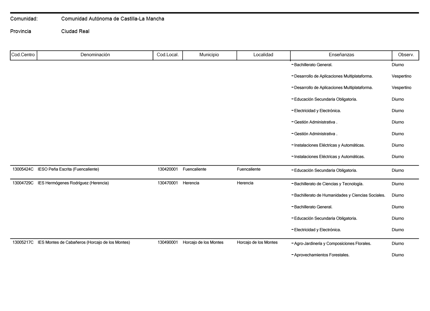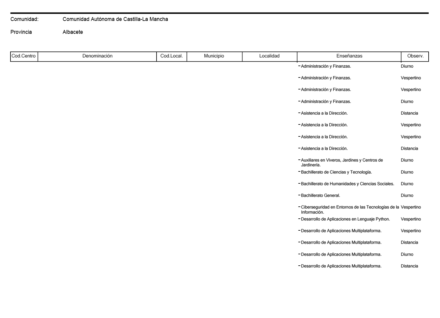 Si se pide más de una plaza-especialidad de un mismo centro o localidad es necesario repetir el centro o localidad tantas veces como puestos solicitados.