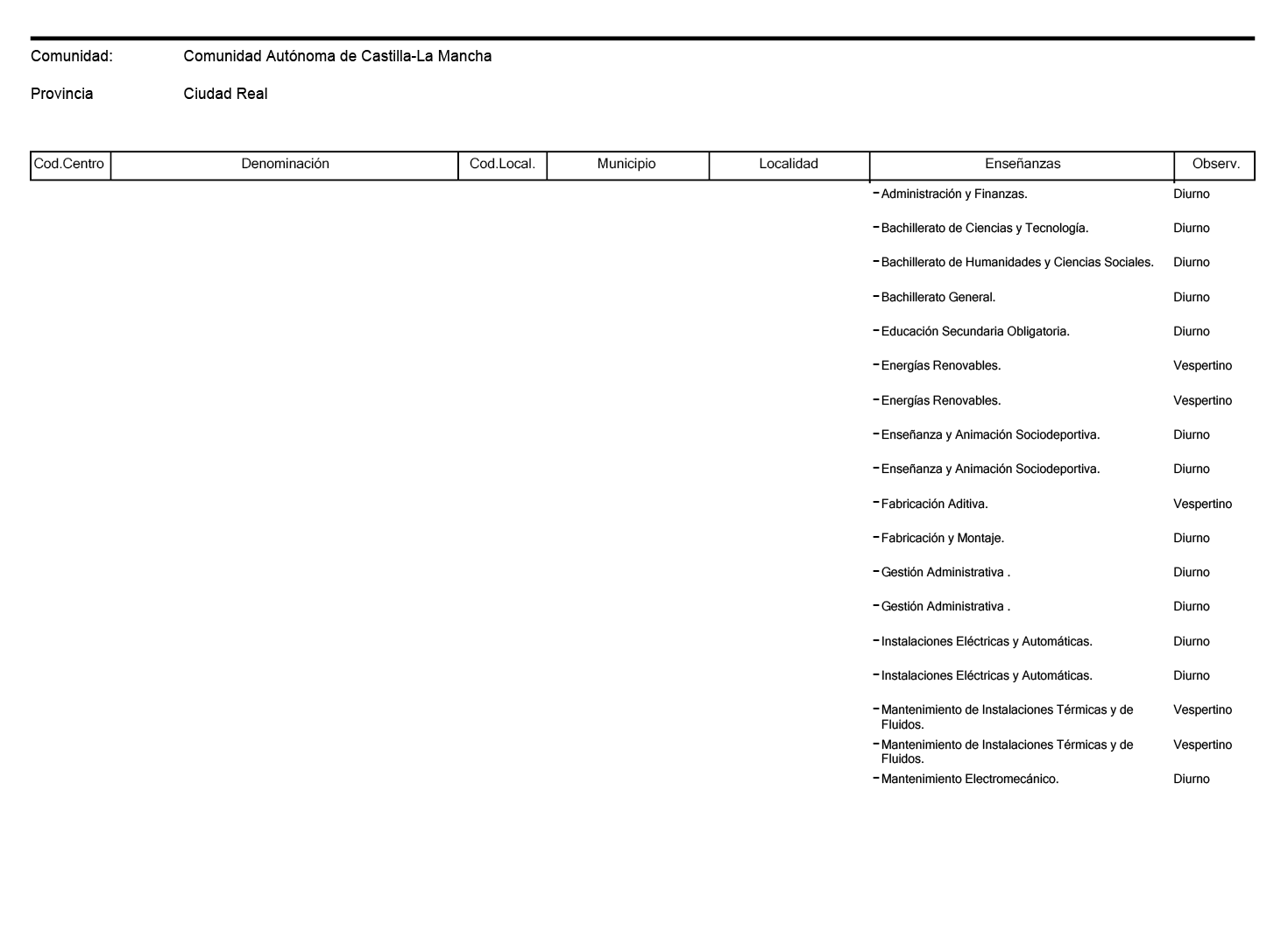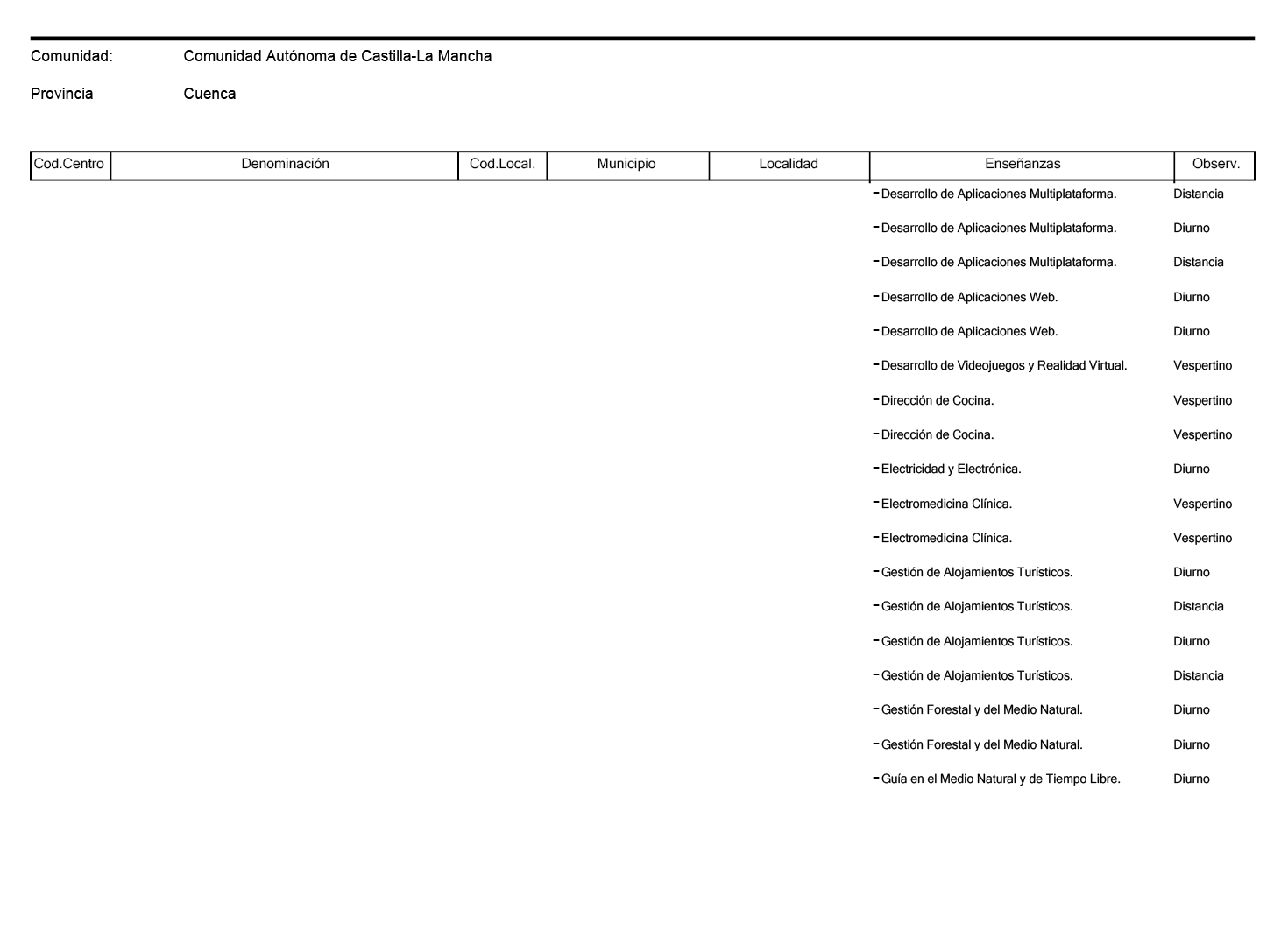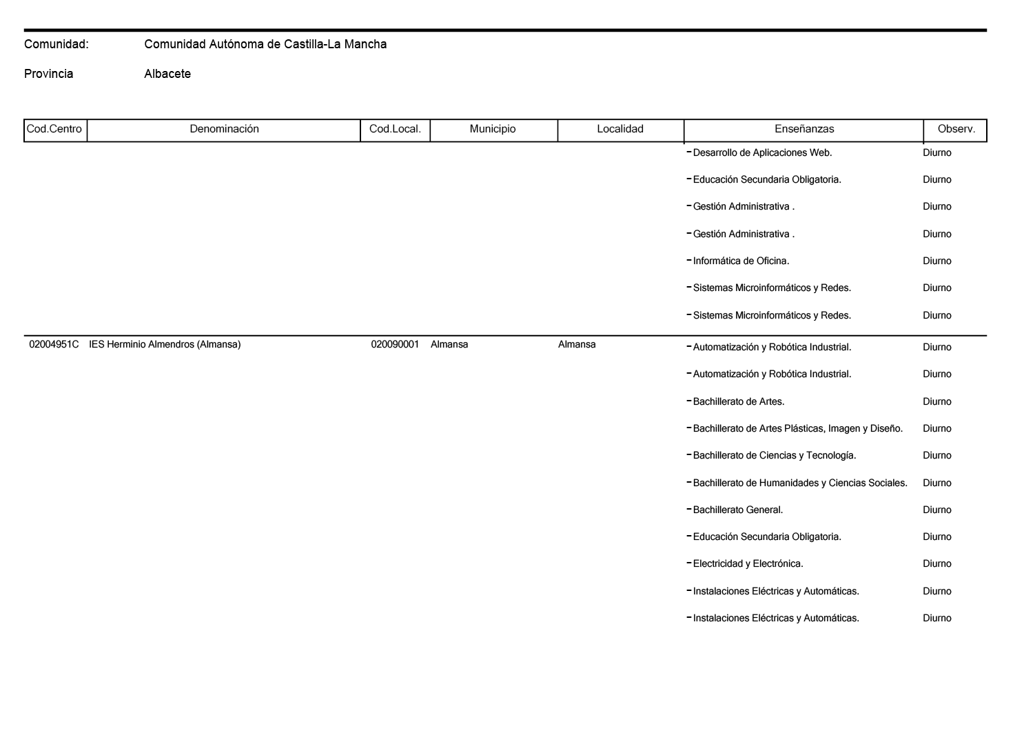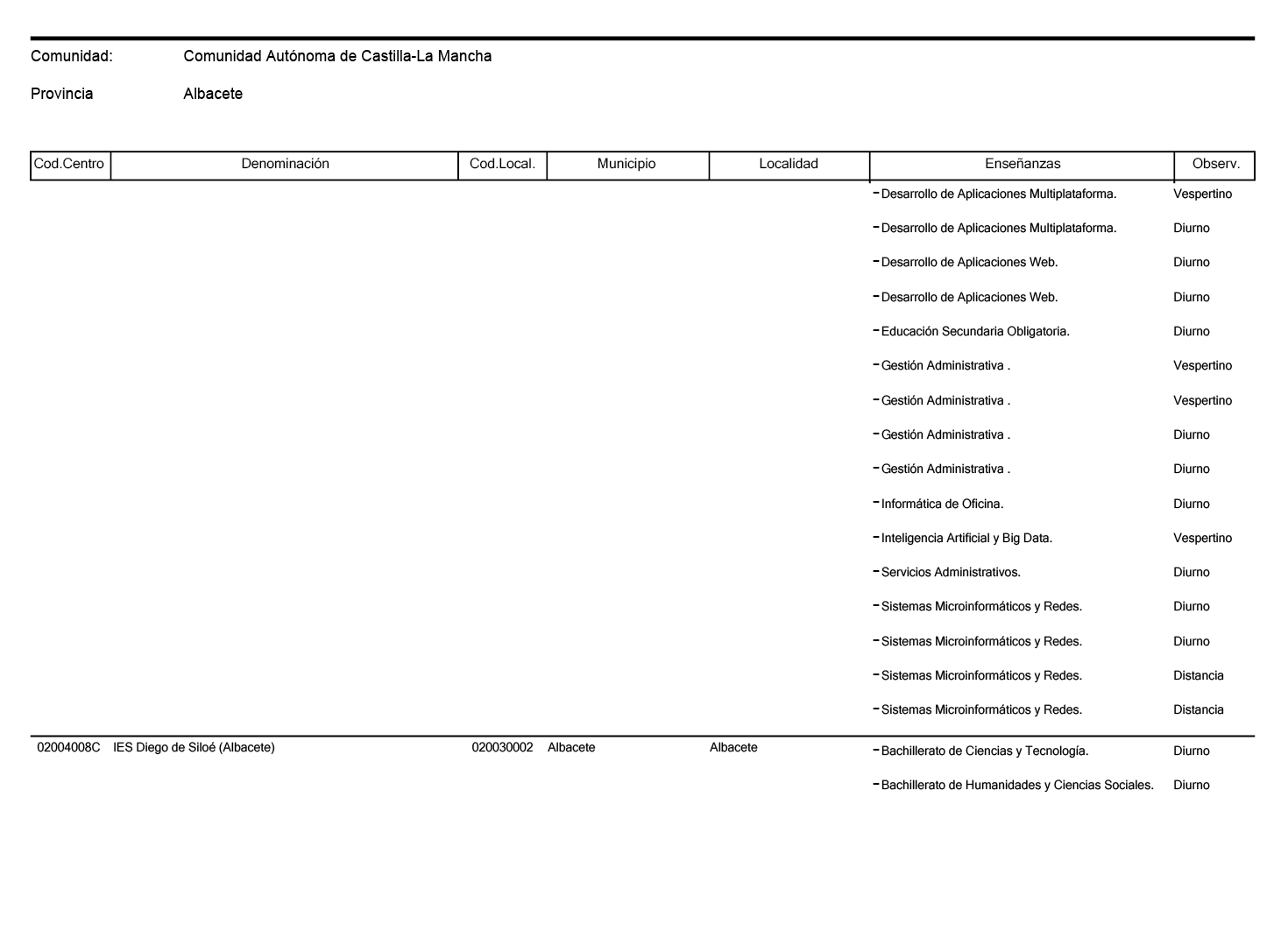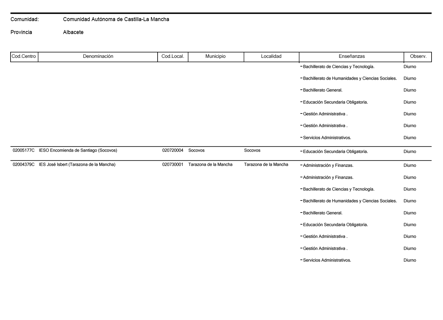 Si se pide más de una plaza-especialidad de un mismo centro o localidad es necesario repetir el centro o localidad tantas veces como puestos solicitados.