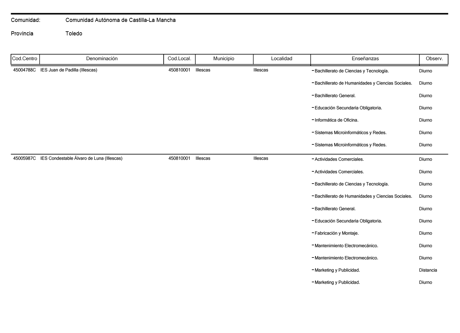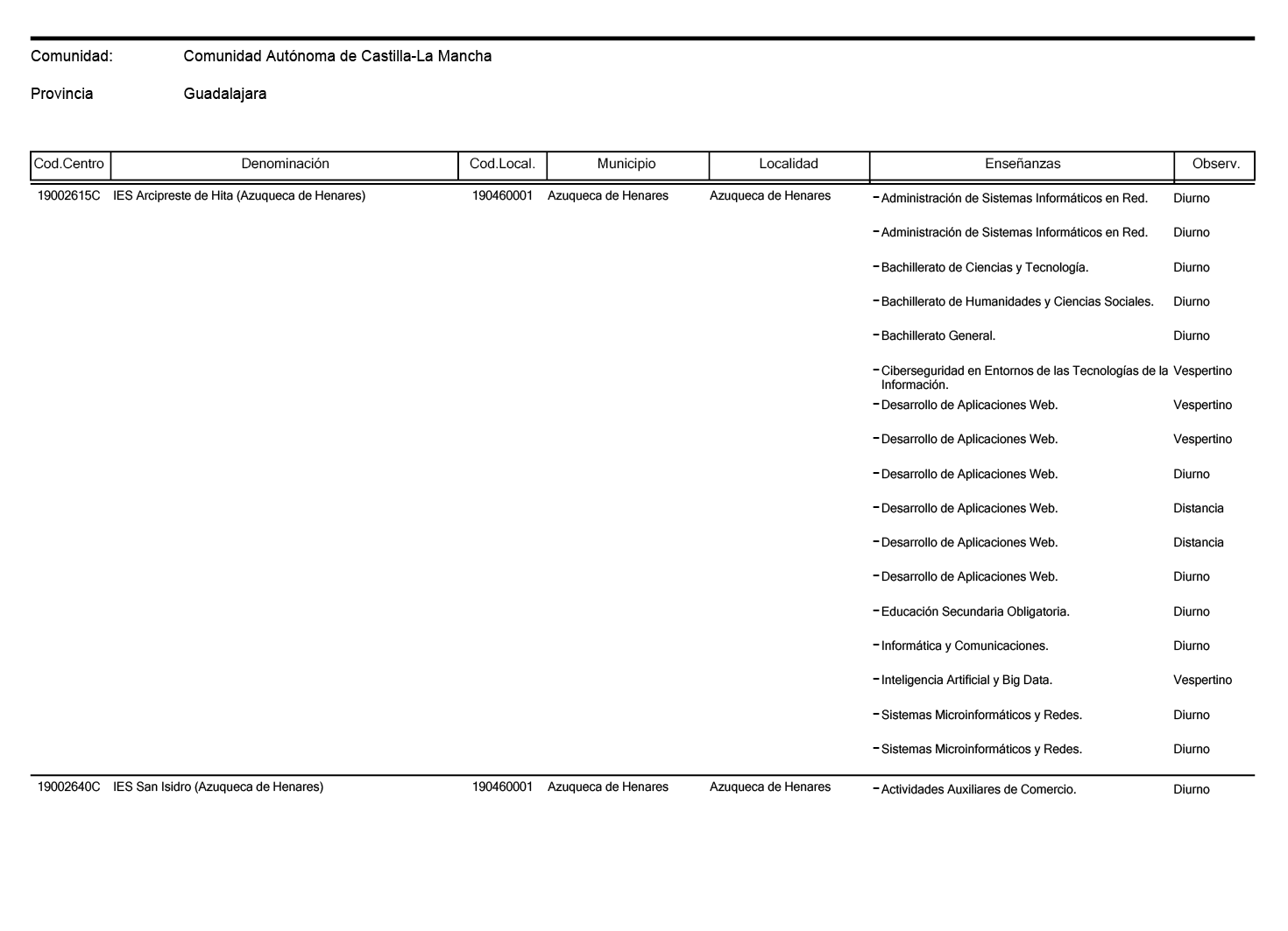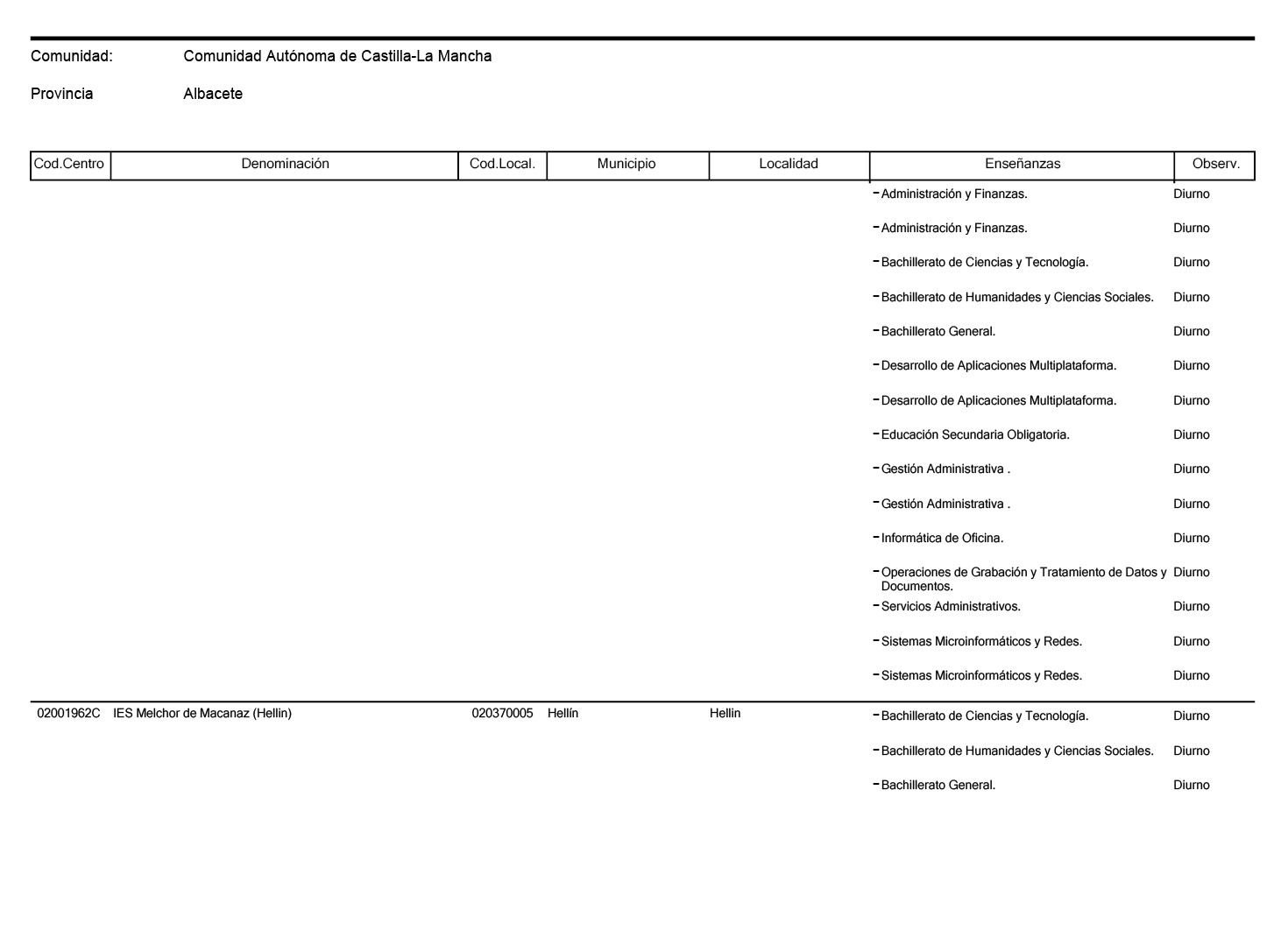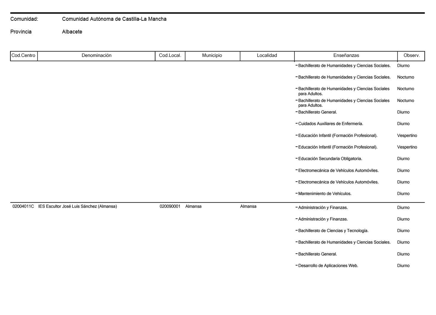 Si se pide más de una plaza-especialidad de un mismo centro o localidad es necesario repetir el centro o localidad tantas veces como puestos solicitados.