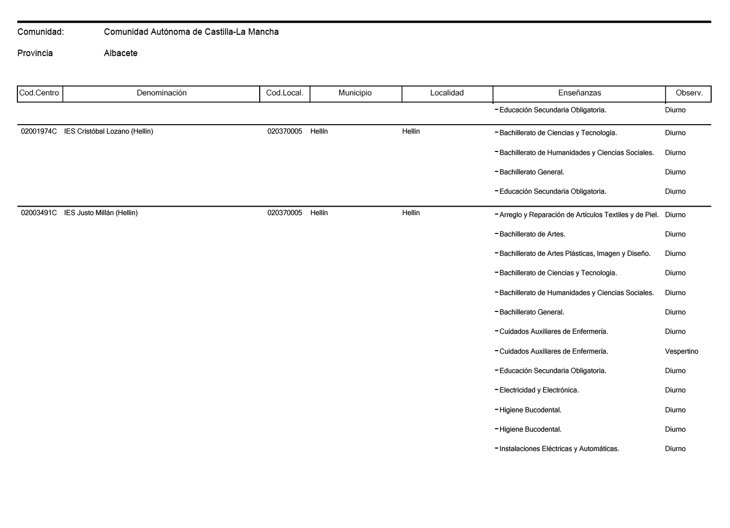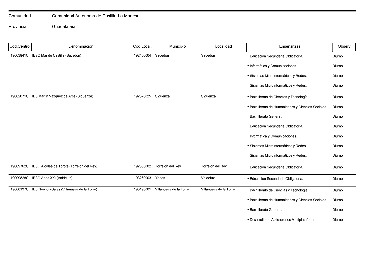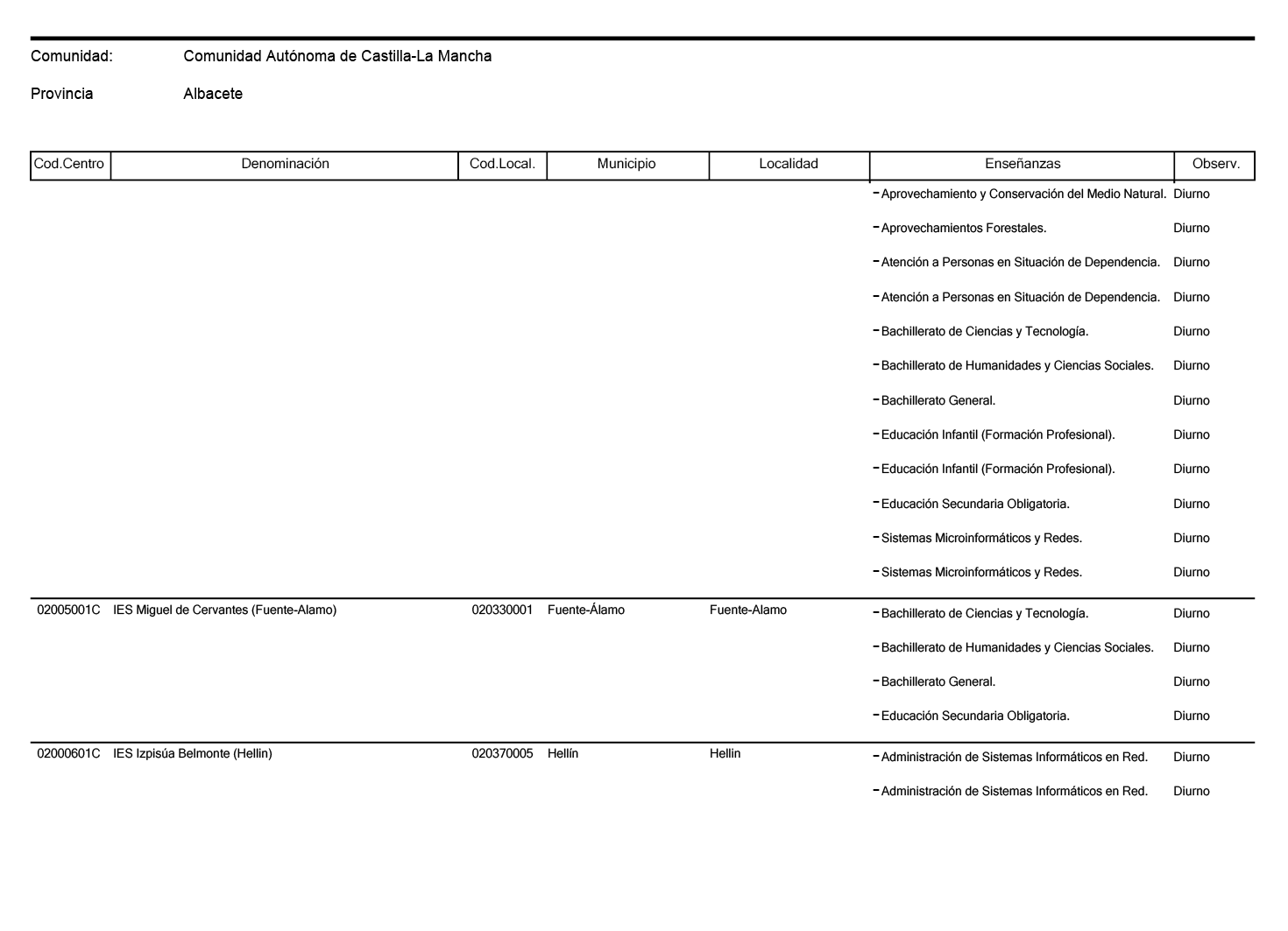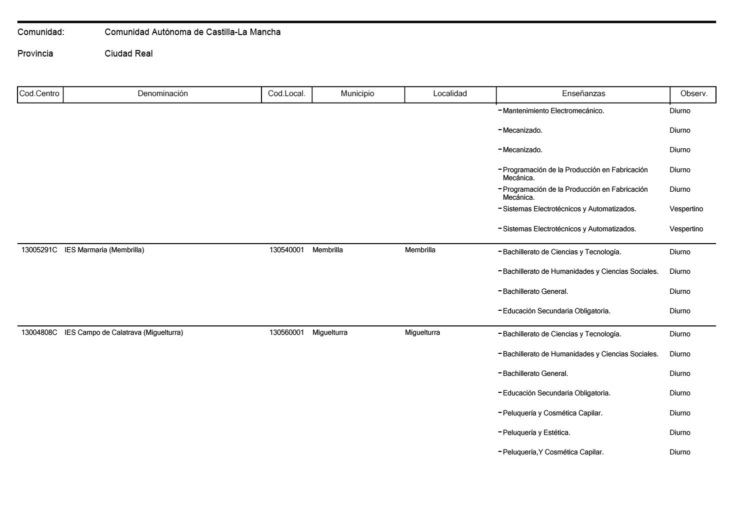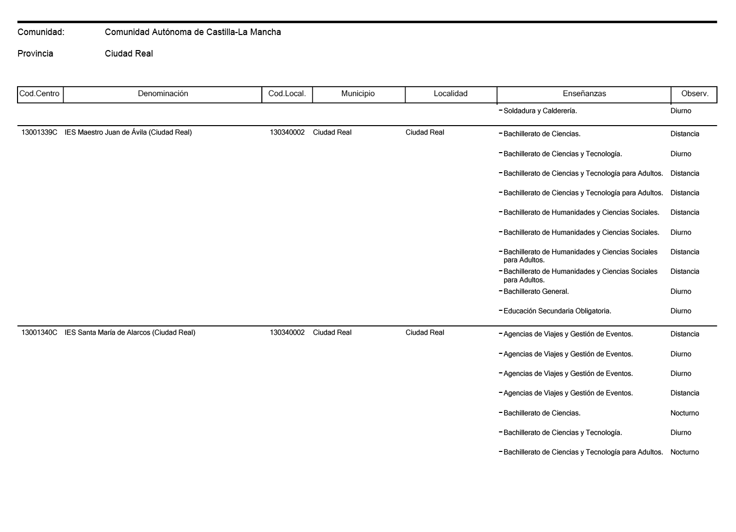 Si se pide más de una plaza-especialidad de un mismo centro o localidad es necesario repetir el centro o localidad tantas veces como puestos solicitados.