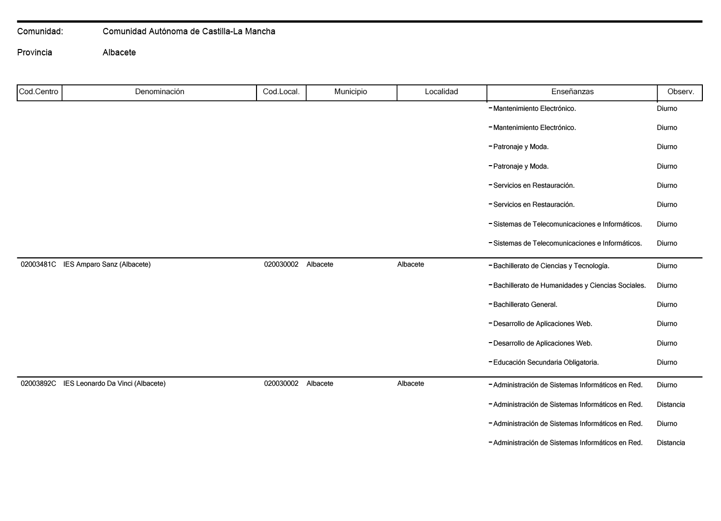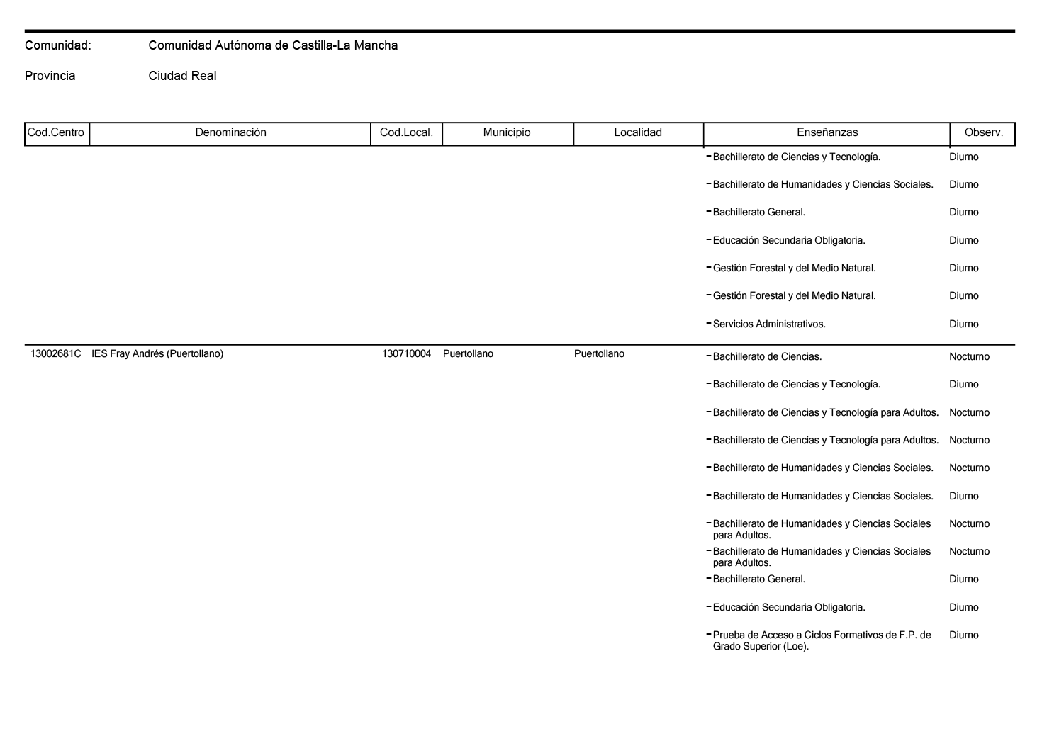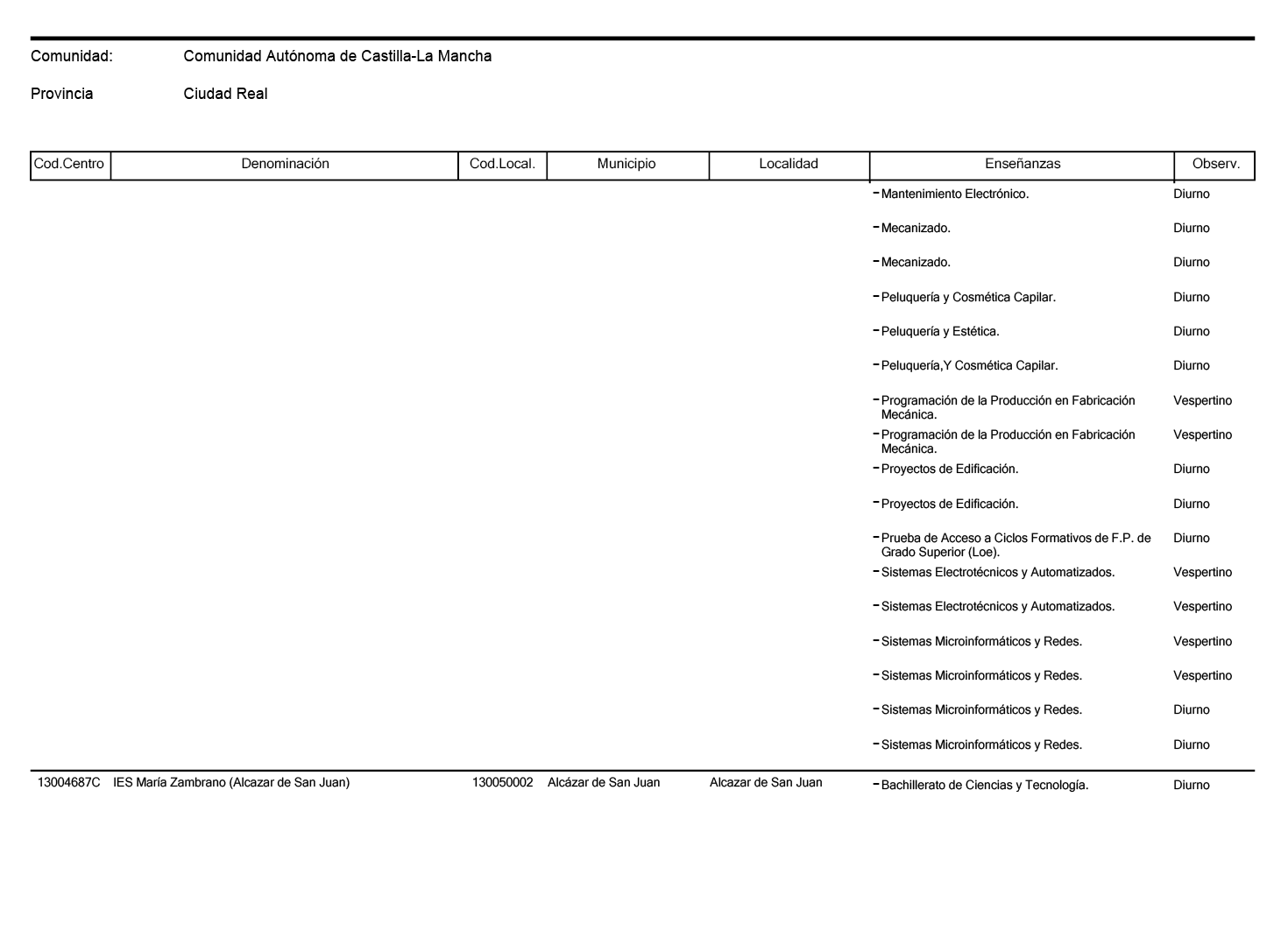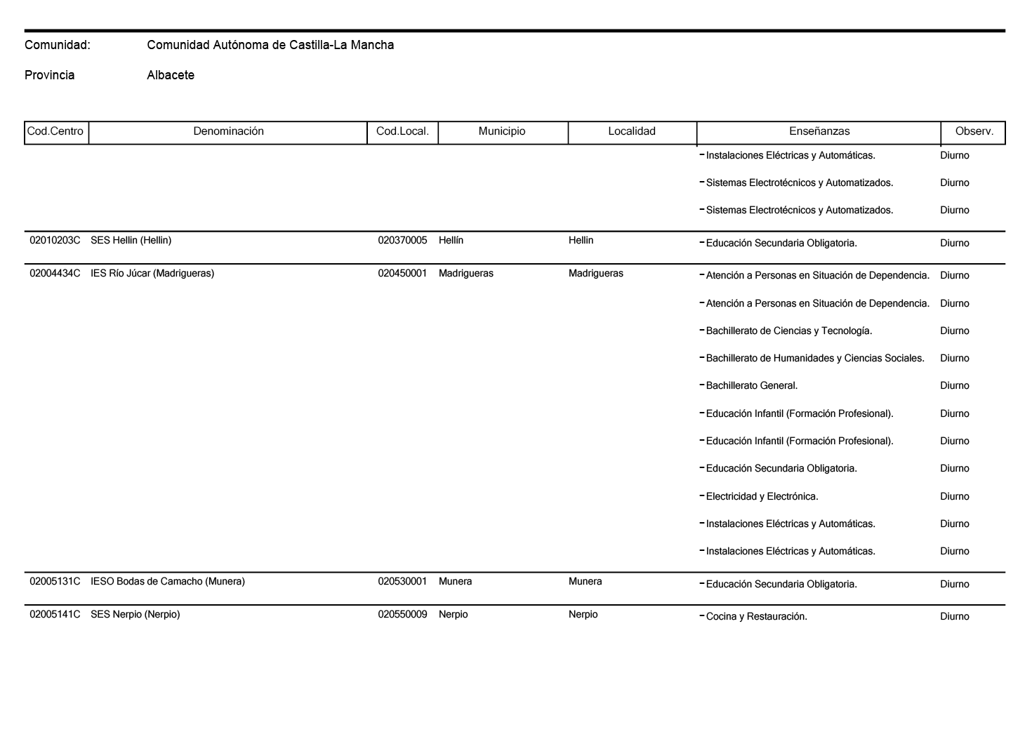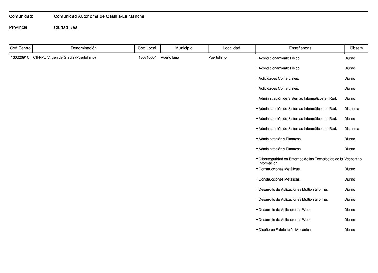 Si se pide más de una plaza-especialidad de un mismo centro o localidad es necesario repetir el centro o localidad tantas veces como puestos solicitados.