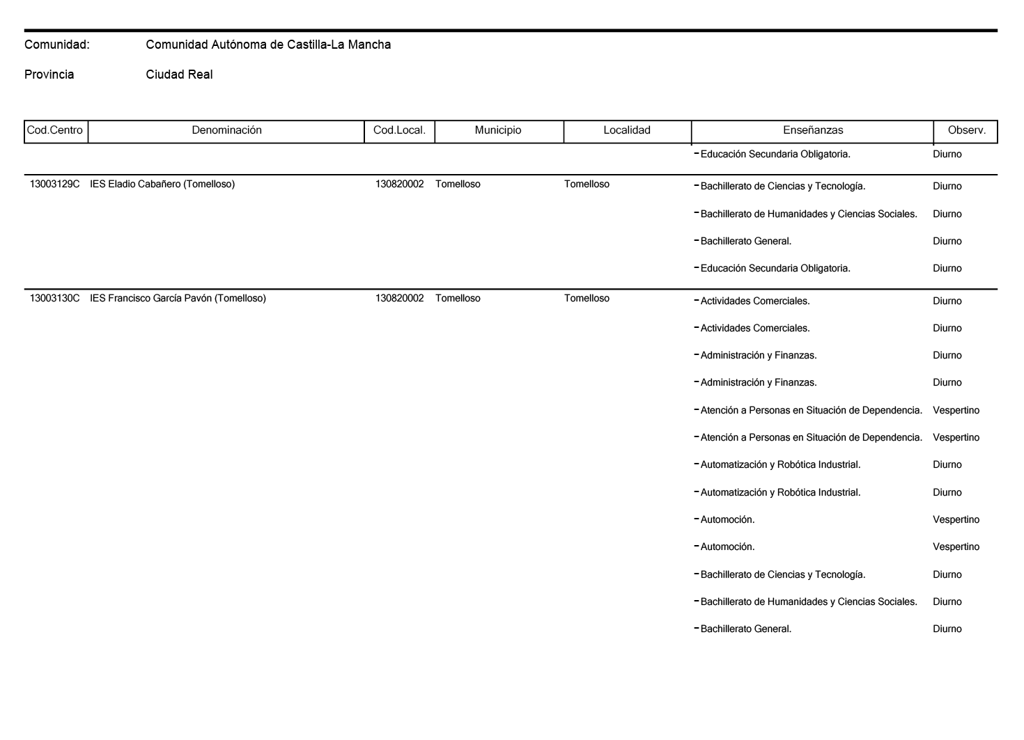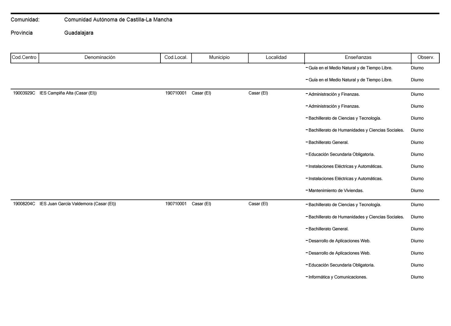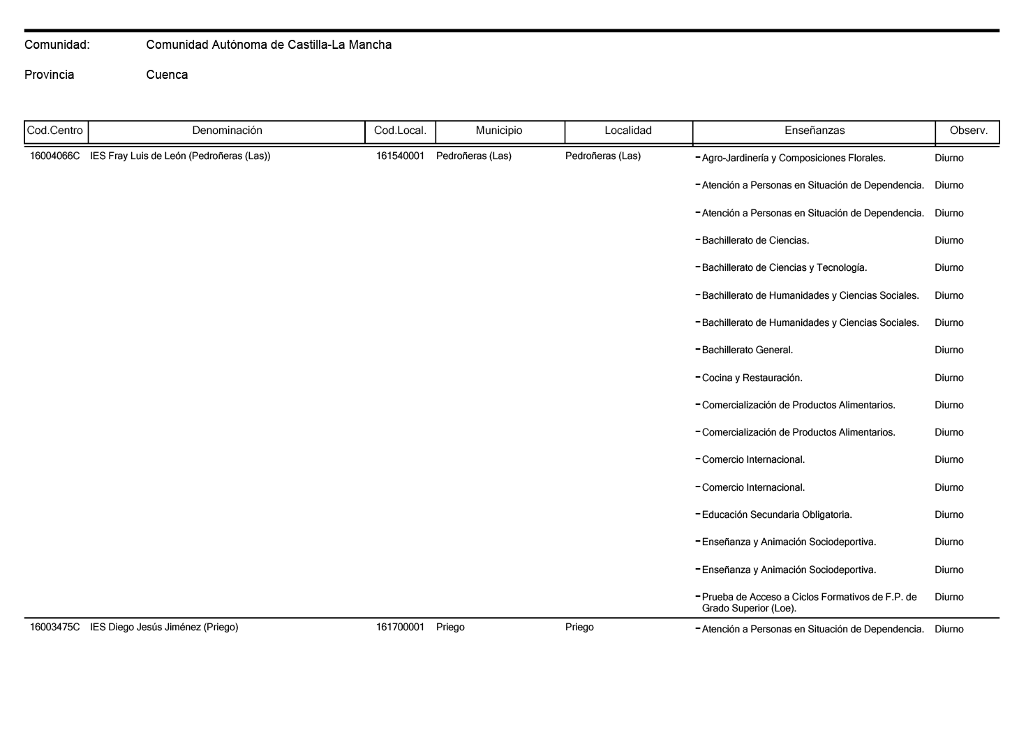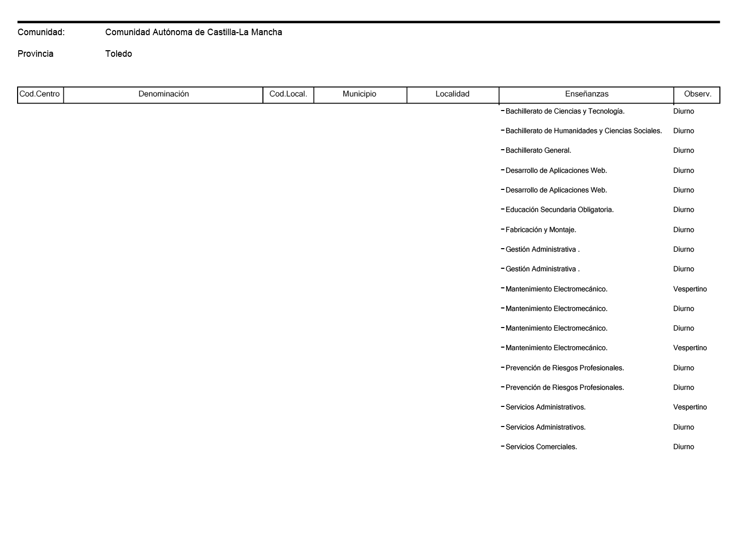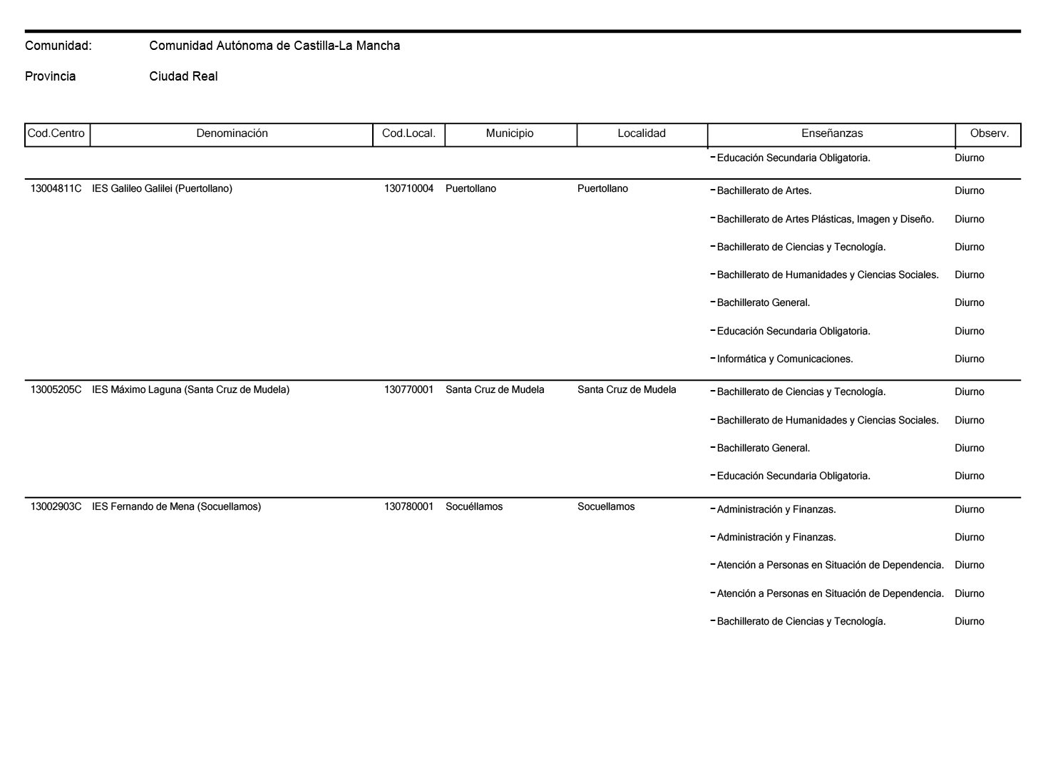 Si se pide más de una plaza-especialidad de un mismo centro o localidad es necesario repetir el centro o localidad tantas veces como puestos solicitados.