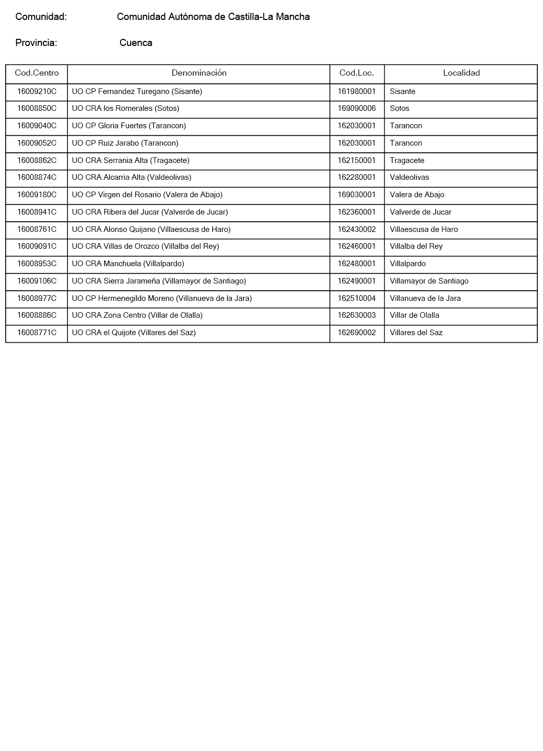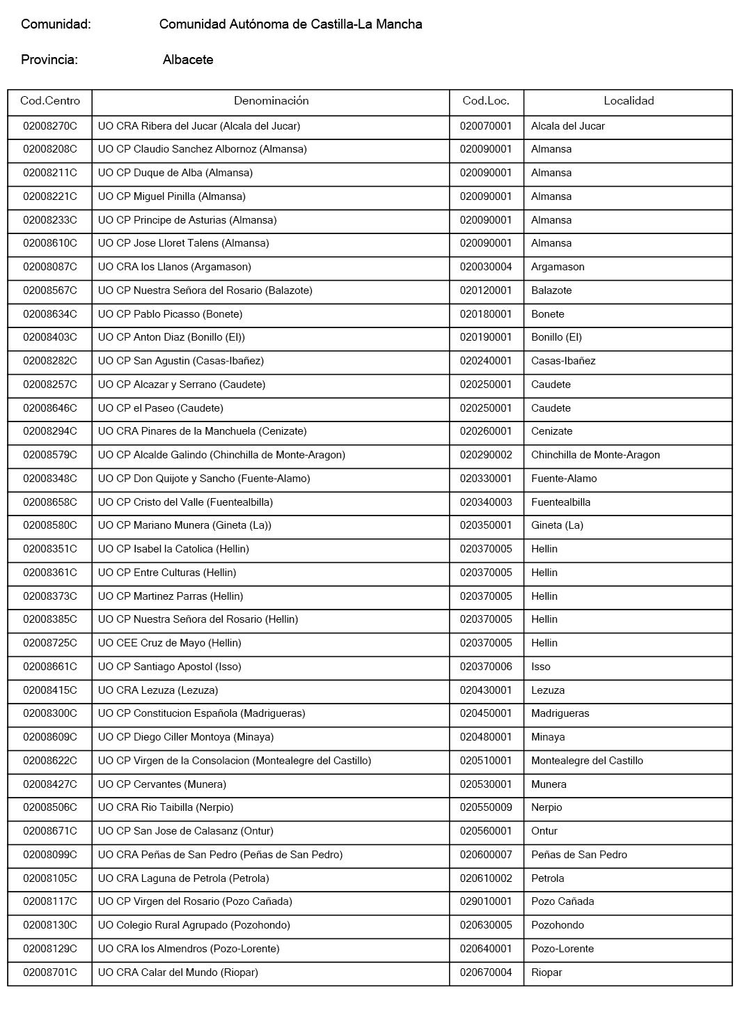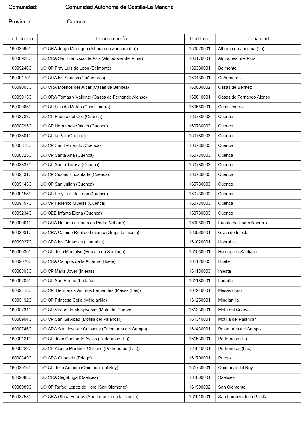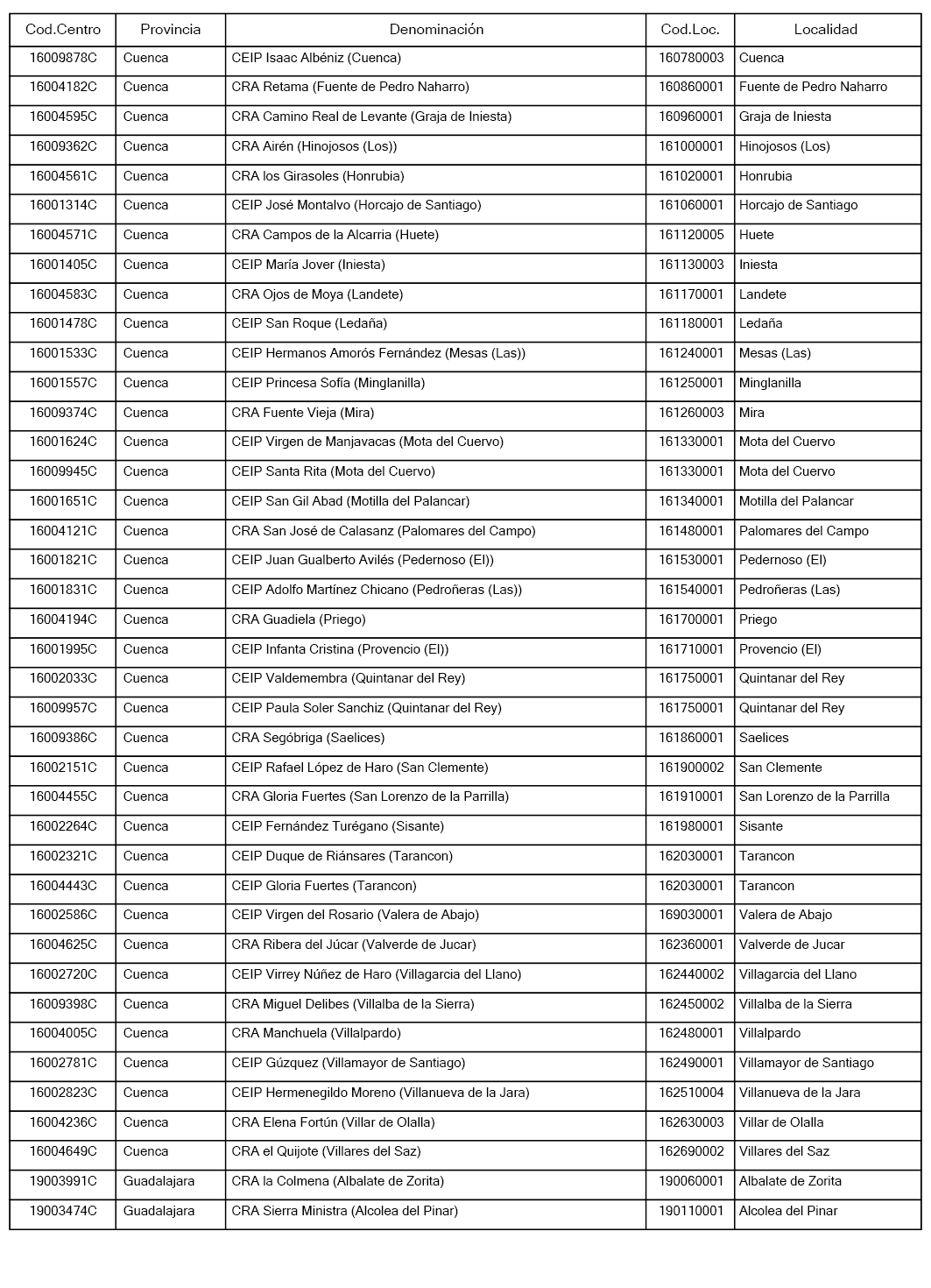 No se incluirán en el presente concurso las posibles vacantes que pudieran originarse en el ámbito de la Consejería de Educación, Cultura y Deportes de la Junta de Comunidades de Castilla-La Mancha, en virtud de las resoluciones de los concursos de traslados que, en sus respectivos ámbitos, pudieran convocar durante el curso 2025/2026 tanto el Ministerio con competencias en materia de educación, como las demás administraciones educativas de las comunidades autónomas distintas de la de Castilla-La Mancha.