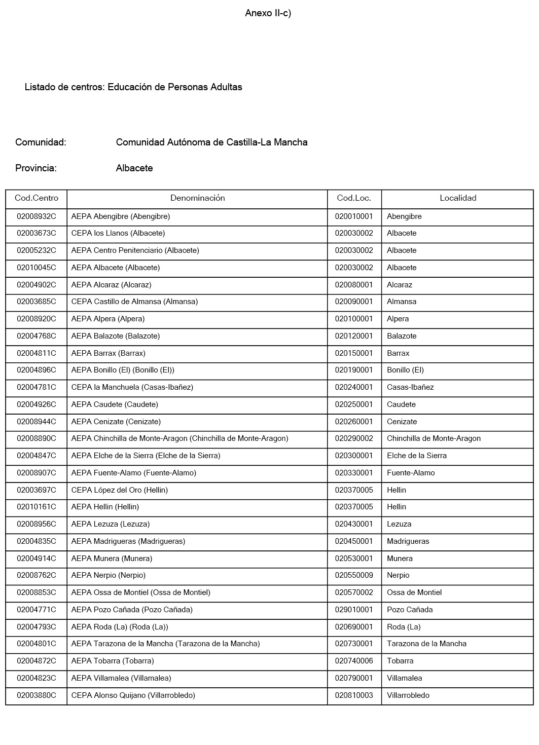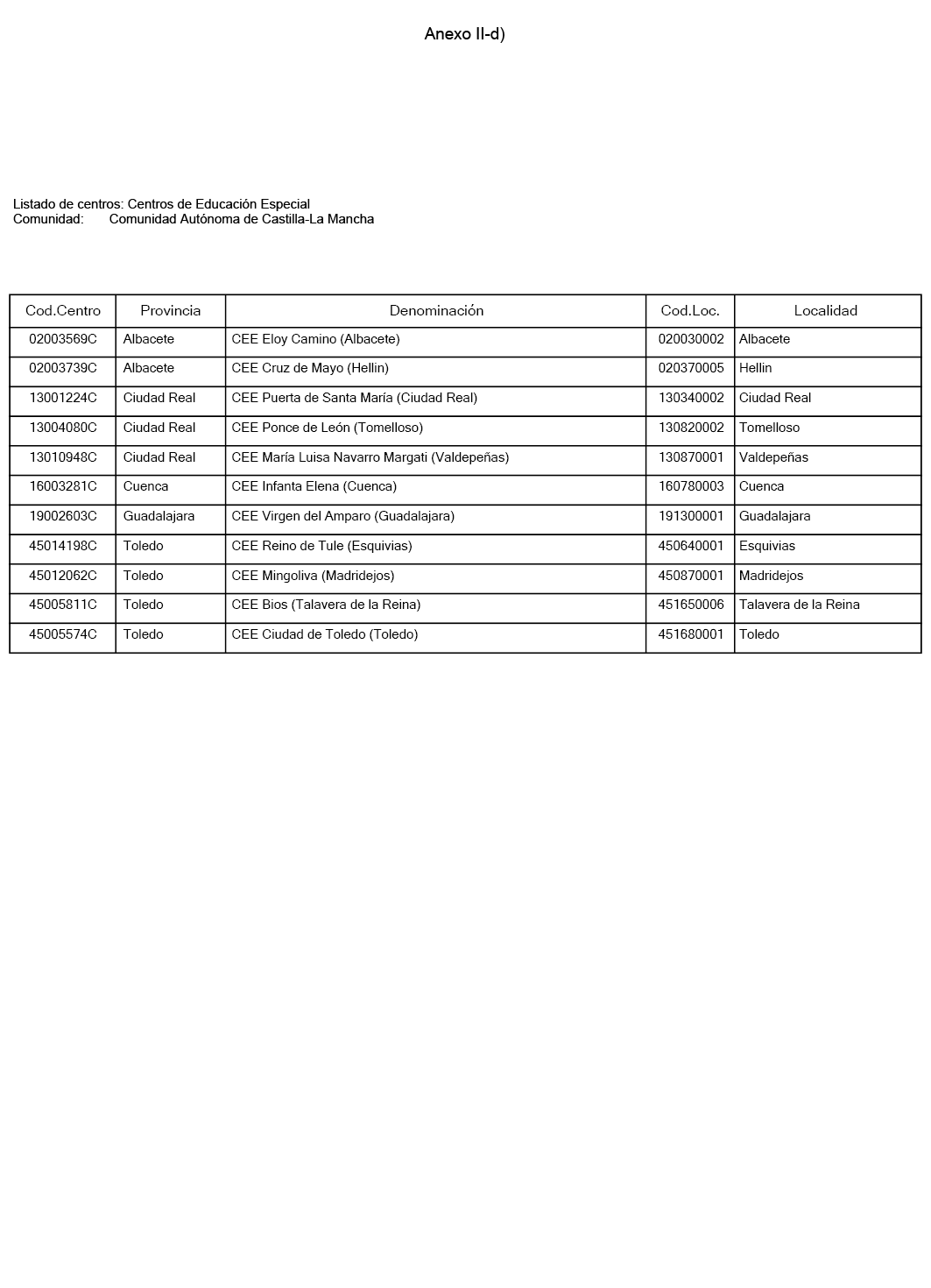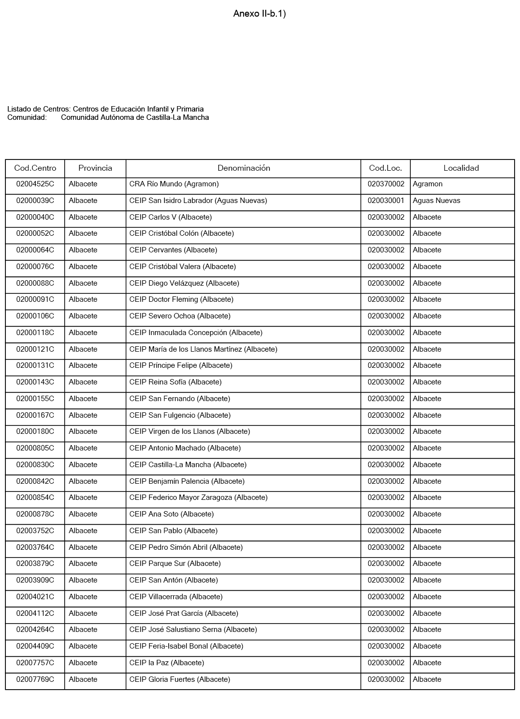 A fin de simplificar y facilitar a los participantes la realización de sus peticiones, aquellos concursantes que deseen solicitar todos los centros correspondientes a una localidad podrán, en lugar de realizar la petición consignando los códigos de todos y cada uno de los centros por orden de preferencia, anotar únicamente los códigos correspondientes a la localidad y tipo de plaza, entendiéndose, en este caso, que solicitan todos los centros de la localidad de que se trate en el mismo orden de preferencia con el que aparecen publicados en el anexo correspondiente de la convocatoria y siempre referidos a los centros que aparecen en ese anexo, con excepción de los centros relacionados en los anexos II b), II b.1), II c) y II d) que deberán ser en todo caso, consignados de forma individual y por orden de preferencia.