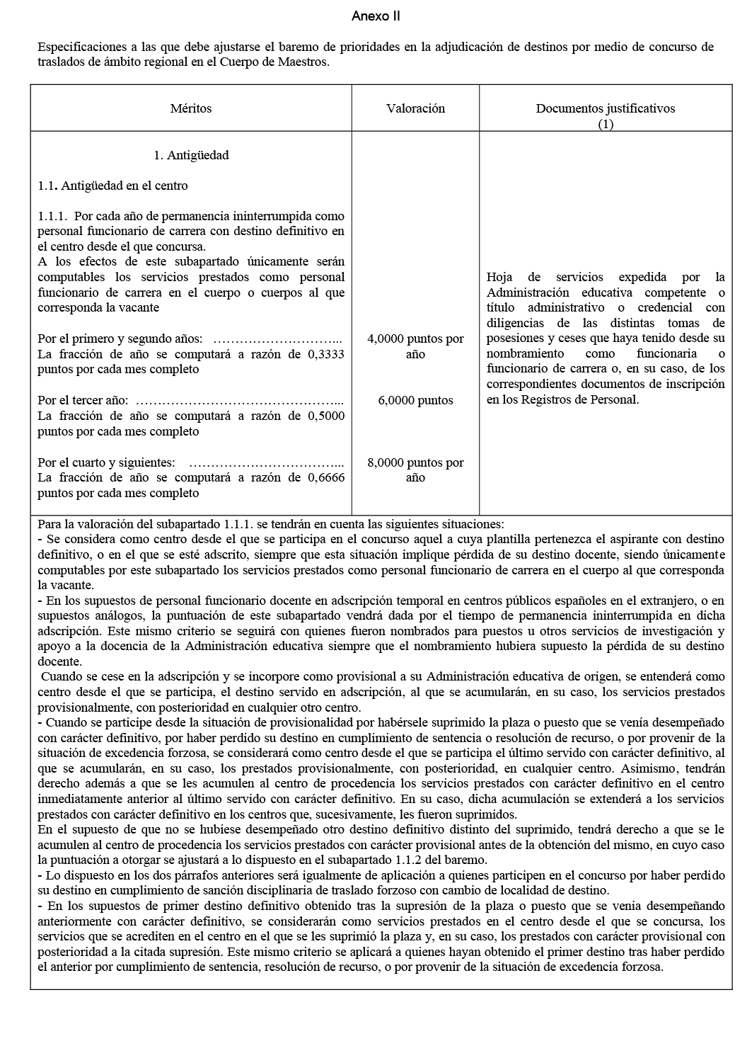 Idéntica previsión se contiene en el artículo 2.2 del Real Decreto 1364/2010, de 29 de octubre (BOE nº 263, de 30 de octubre), por el que se regula el concurso de traslados entre personal funcionario de los Cuerpos docentes contemplados en la LOE y otros procedimientos de provisión de plazas a cubrir por dicho personal.