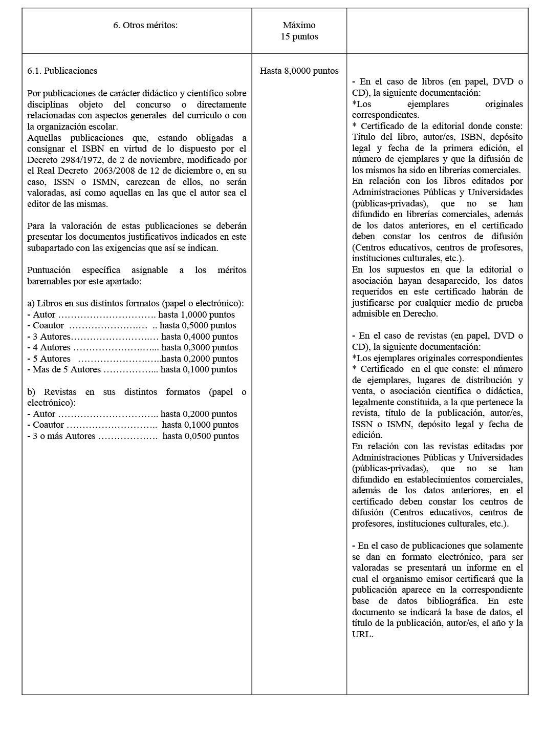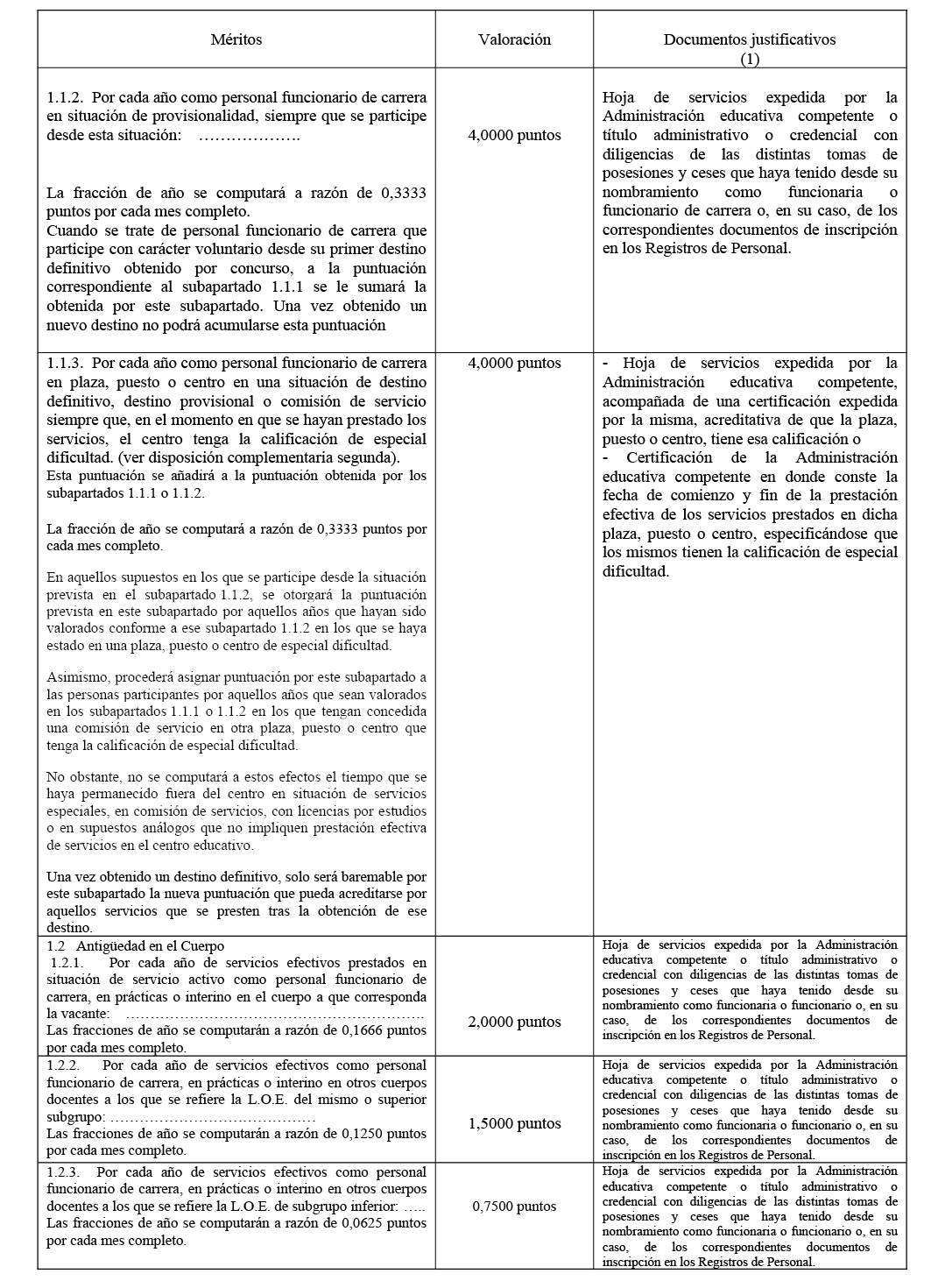 La prioridad en la adjudicación vendrá dada por la puntuación definitiva obtenida como suma de los apartados 1, 5.1 y 5.2 del baremo de méritos del concurso general de traslados que se convoca mediante la presente Resolución, por lo que los participantes que lo sean solo en este procedimiento (concursillo) no deberán presentar documentación relativa a méritos. Sí deberán presentar la documentación referida a aquellos méritos incluidos en estos apartados (y cuya valoración se pretenda) que no figuren en su hoja de servicios o en el extracto de formación.