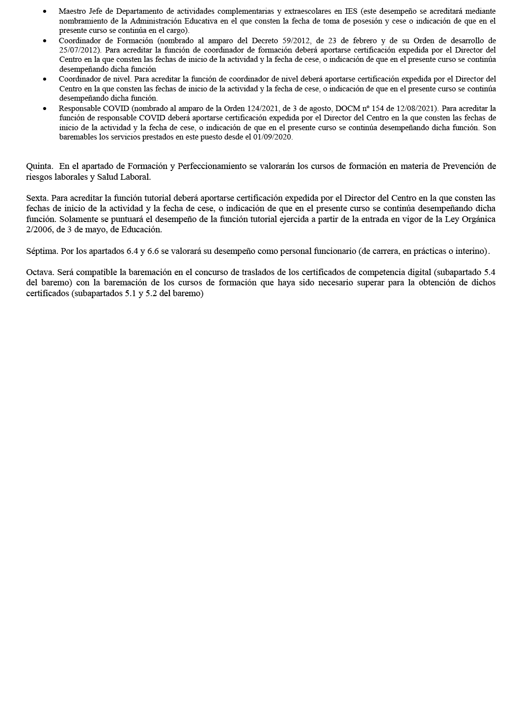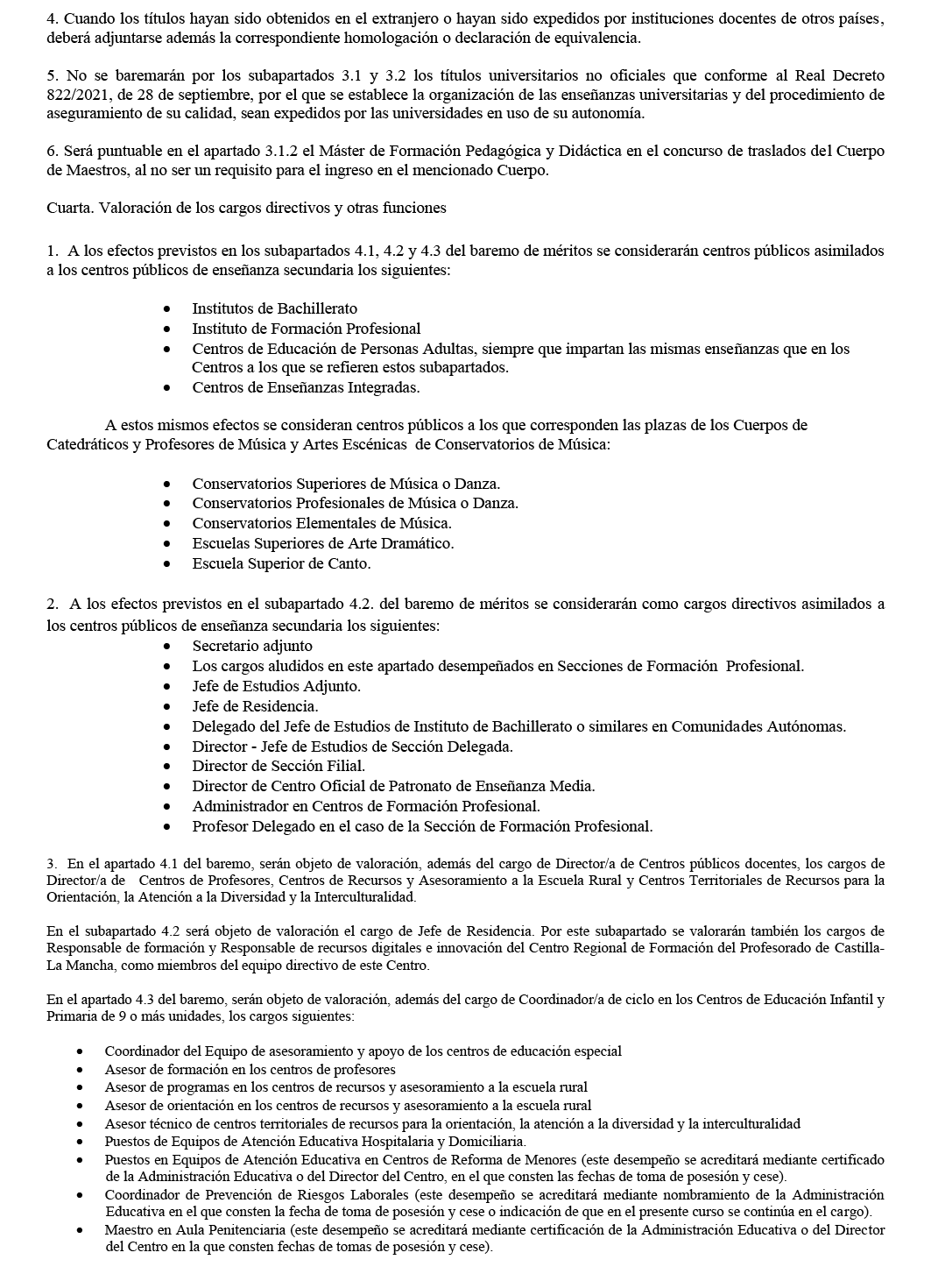 2) En aquellos casos en que no estén conformes con la puntuación adjudicada en los apartados 3, 4, 5 o 6 en el anterior concurso, deberán presentar la documentación de todos los apartados respecto de los cuales deseen ser baremados nuevamente, en los términos y condiciones señalados en esta base 25, marcando en la solicitud la opción “opta por ser baremado nuevamente en este apartado”.