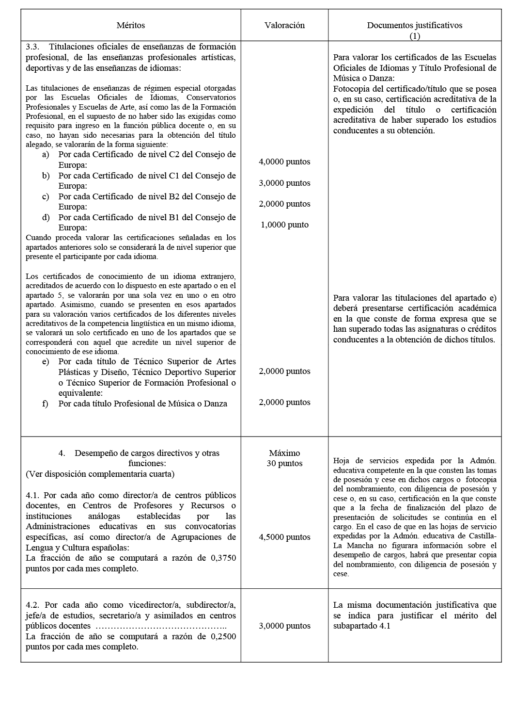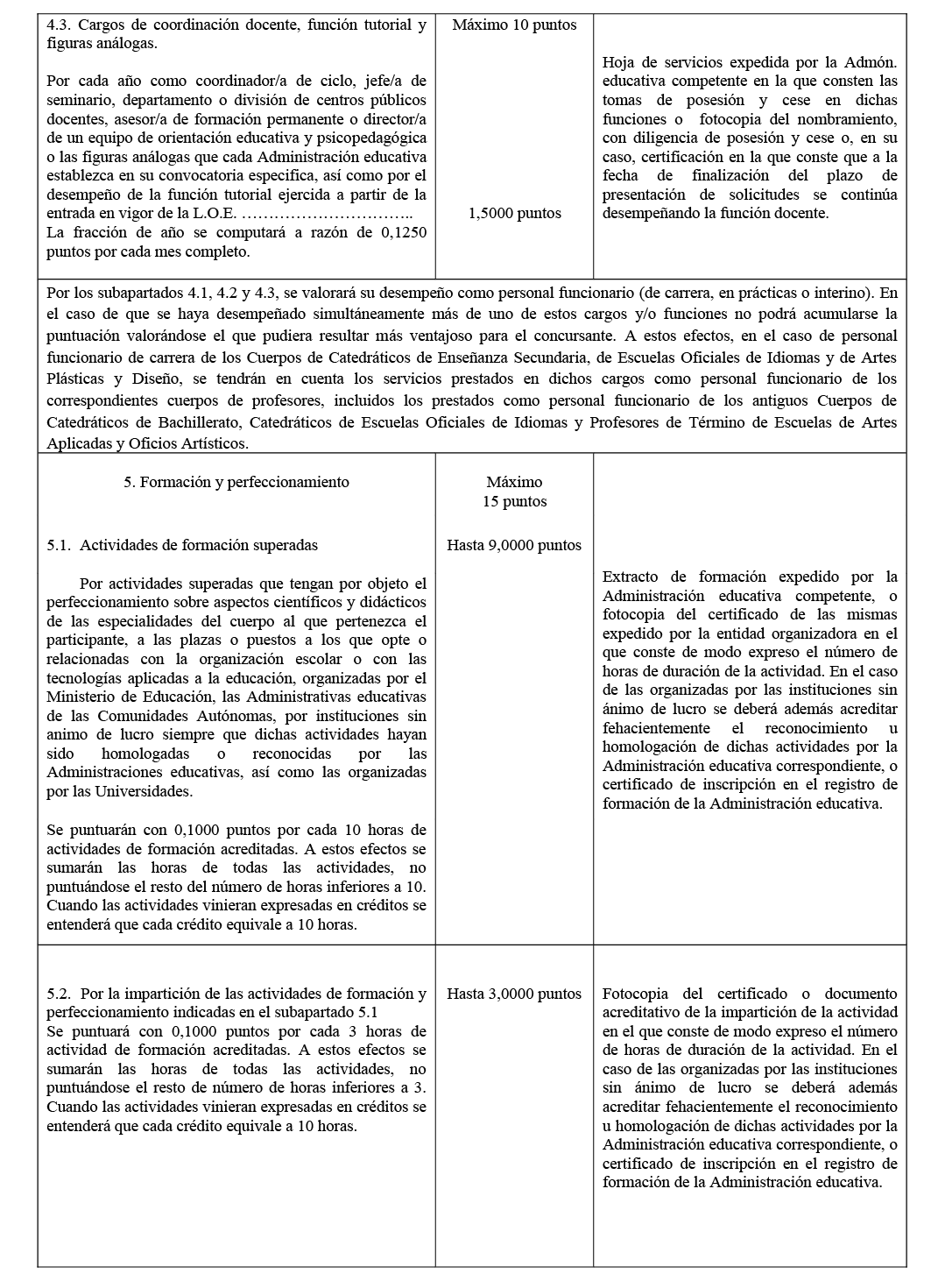 Opción sobre puntuación, apartados 3, 4, 5 y 6 del baremo de méritos: