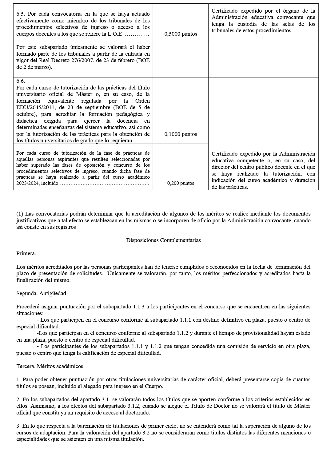1) Aquellos maestros y maestras que participaron en la convocatoria para la provisión de puestos de trabajo efectuada por Resolución de la Consejería de Educación, Cultura y Deportes de 24/10/2024, podrán optar por que se valoren los méritos de los apartados 3, 4, 5 y 6 del baremo de acuerdo con la documentación presentada en la anterior convocatoria marcando en la instancia, para cada uno de los apartados mencionados, la opción “opta por que se valoren los méritos alegados en este apartado en el concurso de traslados 2024-2025”, no debiendo aportar la documentación de dichos apartados.