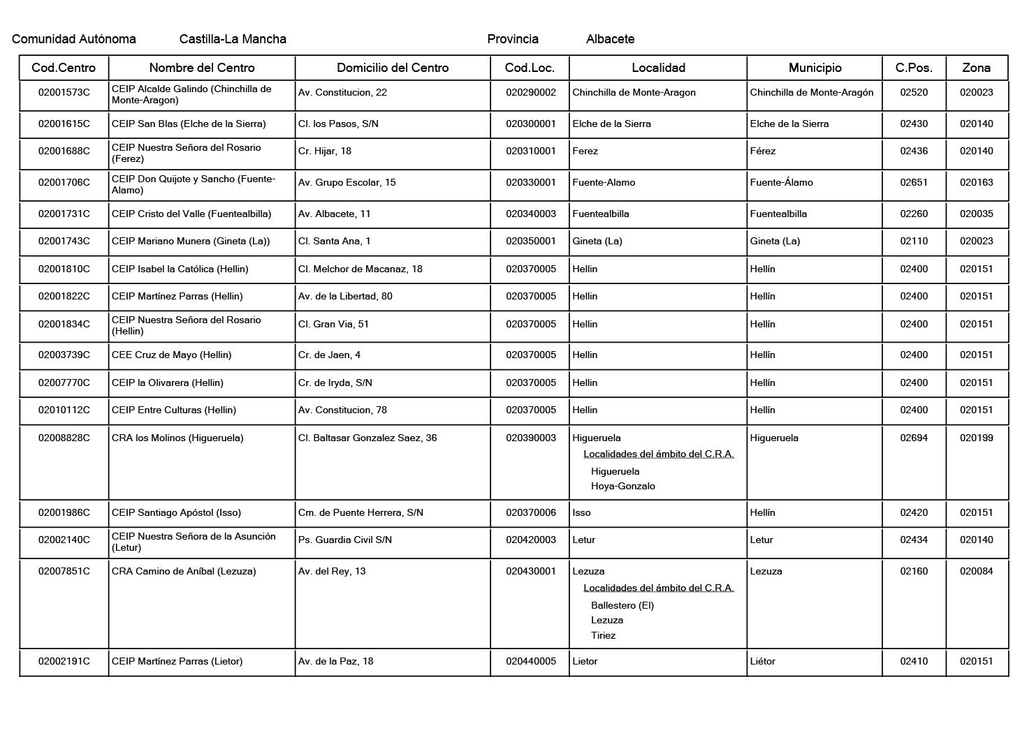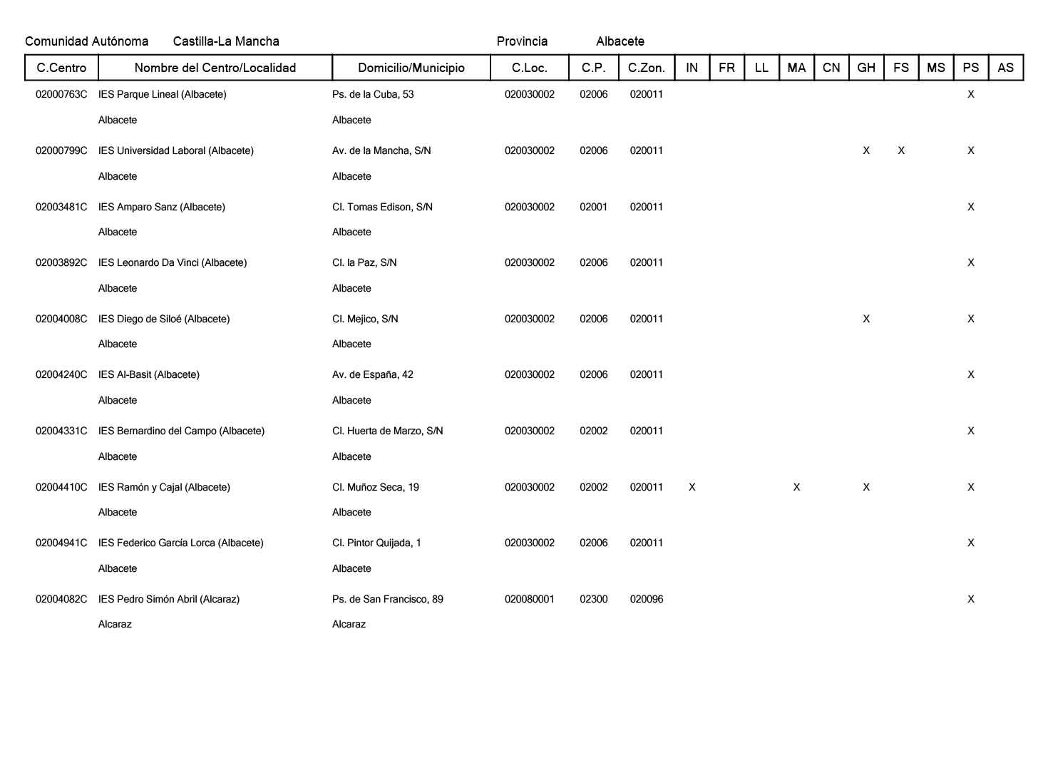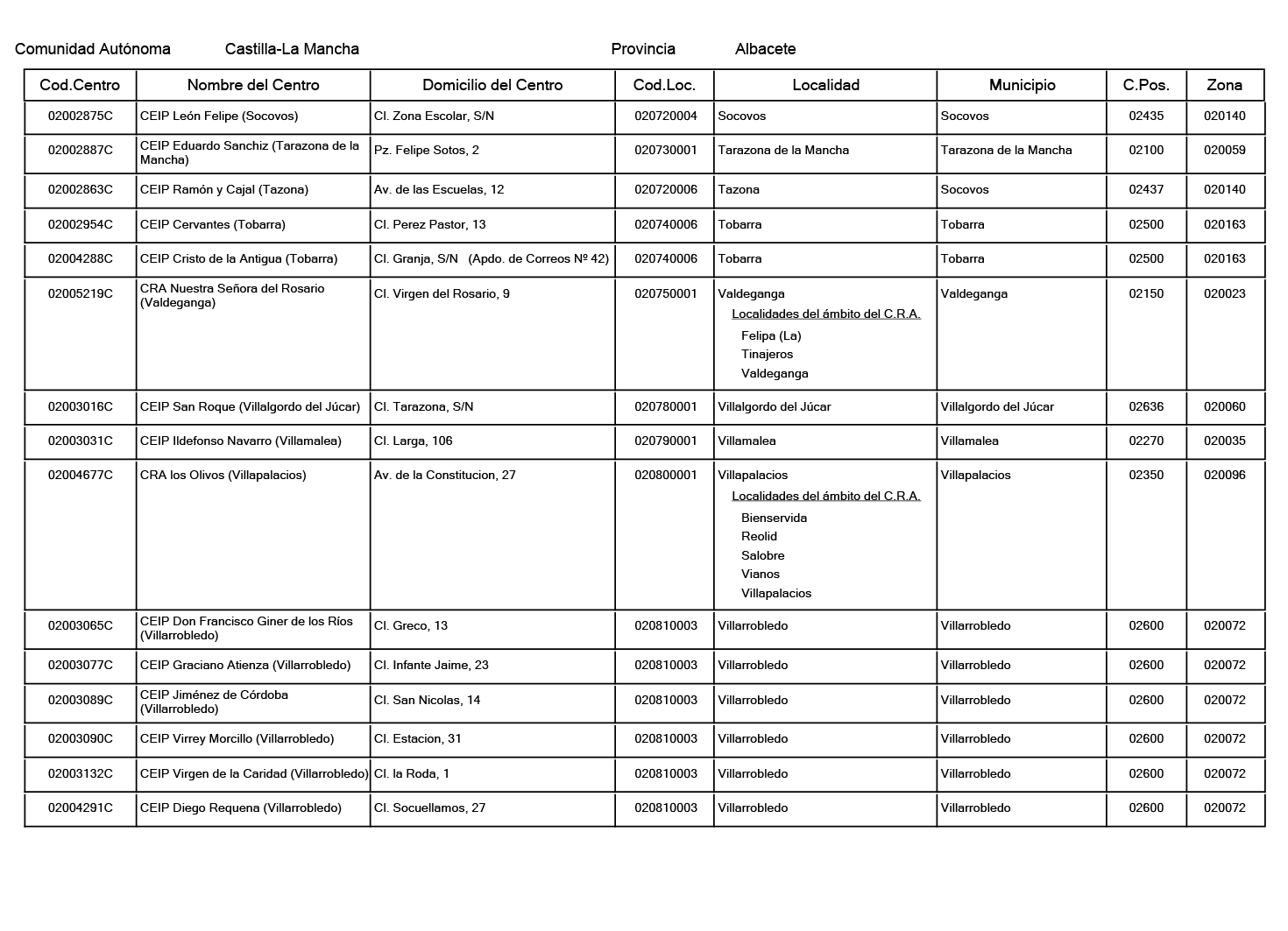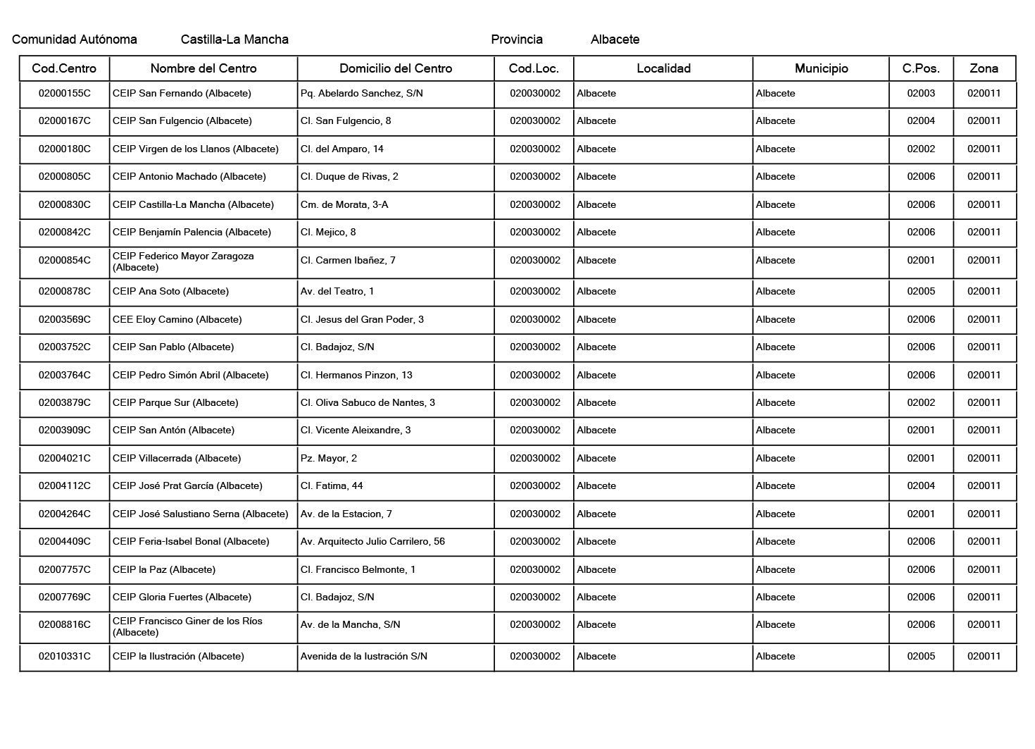 - Albacete: Avda. de la Estación, 2 - 02071 - Albacete.