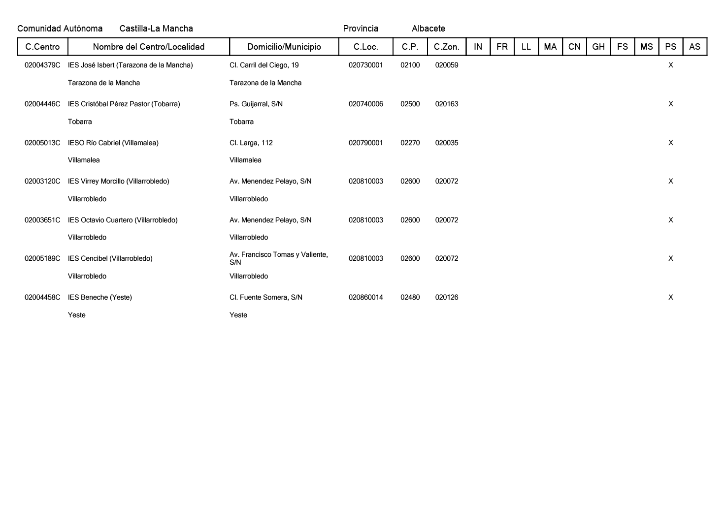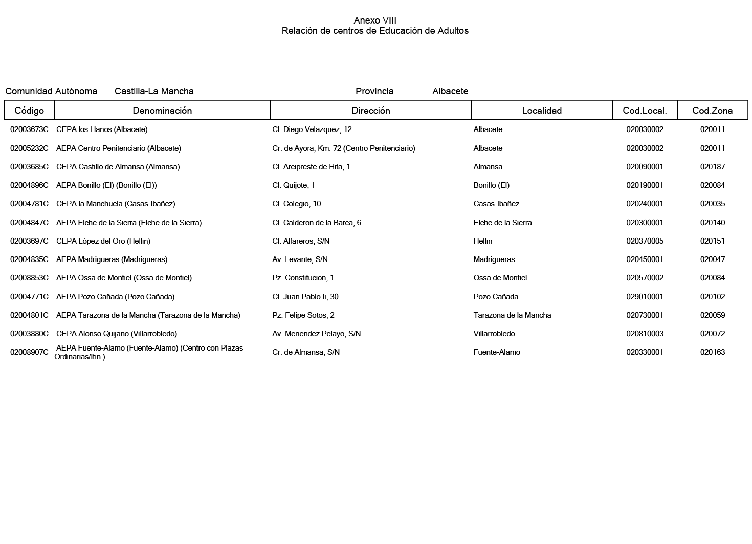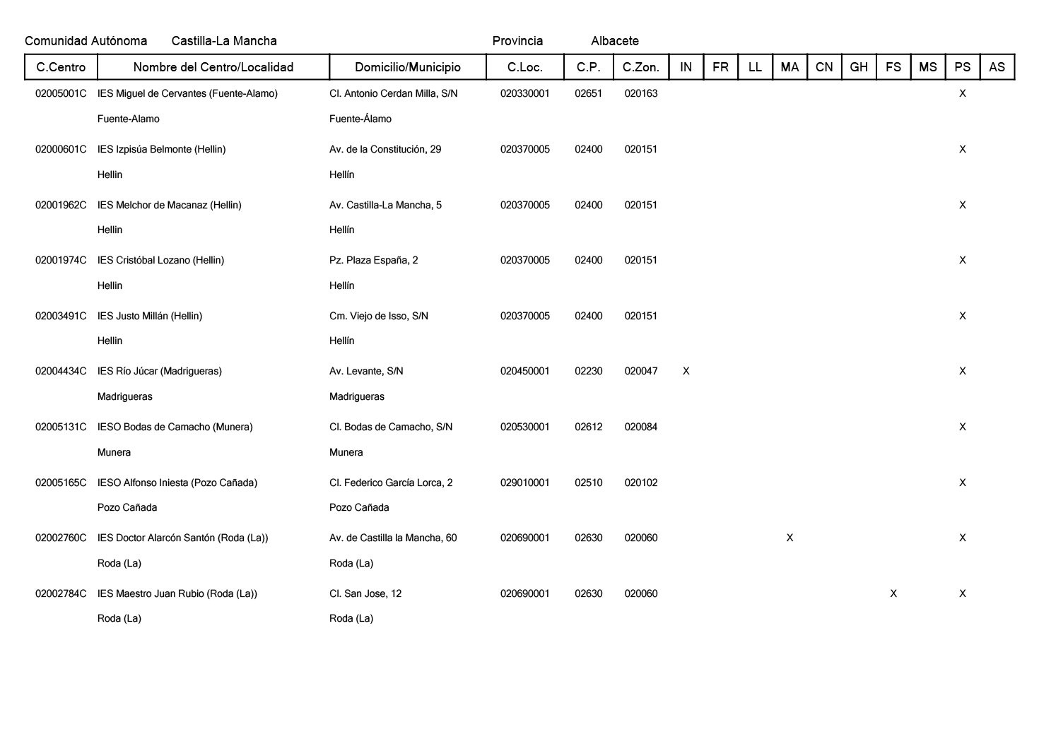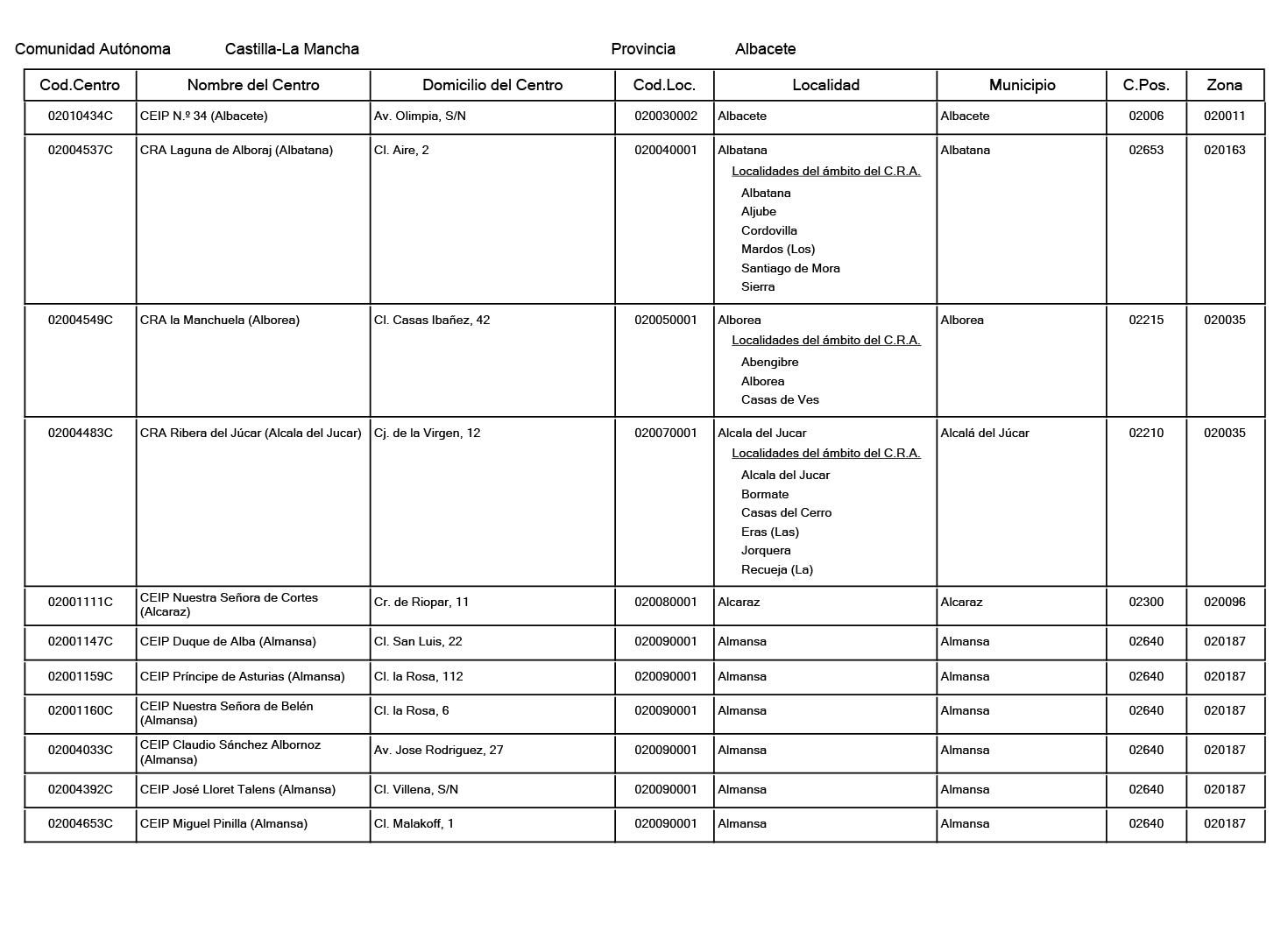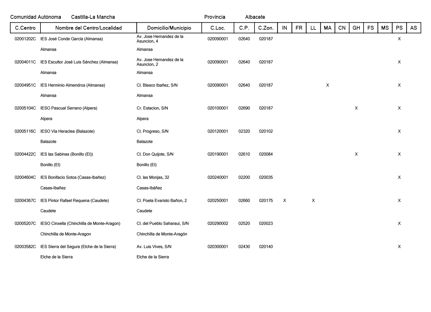 - Albacete: Avda. de la Estación, 2 - 02071 - Albacete.