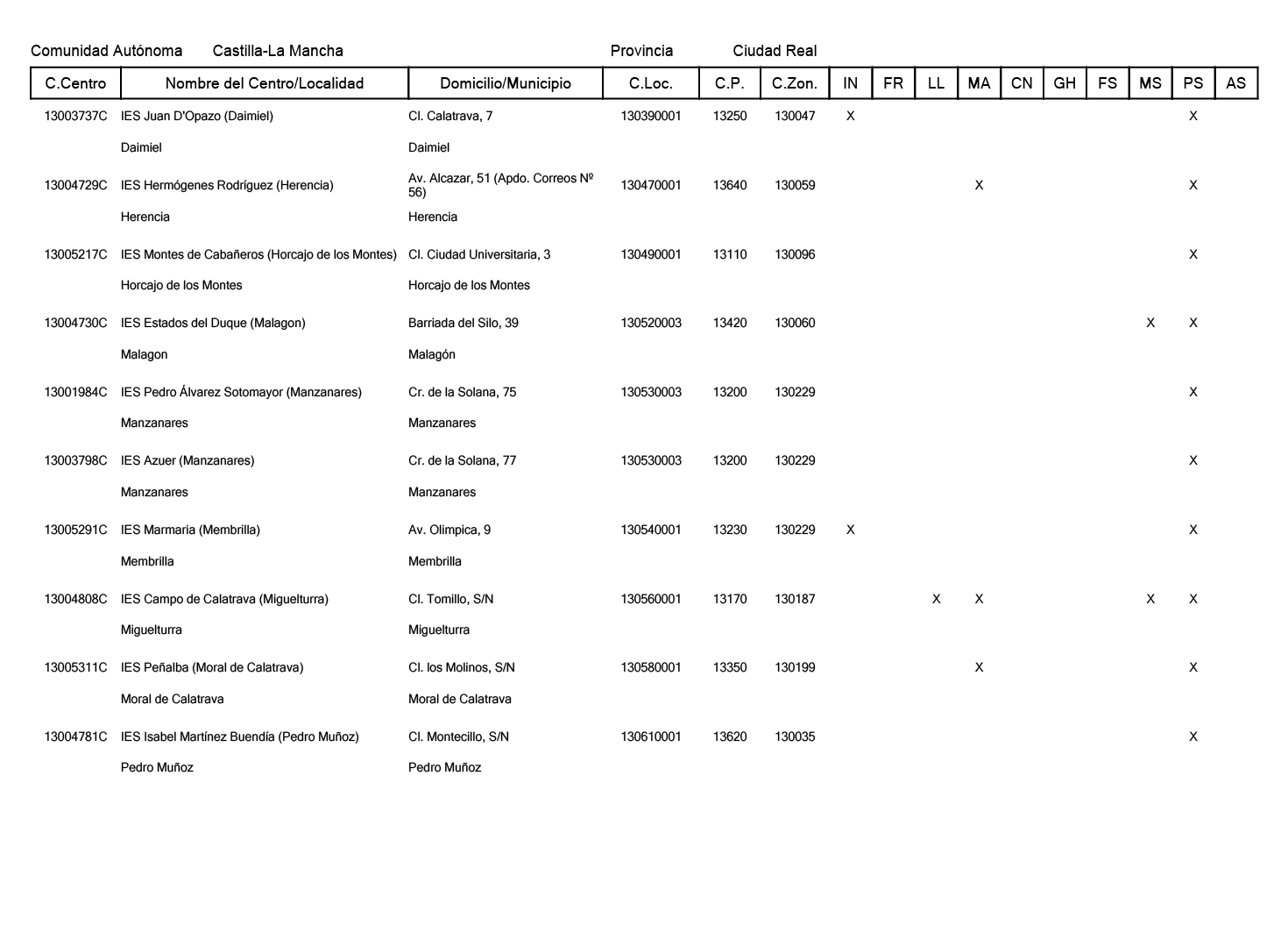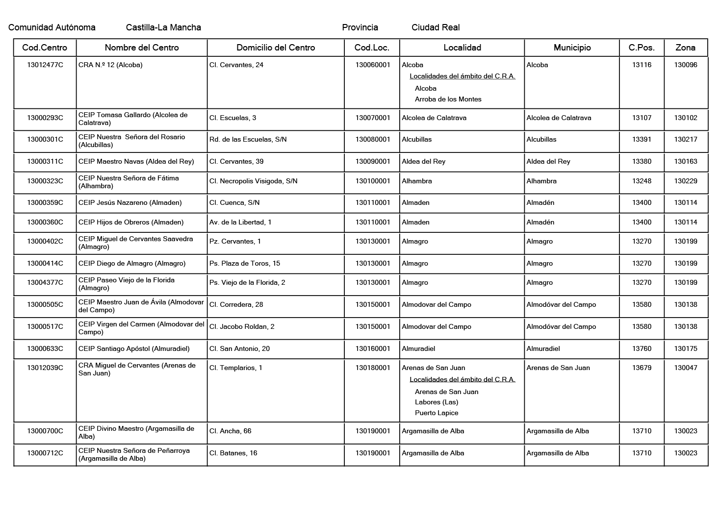 - Ciudad Real: Avda. Alarcos, 21 - 13071 - Ciudad Real.