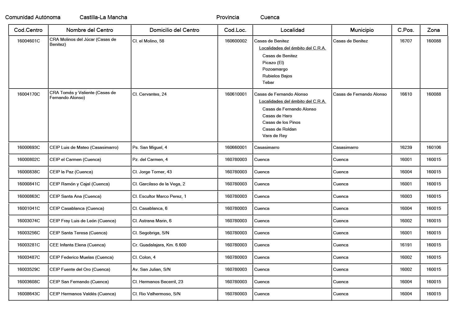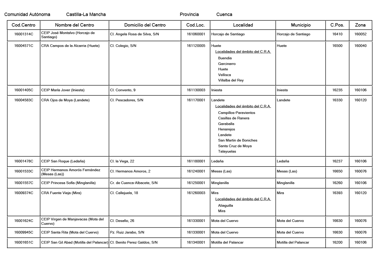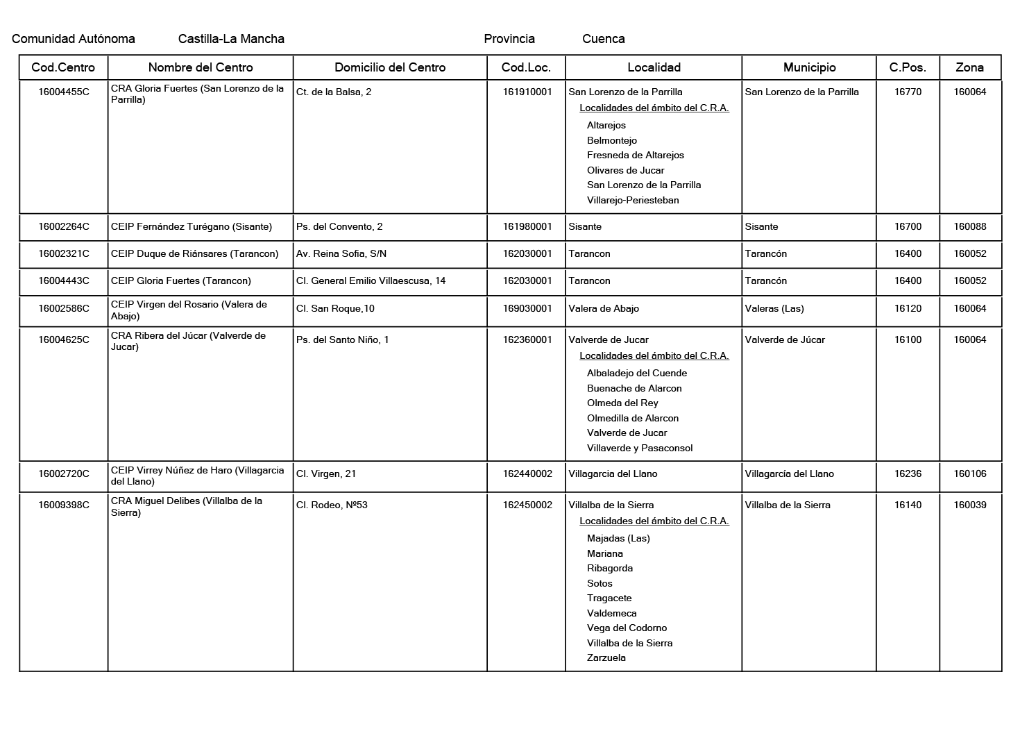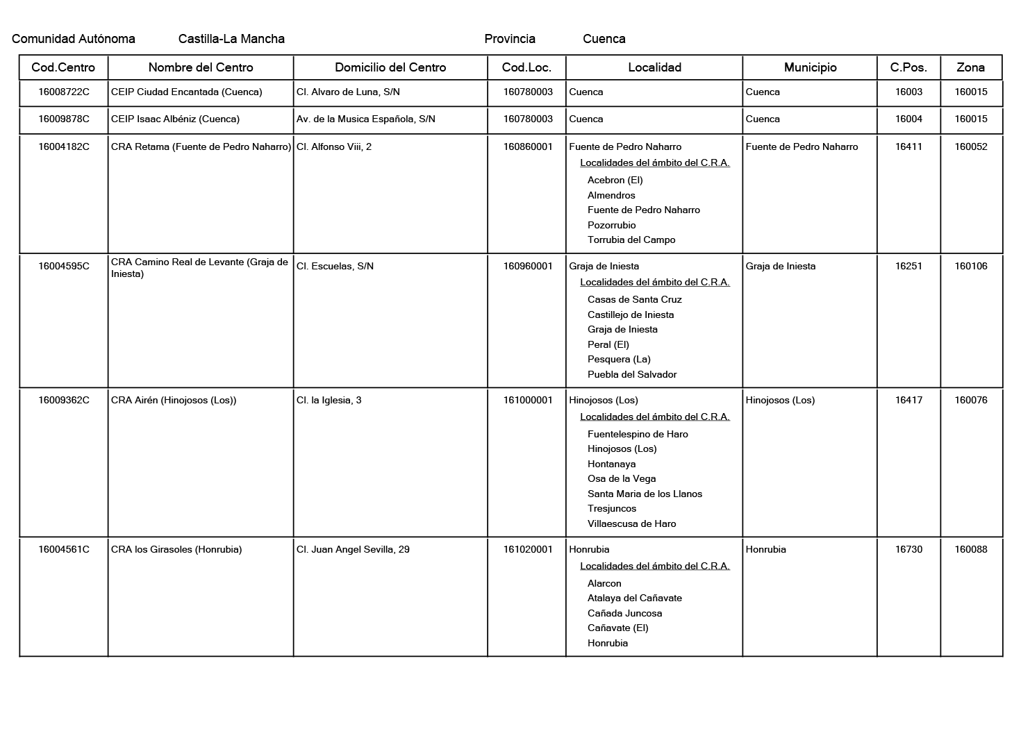 - Cuenca: Glorieta González Palencia, s/n - 16071 - Cuenca.
